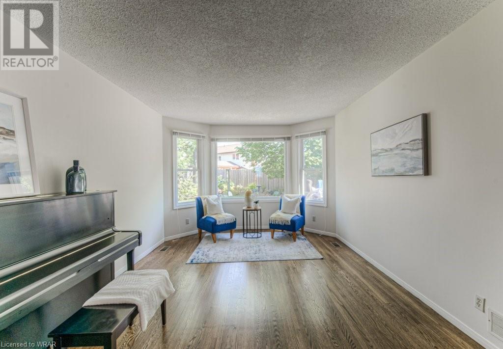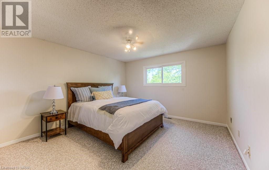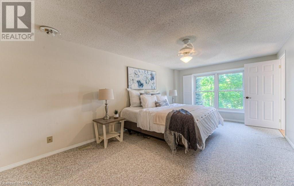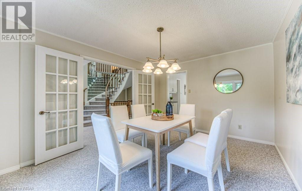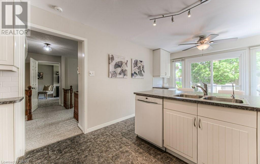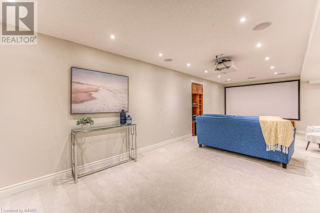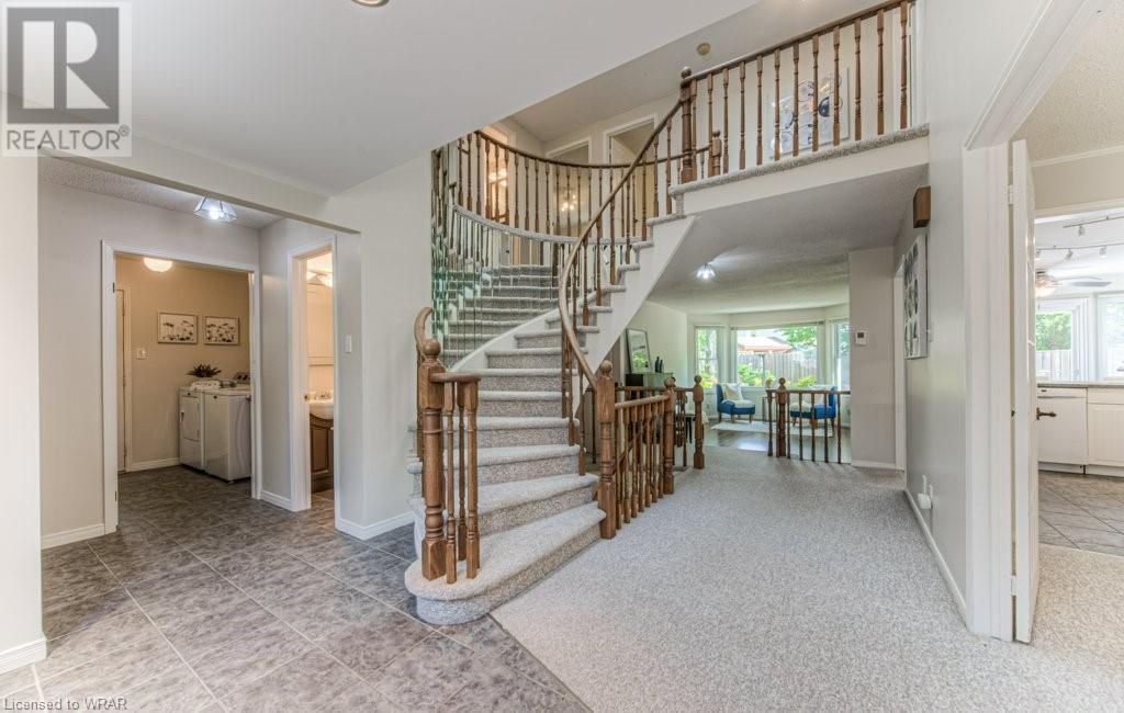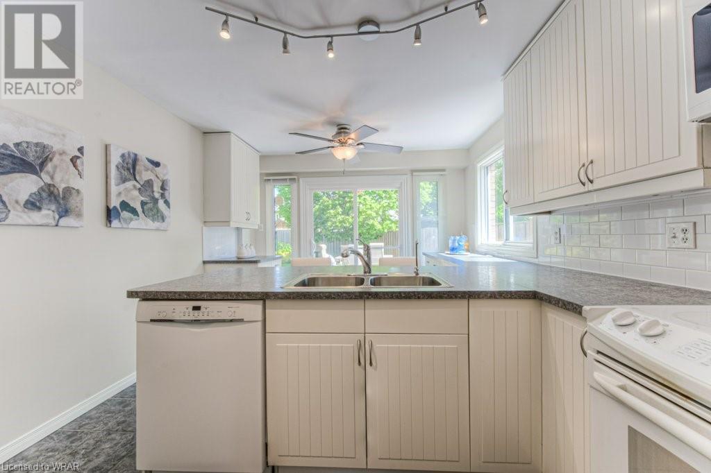 Westvale Family Home! This 2,484 square foot 4 bedroom home sits on a quiet crescent in a family friendly Waterloo neighbourhood. Incredible natural light abounds as you walk in to the main foyer with a circular staircase and tile entrance. The main floor layouts boasts a family room with gas fireplace, formal dining room, sunken living/great room with hardwood floors, main floor laundry, and a spacious eat in kitchen with tile floor, breakfast bar and sliders out to your composite deck and fenced backyard. Plenty of room upstairs with a large primary bedroom and renovated ensuite bath with Italian porcelain tile, rain shower head and more! Downstairs you'll find the newly updated rec room with an incredible home theatre set up including 4K projector and static screen. Have a drink or sit and visit with friends at your home bar! Plenty of storage in the basement. Other features include a gas line to BBQ, backyard storage shed, parking for 4 cars in the driveway (plus 2 in the garage), and updated garage doors. (id:22211)