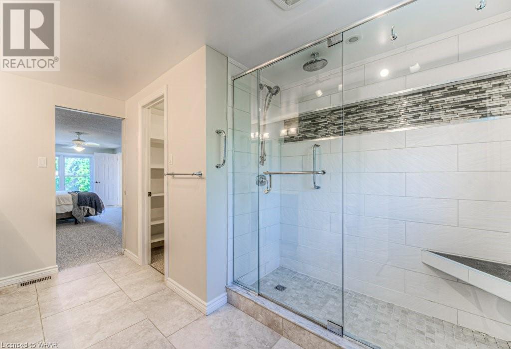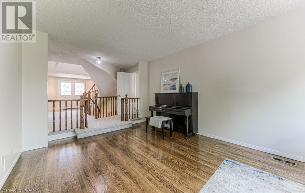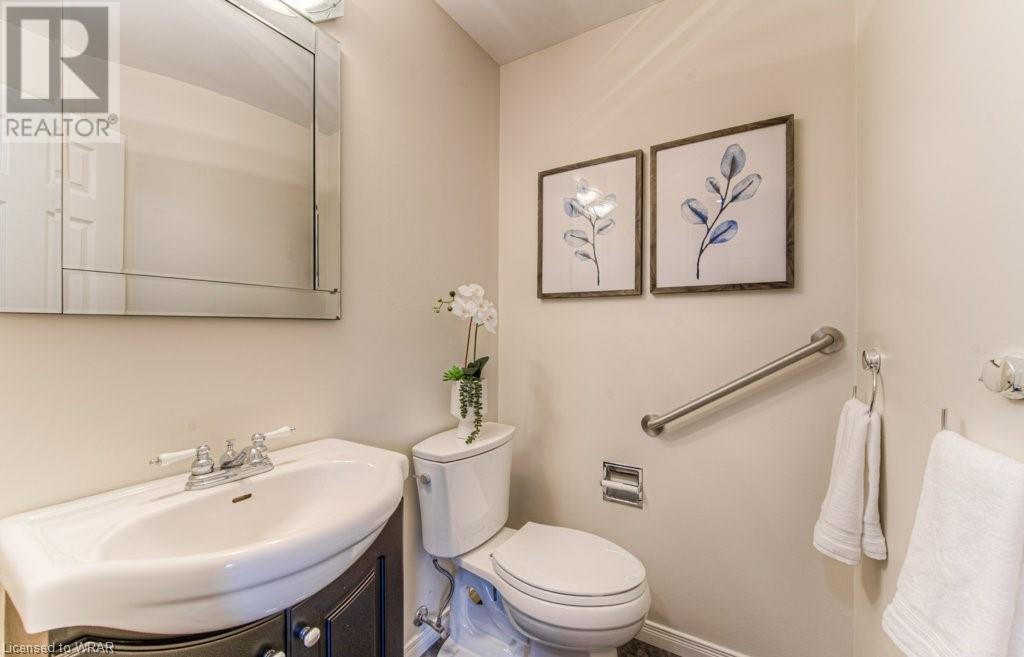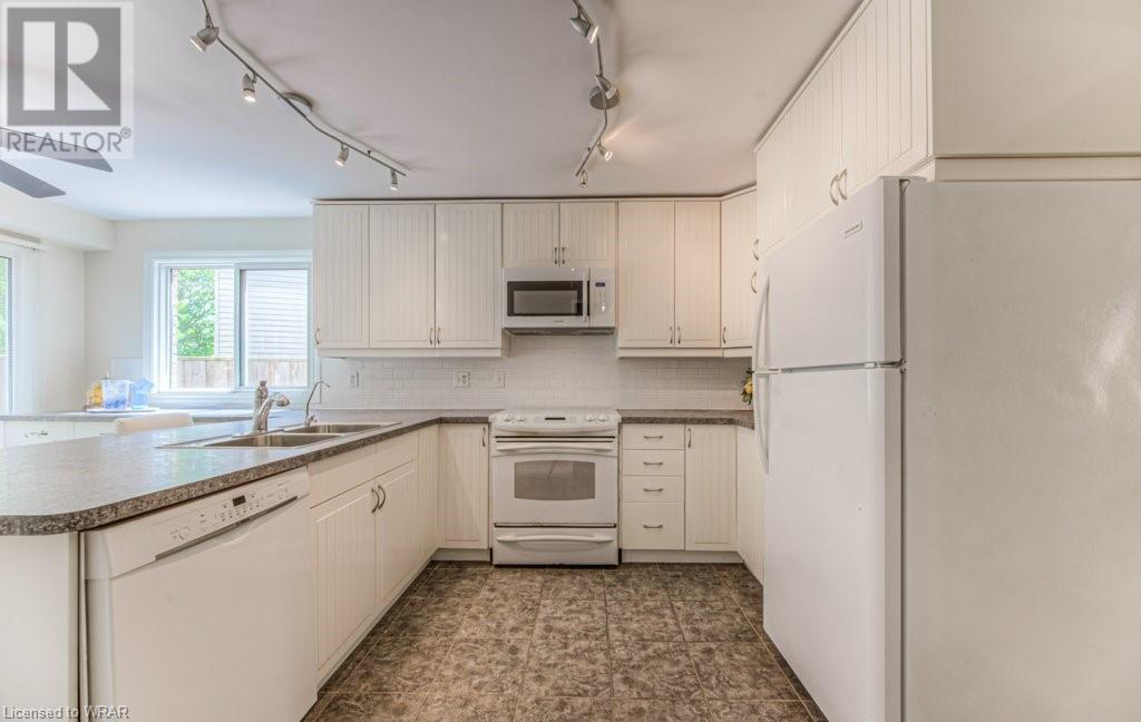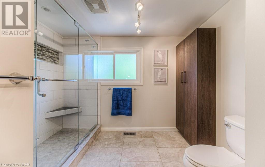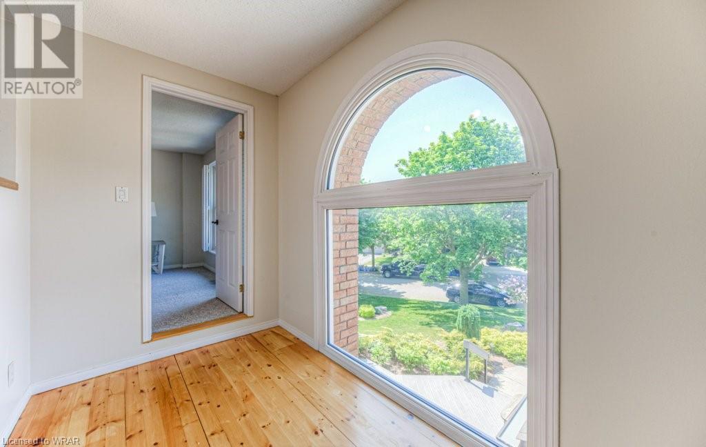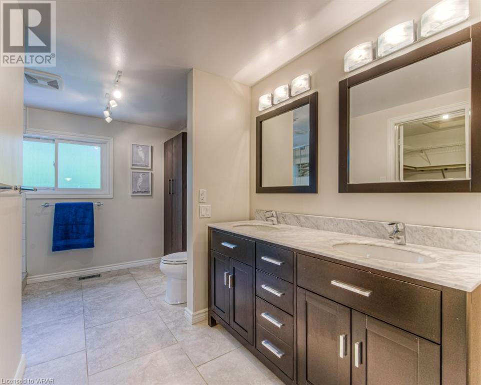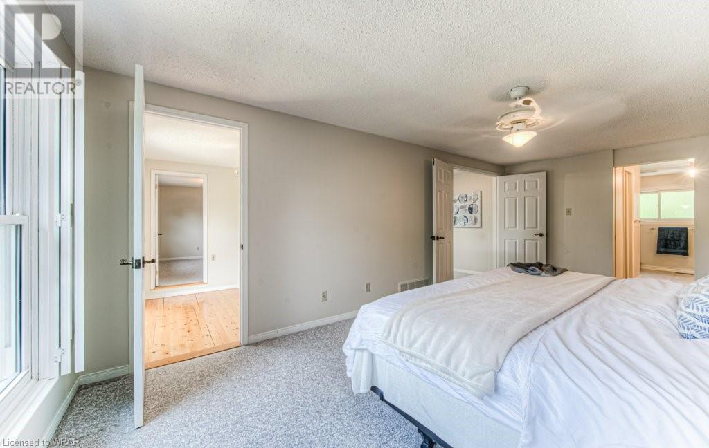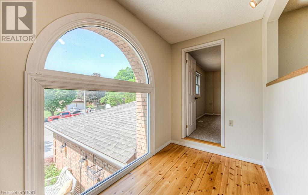 Westvale Family Home! This 2,484 square foot 4 bedroom home sits on a quiet crescent in a family friendly Waterloo neighbourhood. Incredible natural light abounds as you walk in to the main foyer with a circular staircase and tile entrance. The main floor layouts boasts a family room with gas fireplace, formal dining room, sunken living/great room with hardwood floors, main floor laundry, and a spacious eat in kitchen with tile floor, breakfast bar and sliders out to your composite deck and fenced backyard. Plenty of room upstairs with a large primary bedroom and renovated ensuite bath with Italian porcelain tile, rain shower head and more! Downstairs you'll find the newly updated rec room with an incredible home theatre set up including 4K projector and static screen. Have a drink or sit and visit with friends at your home bar! Plenty of storage in the basement. Other features include a gas line to BBQ, backyard storage shed, parking for 4 cars in the driveway (plus 2 in the garage), and updated garage doors. (id:22211)