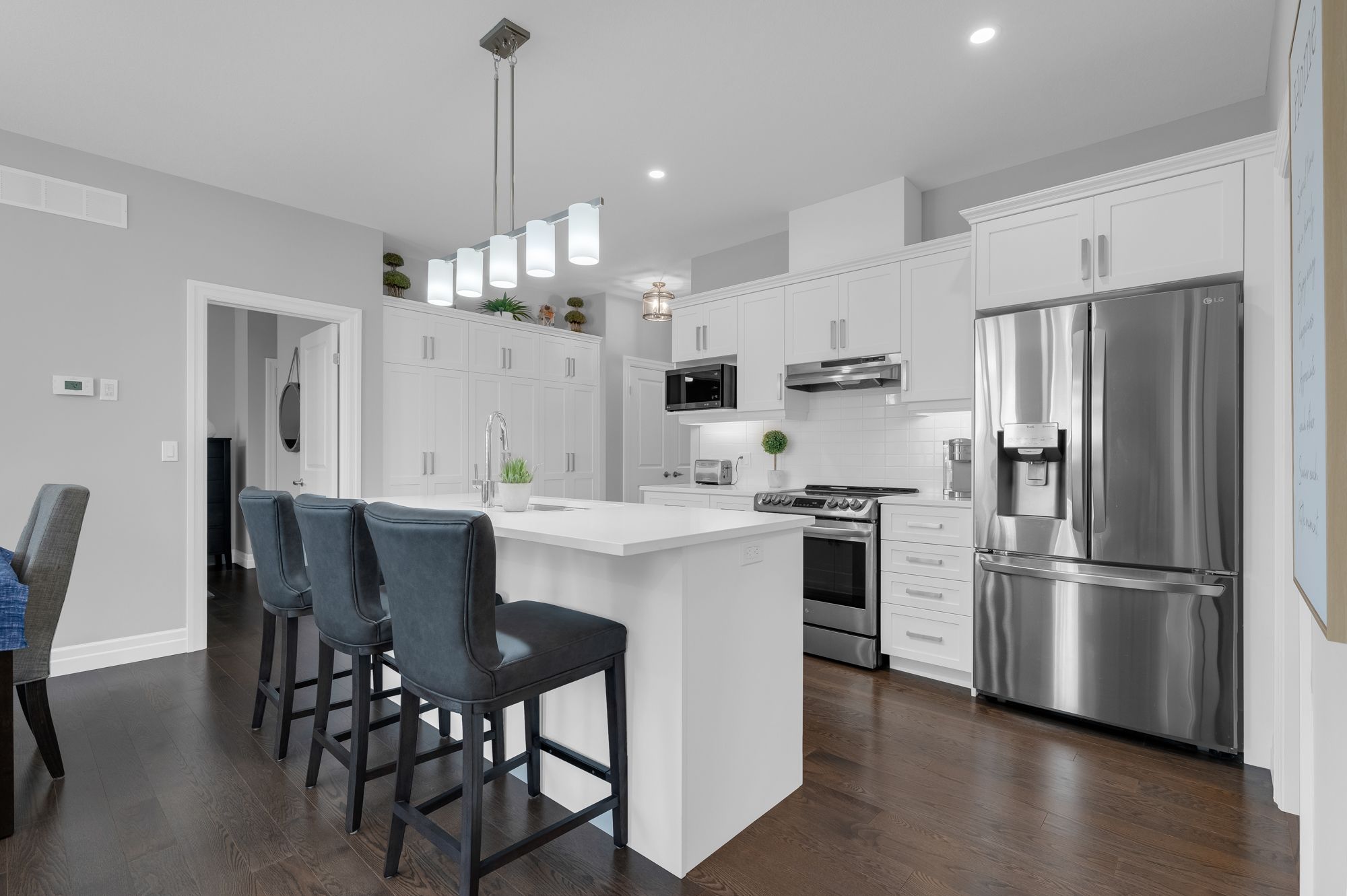 Discover your dream home at 47 Borden Trail, located in the heart of Welland. This modern bungalow townhome is perfect for first-time home buyers, retirees or investors. This exquisite property offers 2 spacious bedrooms, 2 pristine bathrooms with over 1,200 sqft of living space. As you step inside, you’ll be greeted by a welcoming atmosphere featuring an open concept design, natural lighting, 9 ft ceilings, california shutters, pot lights & engineered hardwood flooring throughout. The heart of this home lies in its gourmet chef's kitchen, complete with ss appliances, white quartz countertops, subway tile backsplash, an impressive kitchen island with a breakfast bar & sleek white cabinetry with additional pantries. The kitchen seamlessly integrates into the dining area & spacious living room with a gas fp, creating the perfect ambience for entertaining. Relax in the primary suite, boasting 2 closets including a walk-in closet & a 3-pc ensuite with a glass walk-in shower.Further highlights include an additional bedroom, 4-pc bathroom, laundry room, an upgraded railing leading to the basement, 2 car garage, 2 car driveway & a covered wooden deck overlooking the lush backyard, with access to the garage.