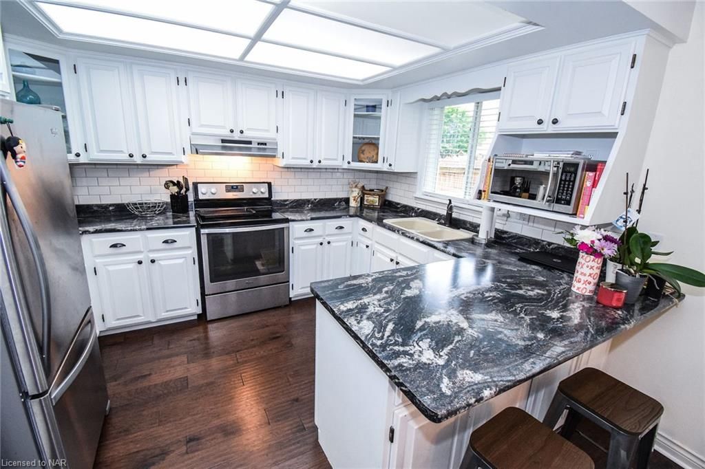 Welcome to Winfield Estates, one of Welland's highly sought after locations. This extremely well cared for family home is on a nicely landscaped lot adjacent to the neighbourhood park. Offering 3 upper level bedrooms, including large primary bedroom with ensuite privilege, whirlpool tub and separate shower. Main floor features a cozy sunken family room with fireplace & spacious eat-in kitchen. There is a large formal dining room/living room for all your entertaining needs. The laundry is on the main floor along with a 2pc bath. Partially finished basement level has a finished bedroom & 3pc bath, tons of storage and a walk-up to the double car garage which makes this perfect for an in-law-suite or second unit. Just needs your personal touches to finish. The Steve Bauer Trail just minutes away for all your outdoor activities. Also just minutes away for all amenities, schools & great golf courses. Do not wait for this one!!