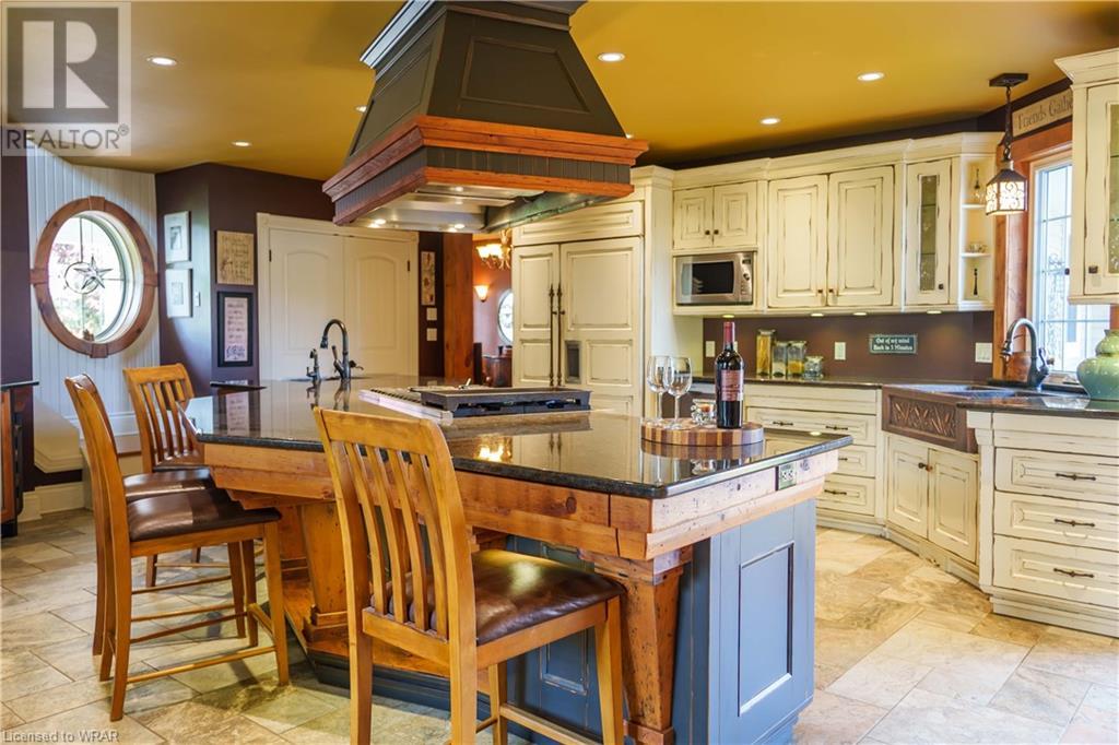 1309 Queen’s Bush Road is a Stunning Respite that you must see for yourself! Very private and built in the 1800’s, this home has a beautiful Story of additions and updates from the ground up- With everything meticulously updated and thoughtfully planned. From the minute you enter the home, you feel the warmth that emanates from the love poured into it. Character is found throughout, with large windows and doors offering natural bright light, and includes thick walls, wide plank flooring, exposed brick, rustic deep windowsills, and exposed beams above the doors and ceilings. You will be delighted with the Dream Chef’s kitchen and oversized island, custom copper sink, commercial oven and beautiful appliances, coffee/wine bar, huge pantry, and storage. This home offers 6 bedrooms, 5 bathrooms, incredible living spaces, a beautiful home office, 2 wood burning fireplaces, a Sports bar with wet bar, games room and special bonus room with Hobbit Door! The primary bedroom is large and offers a walk-in closet, ensuite bathroom, and a private covered porch (1 of 5 covered porches on this home!) Easily access the finished loft space above the heated 3 car garage (with gym and sauna) through its own separate entrance. Situated on a spa like setting, this outstanding property has two separate pools that have their own ecosystem, avoiding chemicals and cost. The covered porches offer healing views of 3 acres, and the unsurpassed entertainment pool area with hot tub guarantees fun and precious Summer memories ahead! This home is also on municipal services so there is no concern about septic systems. The uses for this property are endless – bed and breakfast, or culinary retreat with the chef’s kitchen, a wellness retreat or art retreat, or even an Event destination. You work hard – come see the quality of life this property and home offer - and let the serenity surround you. (id:22211)
