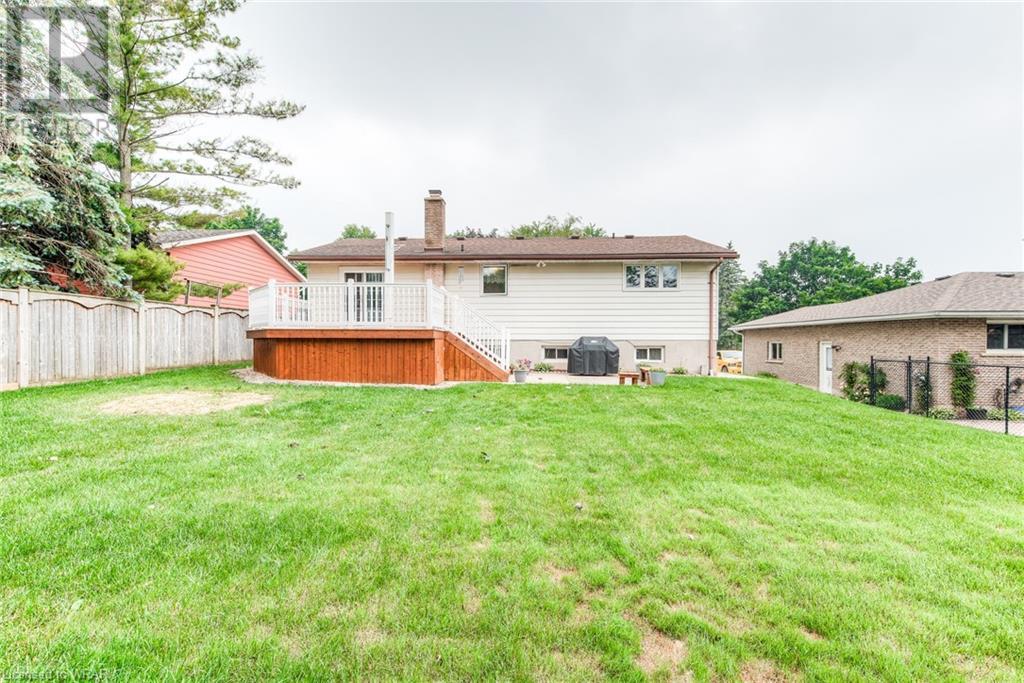 Welcome to 36 Reiner Crescent in Wellesley. This well maintained family home with 3 bedrooms and 2 bathrooms is located in a very sought after part of Wellesley. Close to all the amenities that lovely Wellesley can offer. The main floor offers a nice living room, dining room, and a nice bright kitchen with a very large walk-out deck for all your summer entertaining. The 3 bedrooms and 4 pc bathroom are all very generous. The basement has another bedroom, an office, and a large Rec. room with a gas stove. There is also plenty of storage in the utility room and a 3 pc bathroom. The backyard is large enough for a pool and there is a nice shed as well. Make this home your home!! (id:22211)