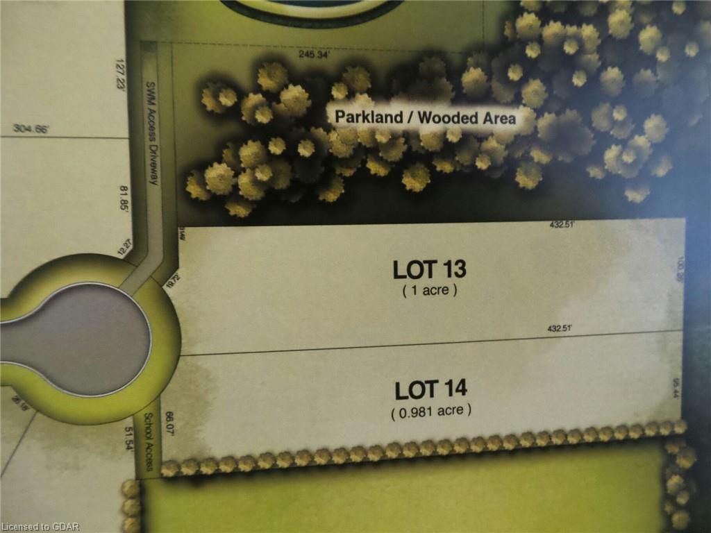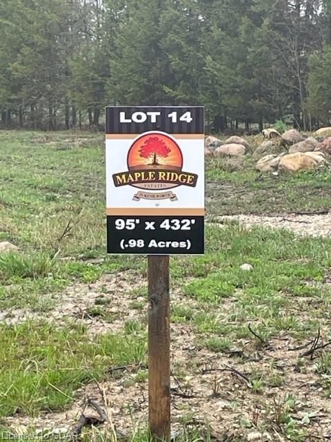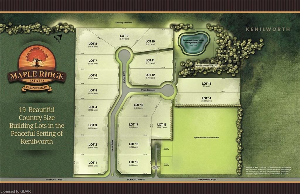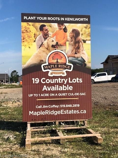 Build your Dream Home! Rare One Acre building lot ready to go, in a newer country subdivision in the peaceful Hamlet of Kenilworth. This 95'x440' lot is situated at the end of a quiet cul-de-sac amid neighbouring custom homes. High speed internet available. Architectural guidelines are applicable for all new homes being proposed.