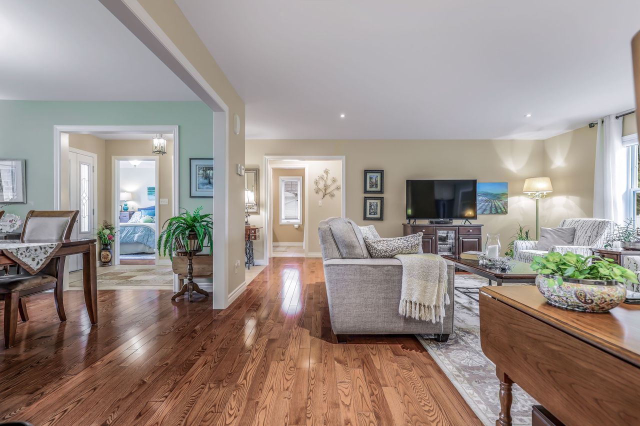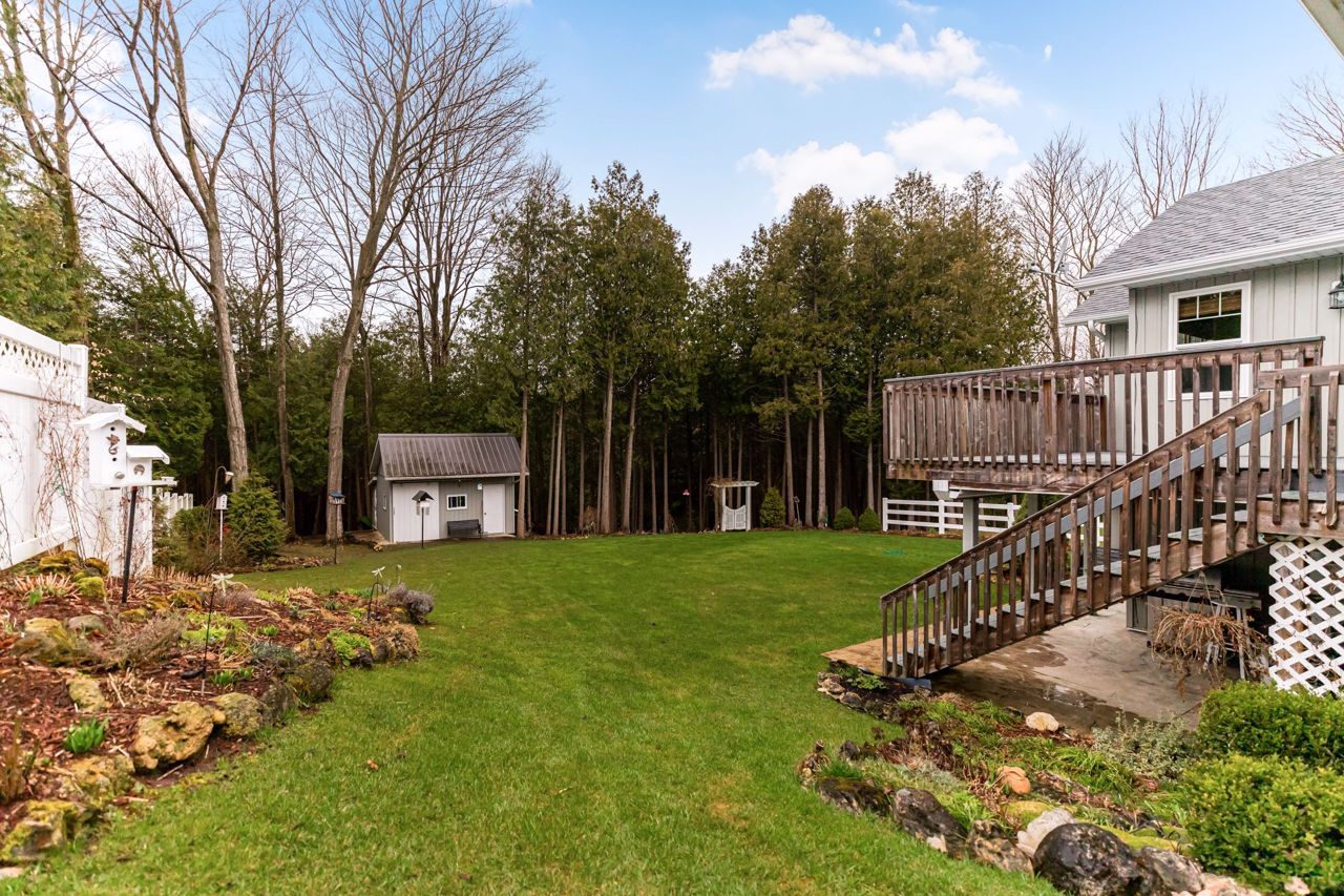 Welcome to 112 Glenwood Place, this spacious 3,400 sq. ft. 4 bedroom, 3 bathroom bungalow built in 2010 showcases pride of ownership throughout. Nestled on a generous .60 acre lot, just outside of Markdale, the inviting front porch sets the tone for this charming residence. Step inside and see that the open concept main floor layout is perfect for hosting gatherings or keeping an eye on the children, your formal dining room provides a touch of elegance. From your eat in kitchen you'll find access to your raised deck overlooking the beautiful forest views, making it a tranquil spot for your morning coffee or evening relaxation. The primary bedroom provides 2 closets, a spacious ensuite bathroom and direct access to the rear deck. The two secondary bedrooms upstairs share the main bathroom and have ample closet space. Garage entry to the mudroom/laundry room combination. Downstairs features a large open recreation room, impressive indoor workshop - ideal for the DIYer, additional bedroom, bathroom, and walkout to the back yard. Outside you will find, a covered stamped concrete sitting area perfect for staying cool in the shade or listening to the rain while staying dry. The landscaped back yard has been meticulously maintained, and offers a garden shed perfect for storing your tools.