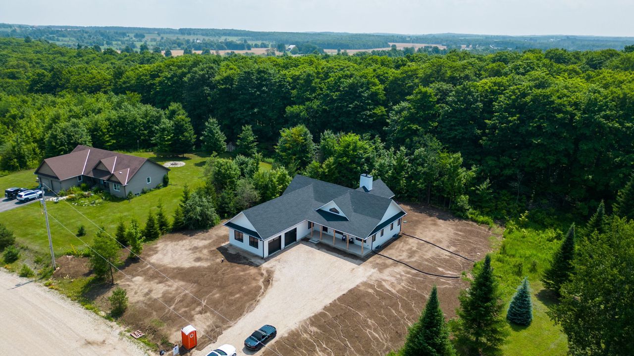 Interboard Listing with Realtors Association of Grey Bruce Owen Sound** Custom home located in a quiet country neighbourhood nestled in the rolling hills of Grey County. Just minutes from Irish Lake, Lake Eugenia and a short drive to the ski hills. This 1,950 SF 3 BR, 2 bath home feat. a great room with a high vaulted ceiling which sets the tone for the bright, open spaciousness that characterizes this home. Large kitchen is complemented by an oversized pantry. Vaulted covered deck, supported by Douglas Fir beams, overlooks the rear yard of this one acre lot and at a treed slope which ensures privacy.