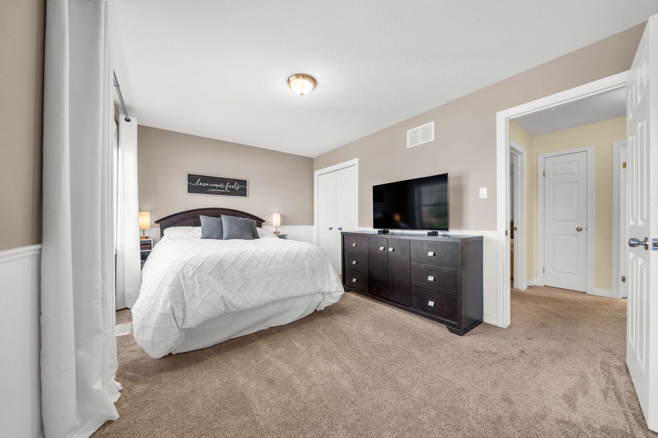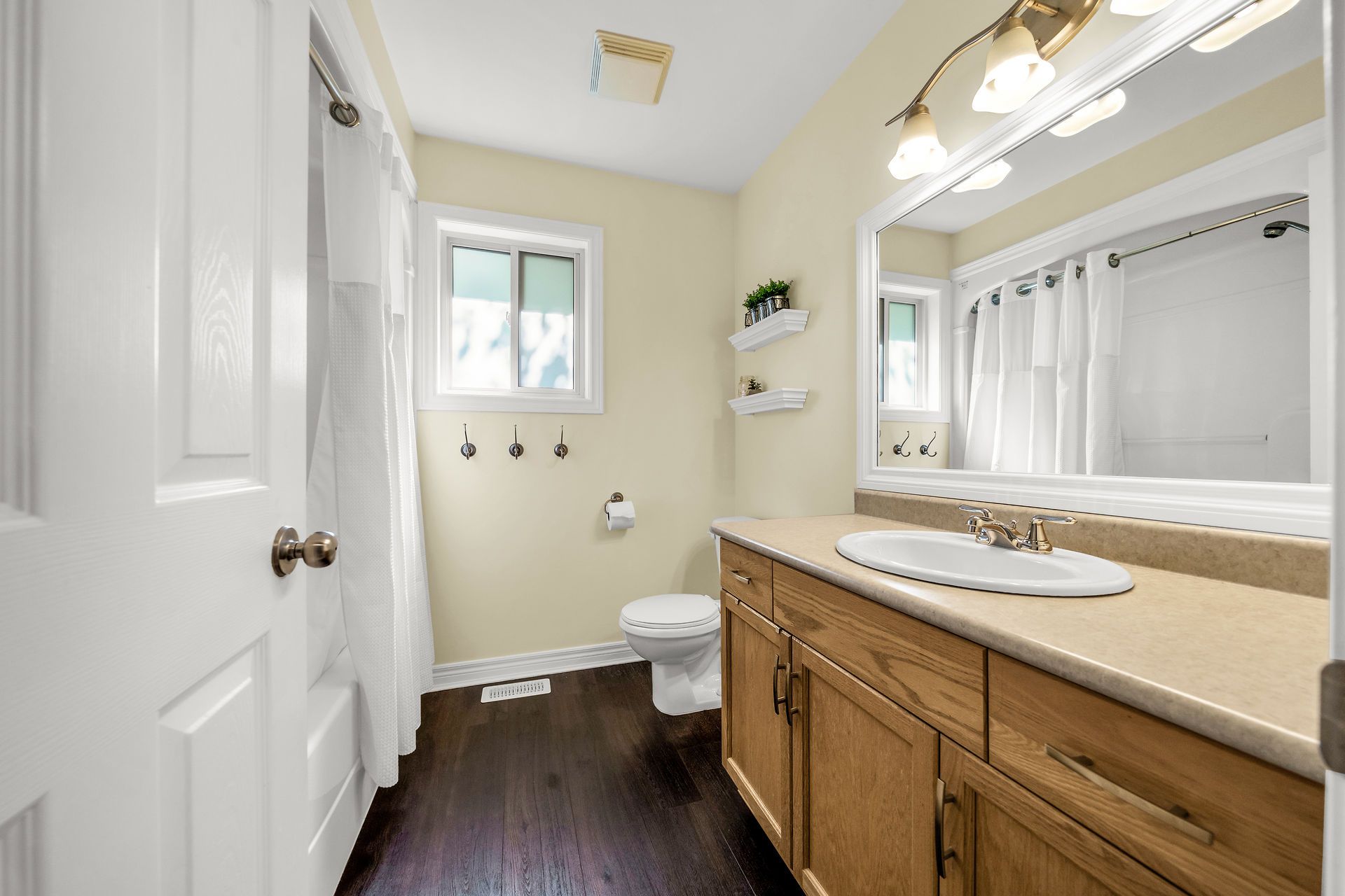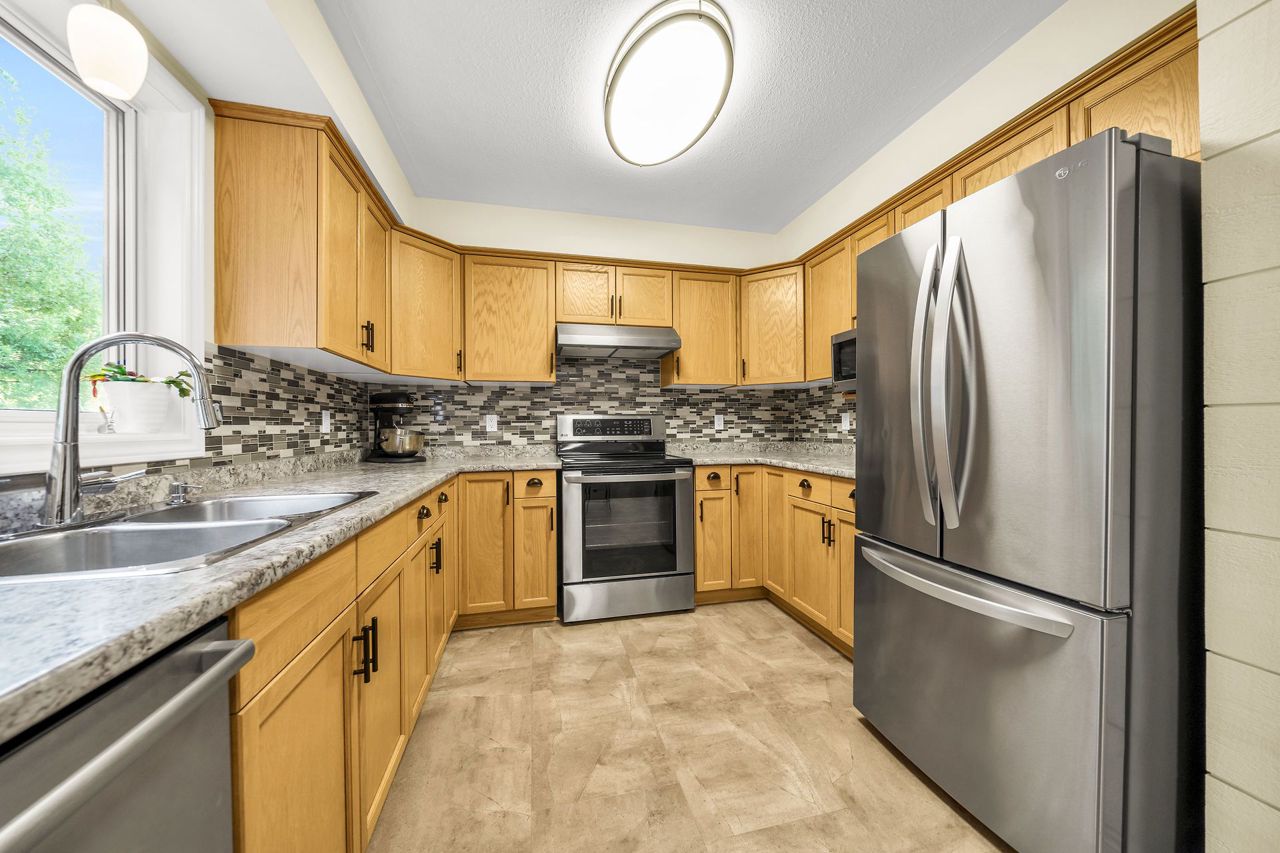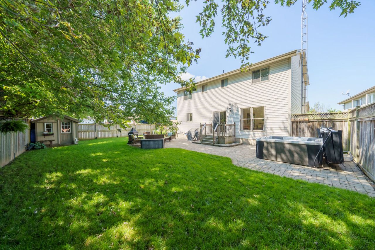 BEAUTIFUL two storey on an oversized corner lot in a great family neighbourhood! This fully finished home boasts over 2400 square feet of finished living space that must be seen to be appreciated. The paved, double wide driveway has space to park six (yes, six!) cars and leads to a heated double car garage. Step into the bright foyer that flows into a formal dining room with hardwood floors and california shutters. The lovely kitchen with a breakfast bar has been tastefully updated with new vinyl flooring, new countertops, stainless steel appliances, and a beautiful shiplap accent wall and sliding barn door. Upstairs you’ll find a 4-piece bathroom and three spacious bedrooms including the primary retreat with two double closets and a 3-piece ensuite. Entertain your guests in the oversized backyard that boasts a 30’ x 45’ patio area with a hot tub (2019), and outdoor fire pit. Just a 5 minute walk to schools, arena, library, skate park, playground, splash pad and downtown!Furnace & hot water heater 2017. New coil in A/C unit 2019. Shingles 2017. Rough-in for a bathroom in the basement closet. Basement is wired for surround sound.