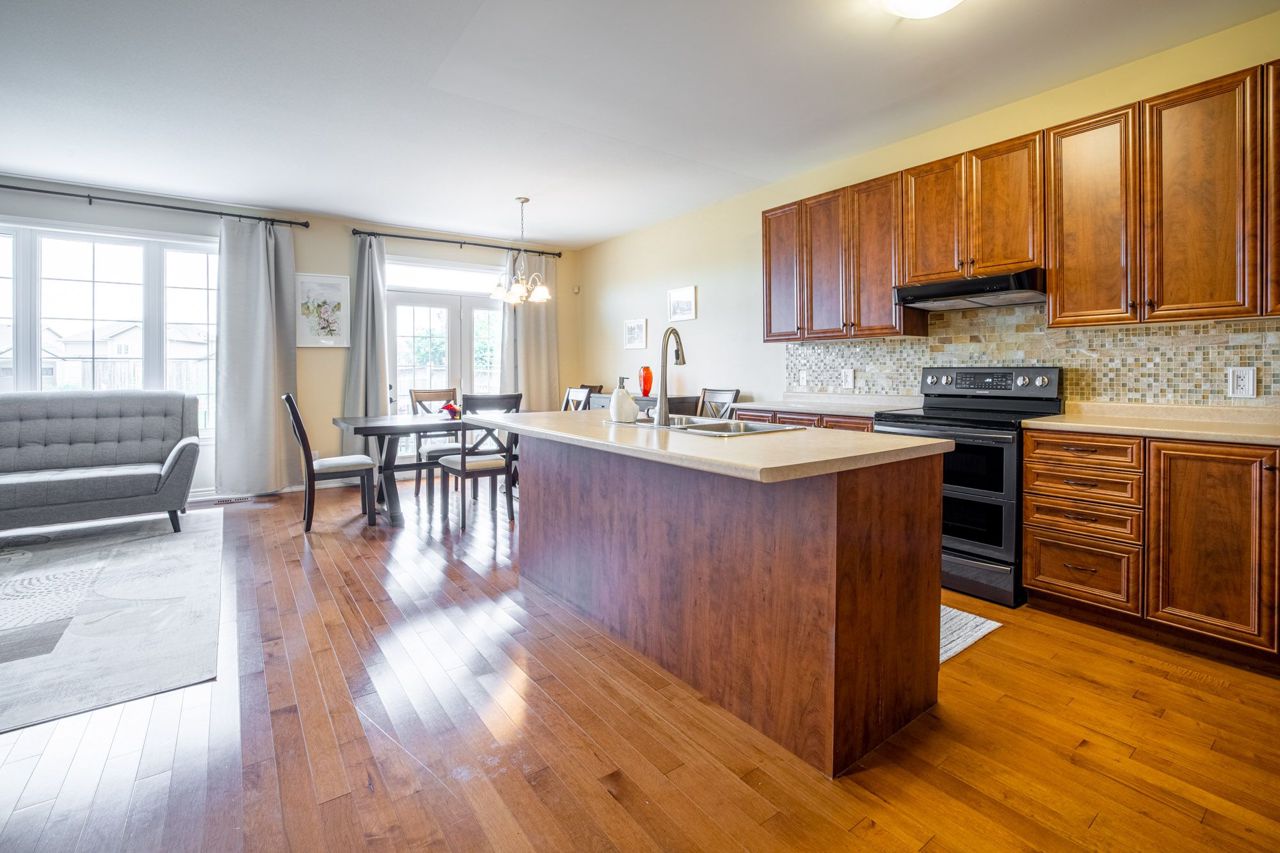 Very private and quiet community. Excellent bungalow in mint move-in condition. Hardwood floors throughout. Spacious open concept family/living combined with breakfast, kitchen area. Walk-out to hude backyard. Over 1,500 square feet of living space. Modern kitchen with lots of cabinets. 2 car garage + additional parking spaces on driveway. 3 full bathrooms.1 year old High efficiency furnace, 1 year old hot water tank (rental).