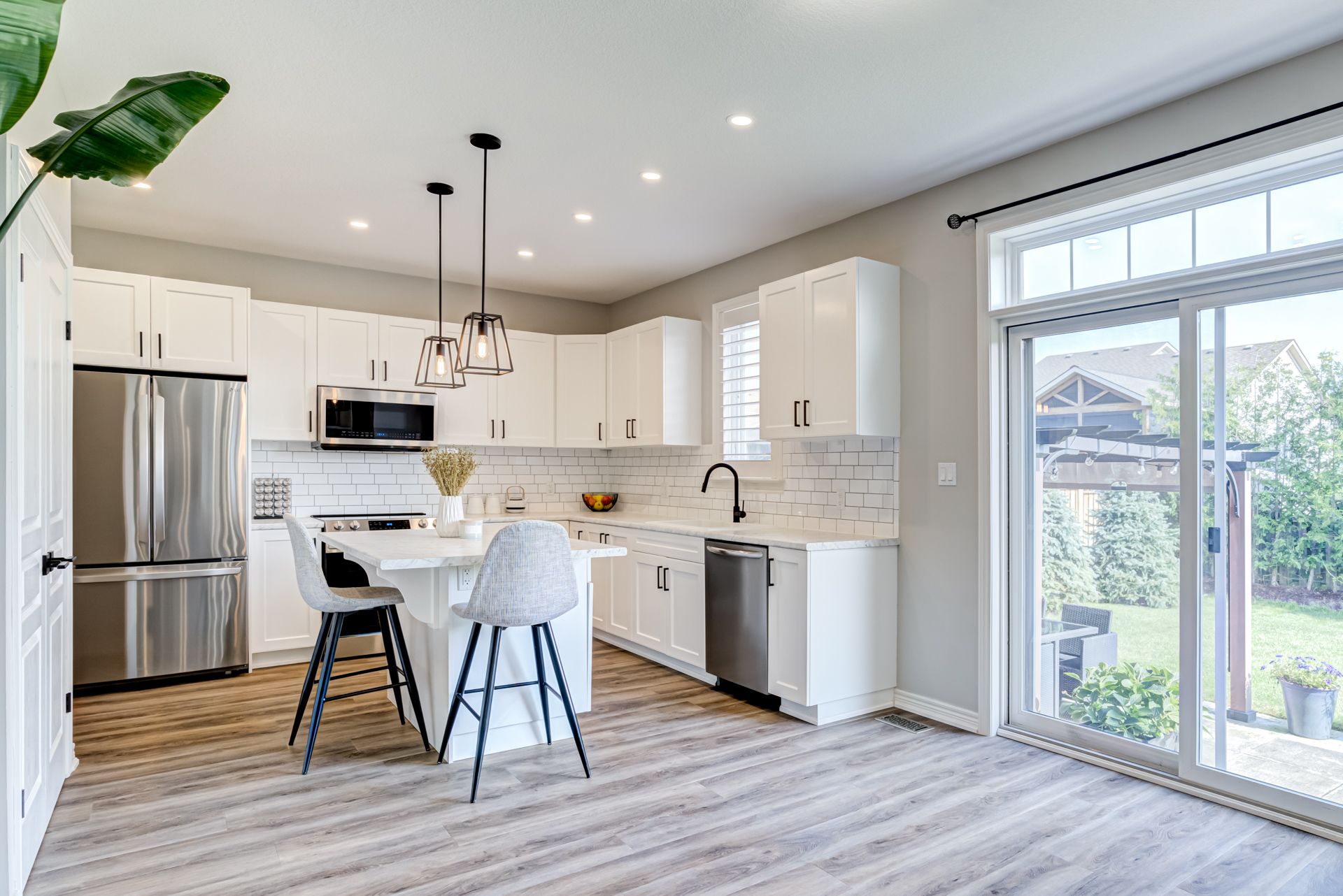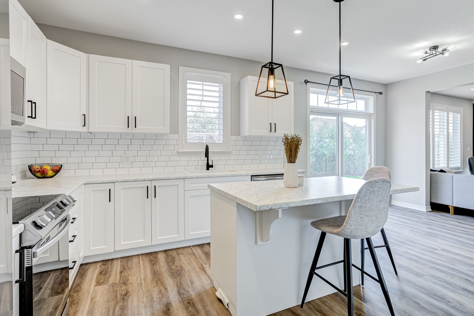 Vinyl Floor O/Looks Backyard Open Concept