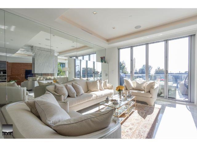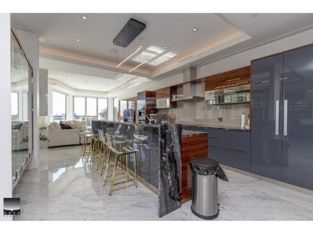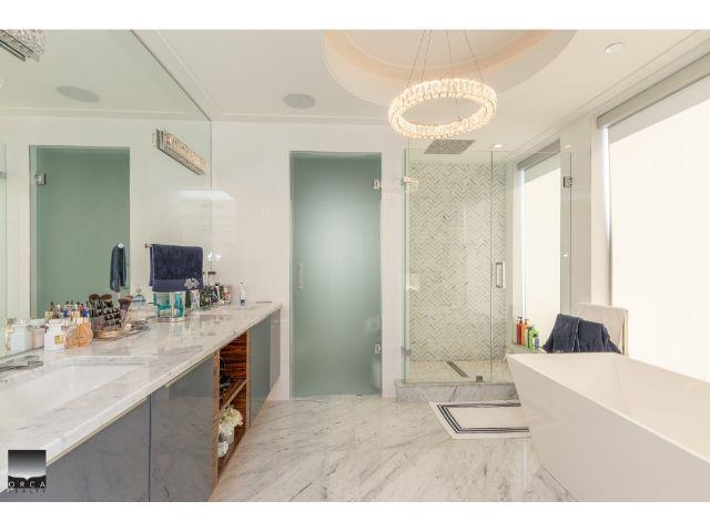 This exceptional ultra-luxurious "Dream Home" offers 3761 sq. ft. of modern living space, featuring 4 beds, 4.5 baths across 3 levels. Enjoy city and ocean views from the expansive living and dining areas, Italian kitchen, and family room. This residence includes integrated Control 4 lighting, an elevator, air conditioning, and a glass wine display. With outdoor features like water displays and a gas fire, the property is conveniently close to Hollyburn Country Club and top-rated schools.