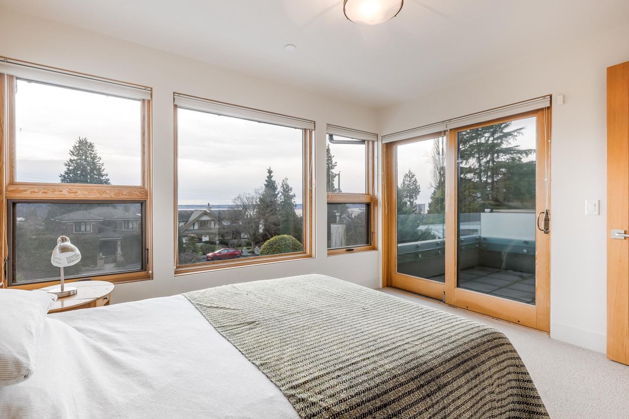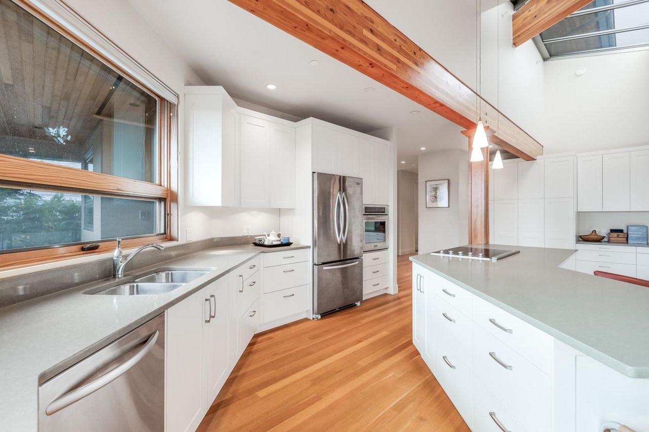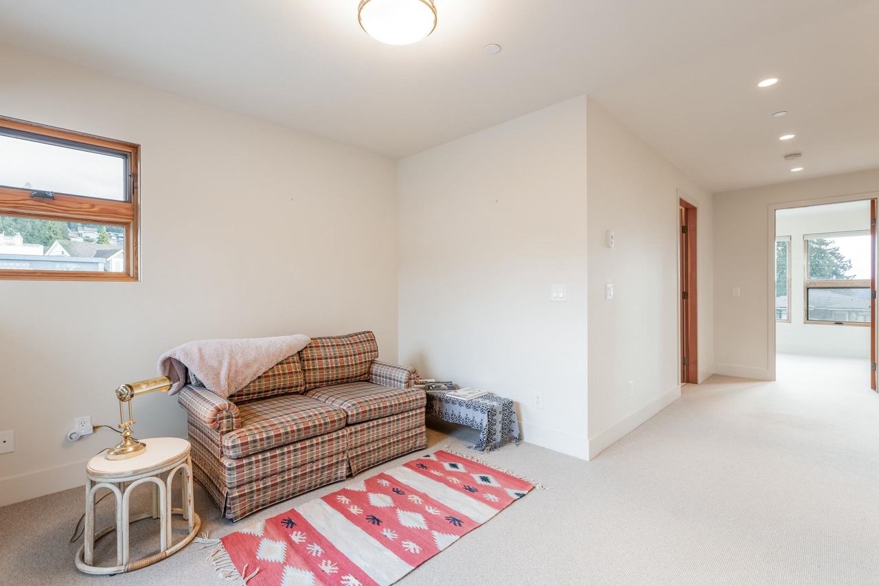 The perfect home to age in place! Custom built in 2010, this one owner home has been thoughtfully designed w/ a focus on mobility incl/ a primary bdrm on the main, level access from the garage, & an elevator. The nearly 2,000 sq/ft main floor is highlighted by a terrific open plan featuring 15’ vaulted ceilings, wood beams, and a large skylight. The primary bdrm features a gas fp, a sitting area, French doors to a patio, & a 3-pce ensuite w/ a large curbless shower. Upstairs is 1 bdrm + den, 1 bath, and offers city and water views. The lower lvel has a felxible layout w/ a roughed-in 1 bdrm suite. Other features include a zinc metal roof, radiant in-floor heating, solid hw floors on the main, fir doors, mature privacy garden, & a standby generator. Close to all Ambleside amenities.