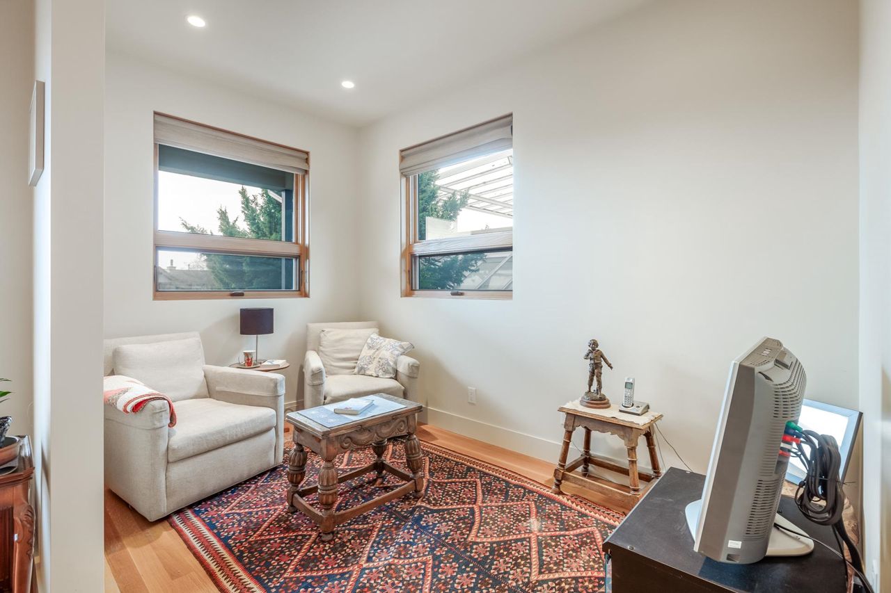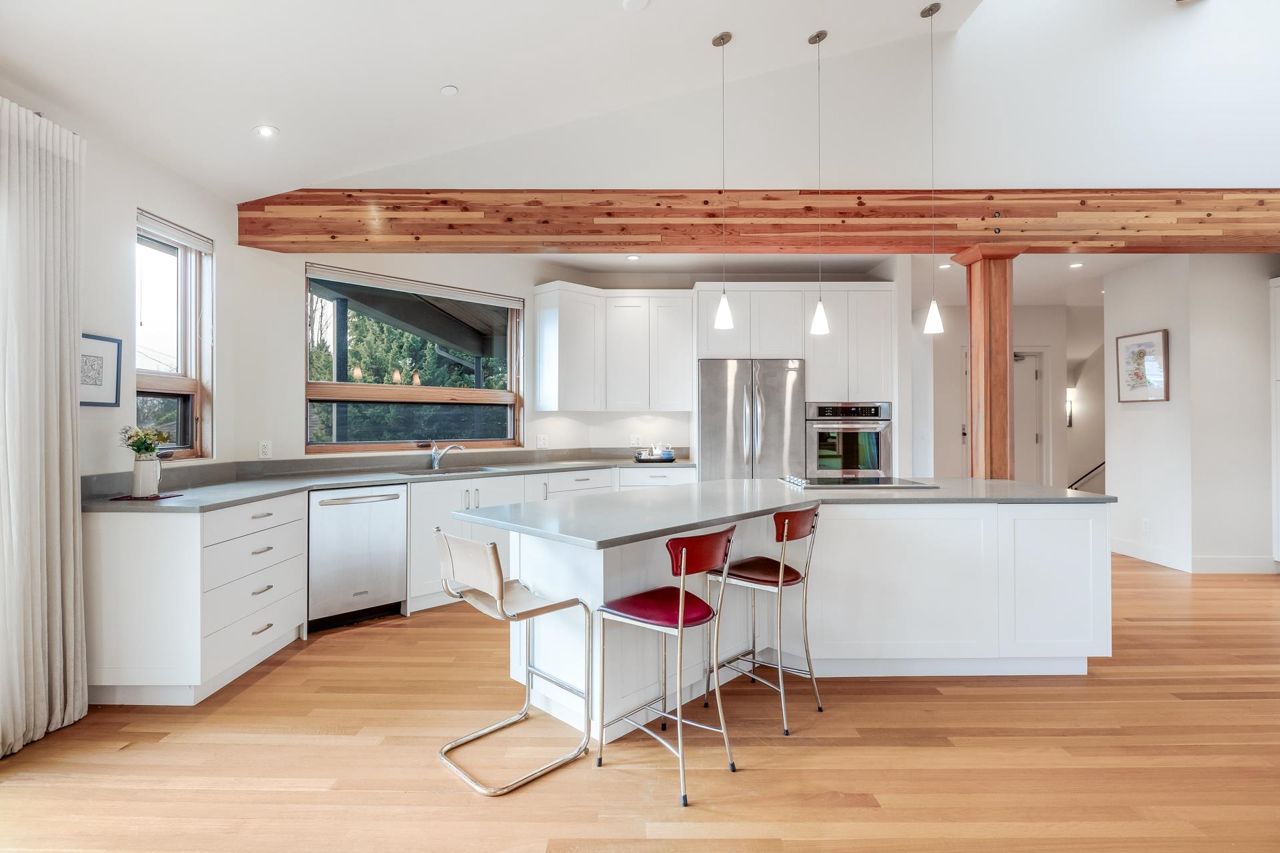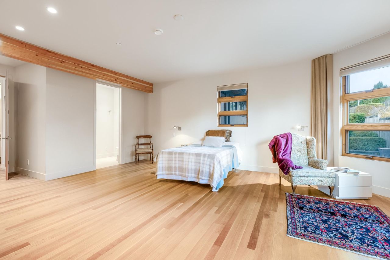 The perfect home to age in place! Custom built in 2010, this one owner home has been thoughtfully designed w/ a focus on mobility incl/ a primary bdrm on the main, level access from the garage, & an elevator. The nearly 2,000 sq/ft main floor is highlighted by a terrific open plan featuring 15’ vaulted ceilings, wood beams, and a large skylight. The primary bdrm features a gas fp, a sitting area, French doors to a patio, & a 3-pce ensuite w/ a large curbless shower. Upstairs is 1 bdrm + den, 1 bath, and offers city and water views. The lower lvel has a felxible layout w/ a roughed-in 1 bdrm suite. Other features include a zinc metal roof, radiant in-floor heating, solid hw floors on the main, fir doors, mature privacy garden, & a standby generator. Close to all Ambleside amenities.