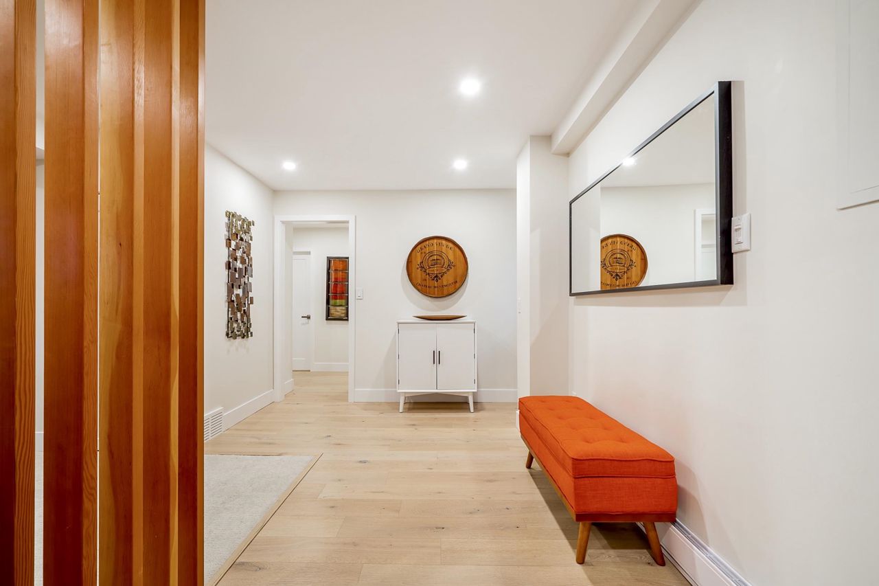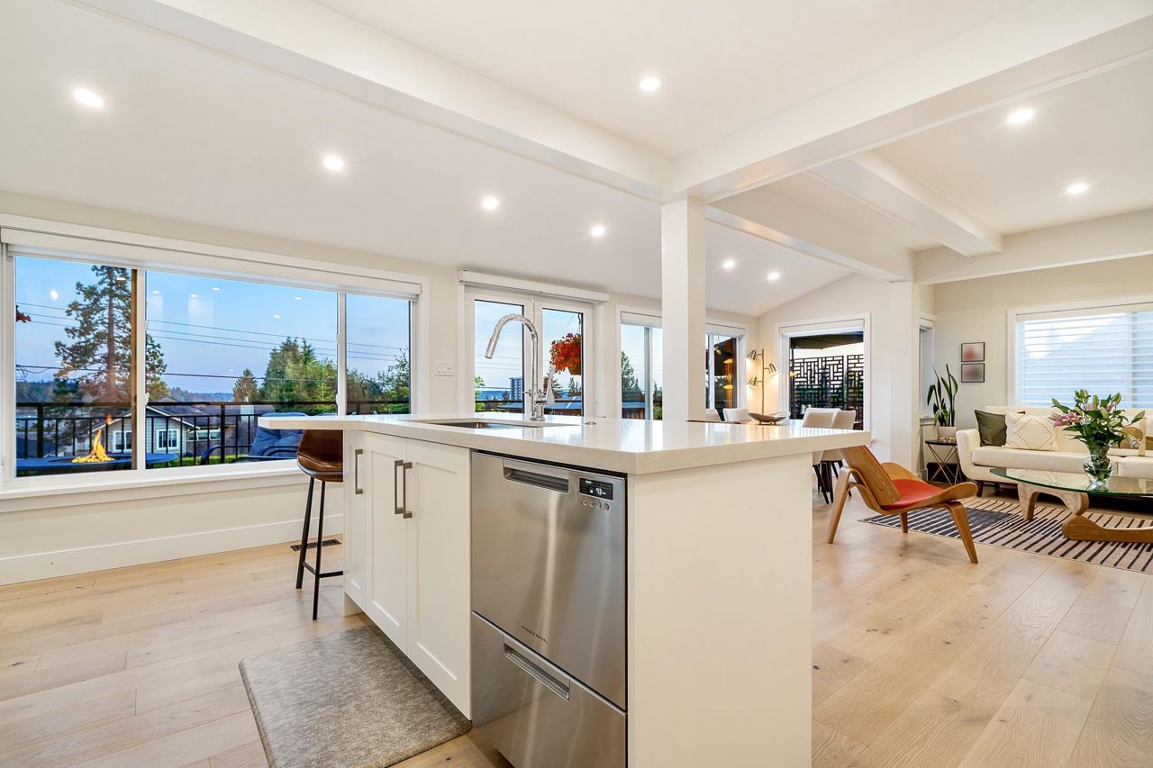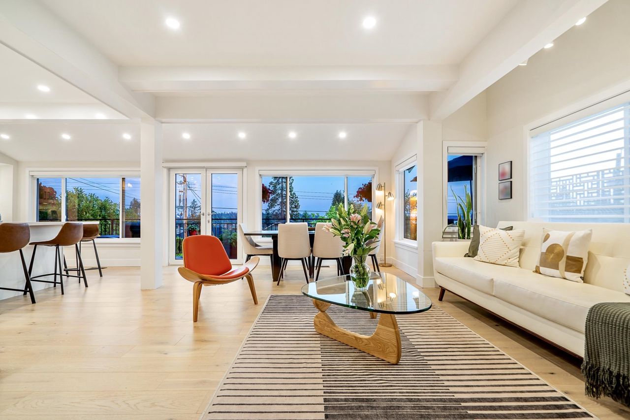 Ambleside family residence, reconstructed in past 2 years, ocean & city skyline views. Approx 3085 SF flrpln on 3 levels, 4 bed, 3 bath w/heated flrs. Elegant foyer leads to spacious living & dining areas w/stone FP, custom island kitchen w/stone counters, top-of-the-line appl’s, brkfst bar, great rm w/media centre, primary bedrm w/ensuite, veranda w/outdoor lounge & BBQ centre. Walk-out lower level feat rec rm, office w/sitting area, 2 bedrms, laundry/mudrm & access to sun-filled front yard. All new feat incl windows, metal roof, Chalet Blanc HW flrs, Lennox furnace & AC, Navien hot water, doors & hardware, carpeting in all bedrms, security & 5 zone sprinkler. Ppty offers landscaped, private fenced yard, & new 2-car garage w/lane access. Mins to all West Van amenities. Incredible value!