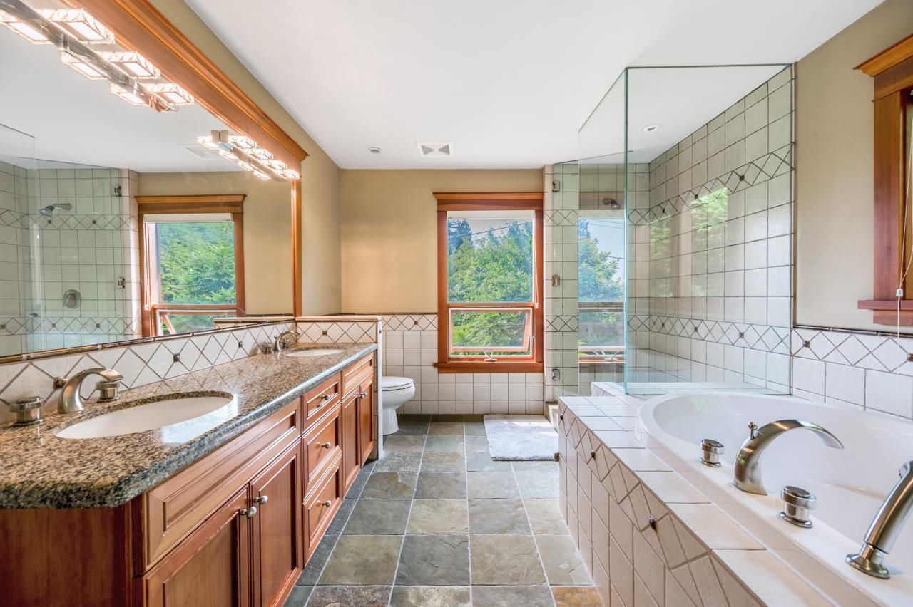 Fully remodelled home conveniently located in the heart of Ambleside. Privately located on a quite street, this 4500+ sq/ft home on a 13,527 sq/ft lot has it all. Substantially rebuilt in 2000 brought the home up-to-date with an open floor plan with 4 beds and 5 baths, family room with high vaulted ceilings and skylights allowing lots of natural sunlight. Enjoy cooking in the gourmet kitchen and dinner parties in the cozy dining room with a fireplace. Chalet style wood windows and wood trimmings throughout the house. Enjoy the outdoors on the sundeck overlooking the beautiful private garden or relax in the hot tub under the gazebo. Lower lever includes a large recreation room, exercise area and in-law suite. Close to schools, shopping and Ambleside beach. *Open House Sun Aug. 6th 2-4pm*