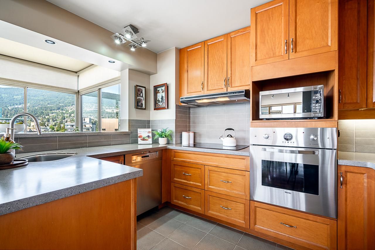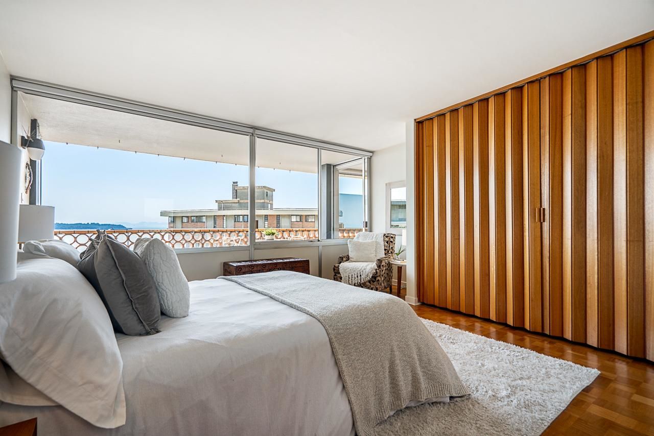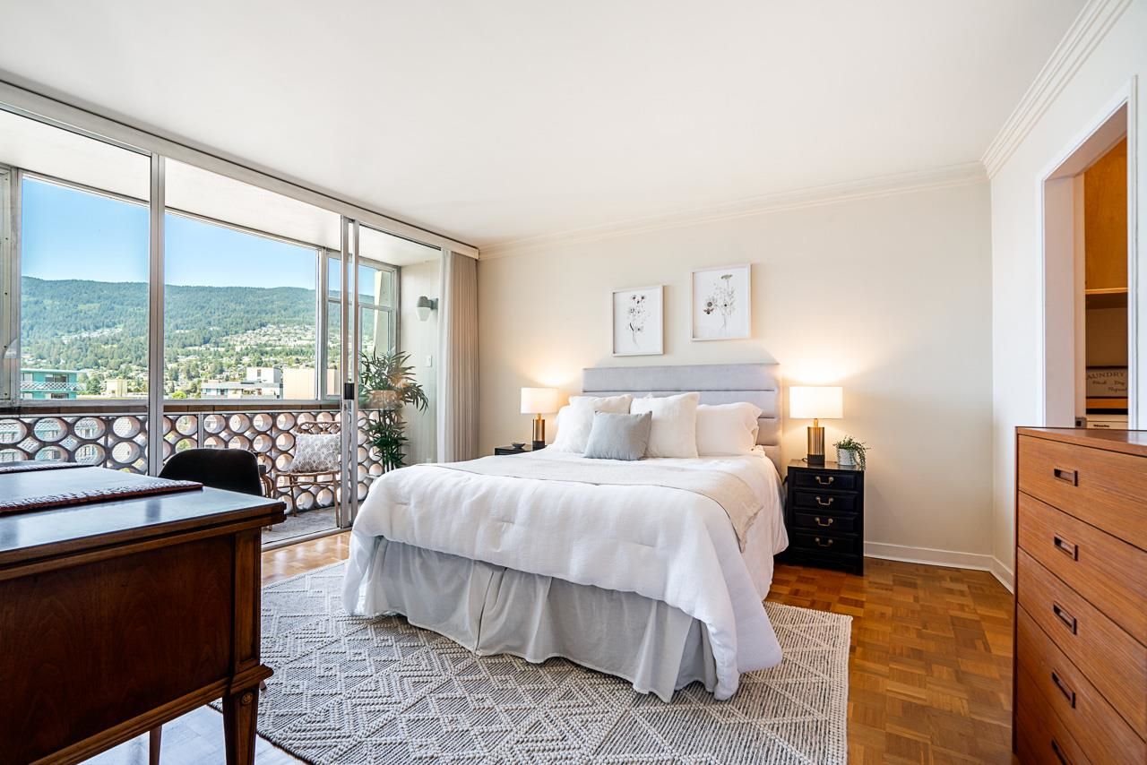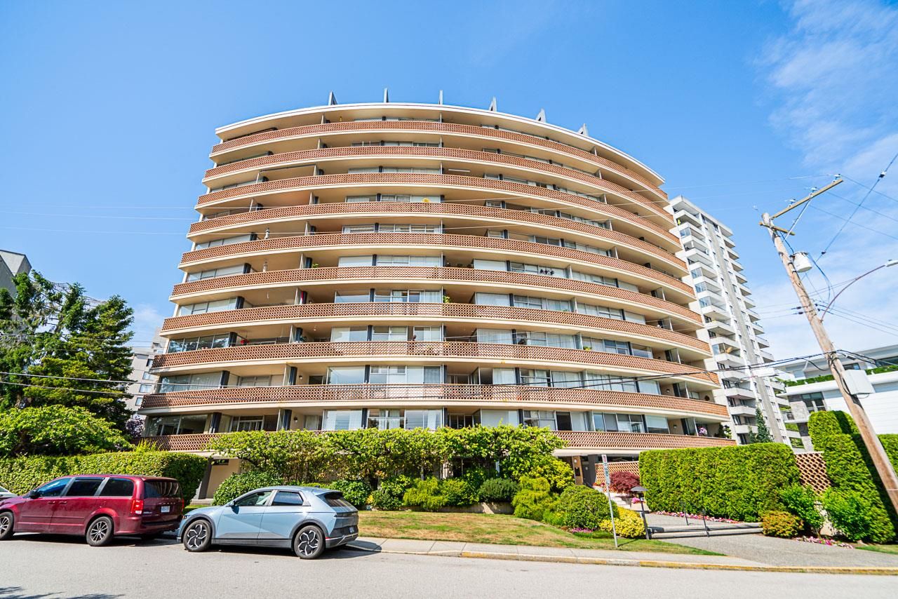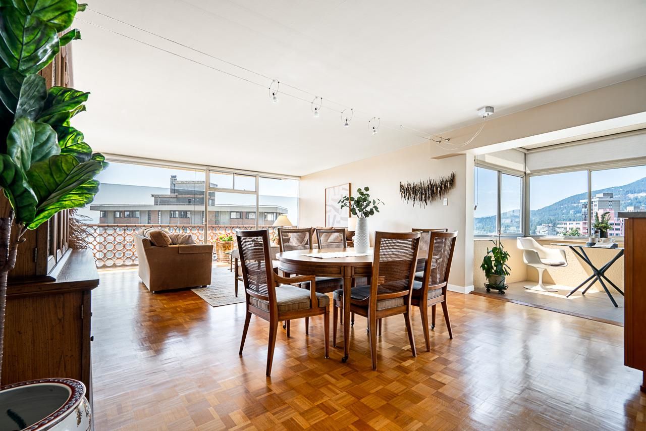 Welcome to the iconic Crescent building and the south west corner Penthouse. Spacious 2 bedrooms, 2 bathrooms, over 1500 SF well maintained suite, with spectacular views and sunsets! Enjoy outside entertaining on your south facing balcony. Features include an updated, open kitchen with stainless steel appliances, Corian counters, large house sized rooms, plenty of storage and in-suite laundry. Both bedrooms offer beautiful views and ensuite bathrooms. The Crescent is located on prestigious Argyle Avenue in a prime Dundarave location, steps to the Seawall, recreation centres, shopping and all amenities. Enjoy the cruise ships go by. This is the perfect lifestyle!