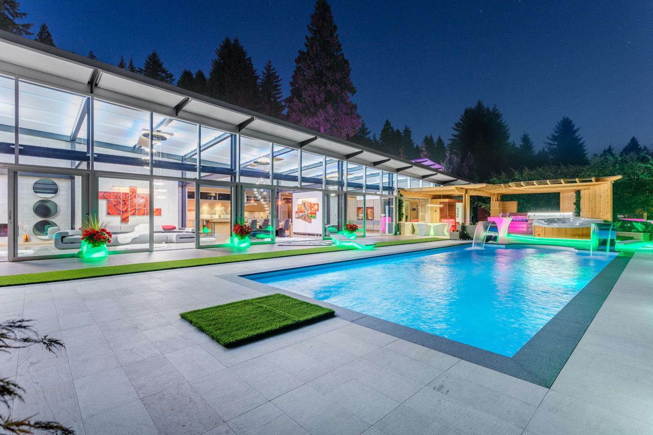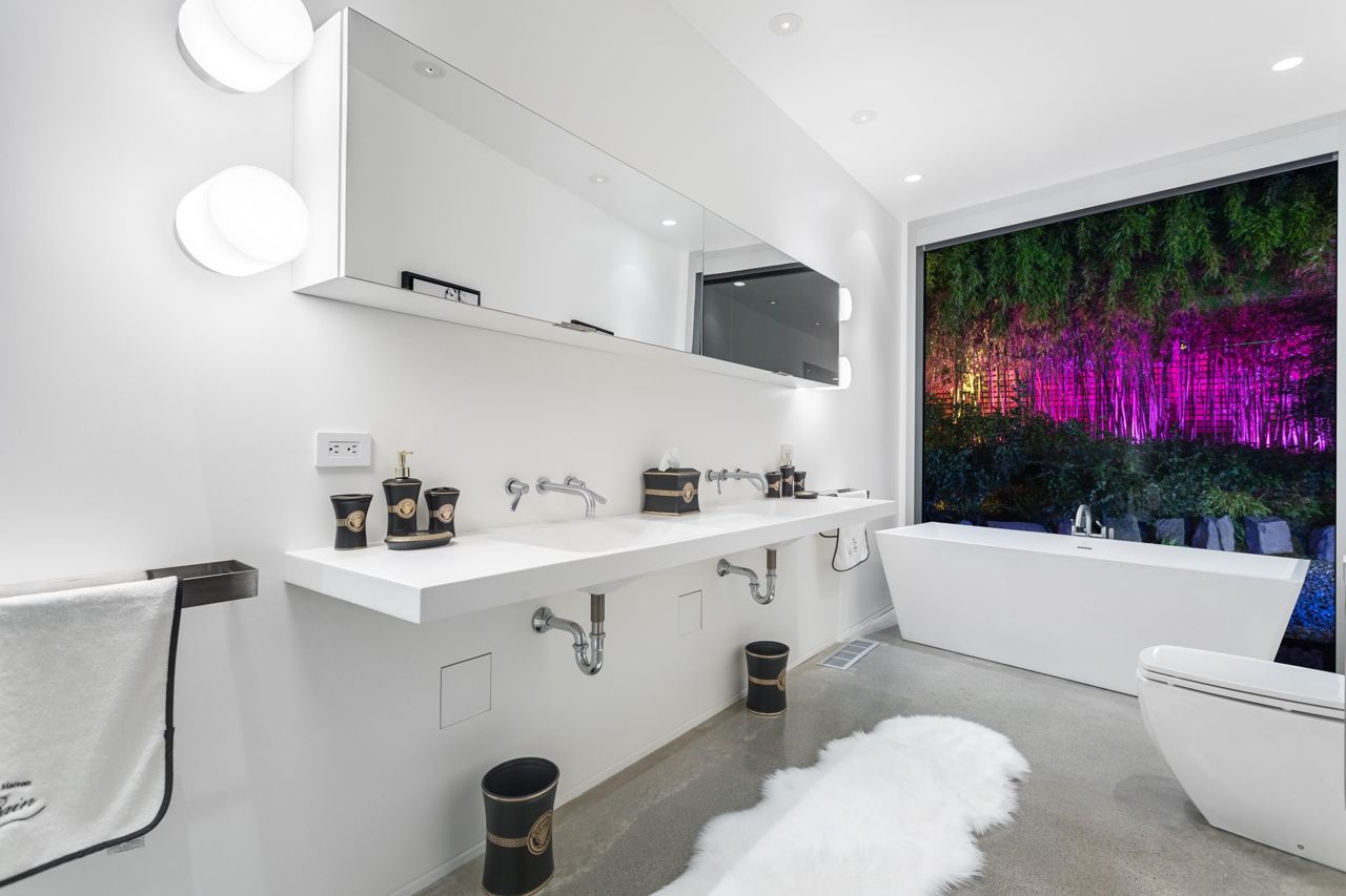 Pinnacle of stunning contemporary architecture in Altamont. Ocean view, open plan, all concrete, metal & glass construction. Separate ocean view guest suite with full kitchen, living, laundry, bedroom, bath. Ultimate housewide high-tech: geothermal & radiant heating, HAI smart home, powered blinds, smart audio & lighting, Armsrong ceilings, and gleaming polished concrete floors. Gaggneau kitchen appliances, granite/bamboo/stainless-steel countertops, custom Kohler sinks, Blum powered cabinets. Outdoor heated swimming pool, jets and endless swimming by Desjoyaux France, Sauna and Spa by CS Lifestyles, marble Napoleon BBQ centre. Outdoor custom RGB LED furniture & lighting by Vondom Spain. Two movie theatres, game room, billiards, air hockey, mini golf, 1200 bottle wine cellar. 3 car garage