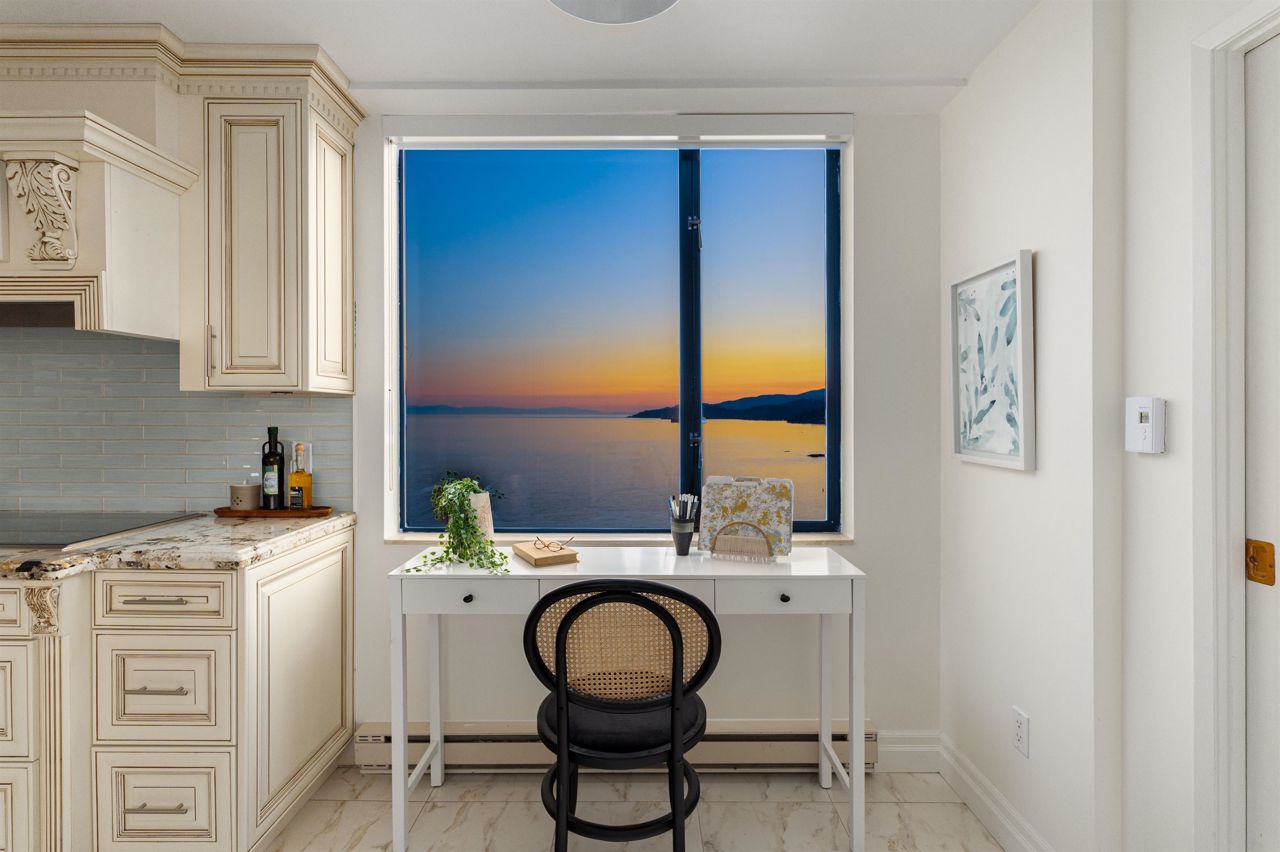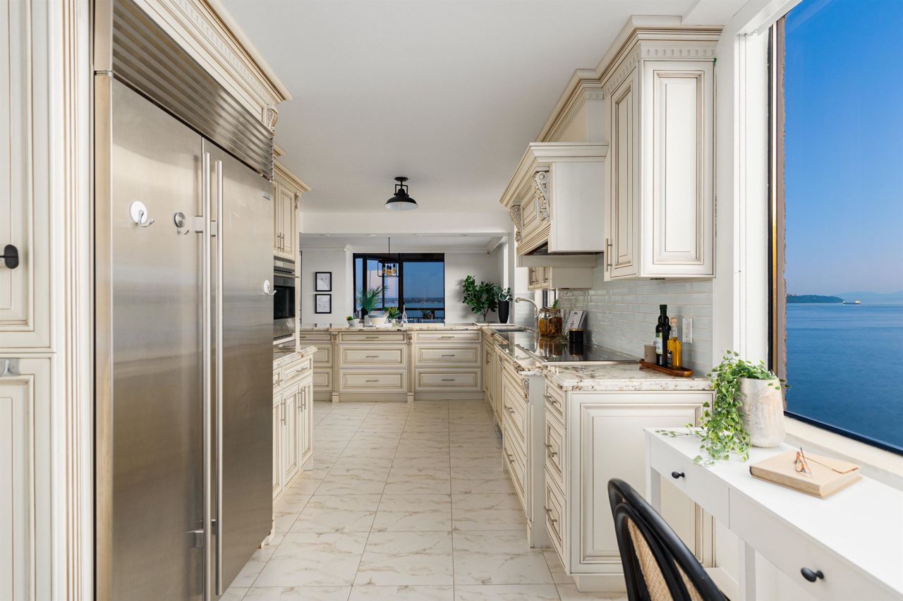 Bellevue Terrace - West Vancouver's most sought after waterfront building with ONE suite per floor residences. Enjoy sunrise to sunset from this 15th floor 3 bedroom home with unobstructed ocean & city views stretching all the way from Lions Gate Bridge, Stanley Park & UBC to Vancouver Island, Lighthouse Park and the North Shore mountains! This home has been tastefully updated with kitchen and bathroom renovations, including custom millwork with built-in cabinetry, granite countertops, Sub-Zero refrigeration and Wolf appliances. Open concept floor plan featuring spacious rooms, expansive windows, generously proportioned primary suite and a private waterfront balcony, loads of storage and a separate laundry room.