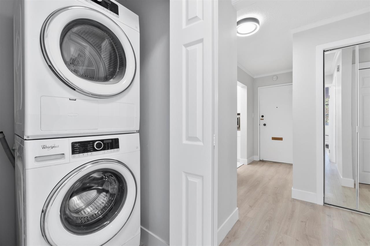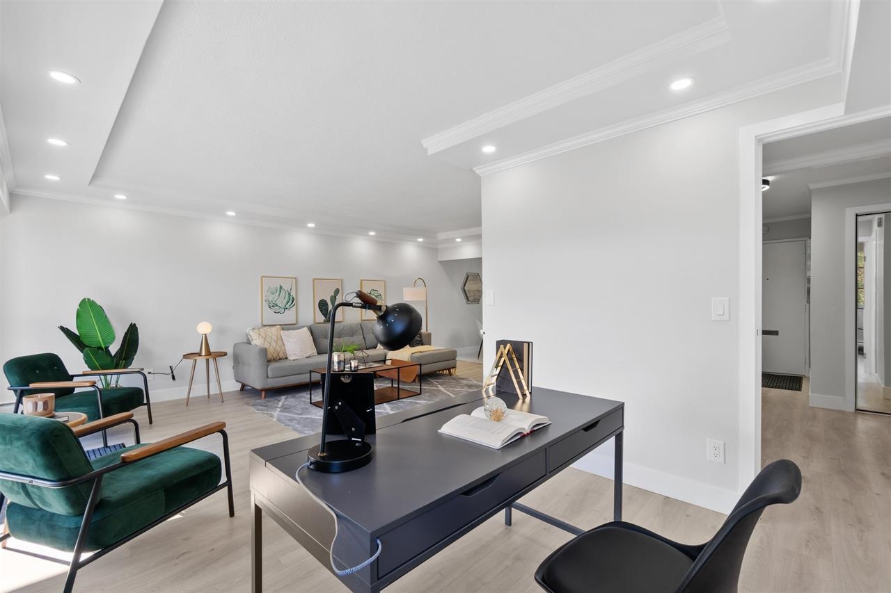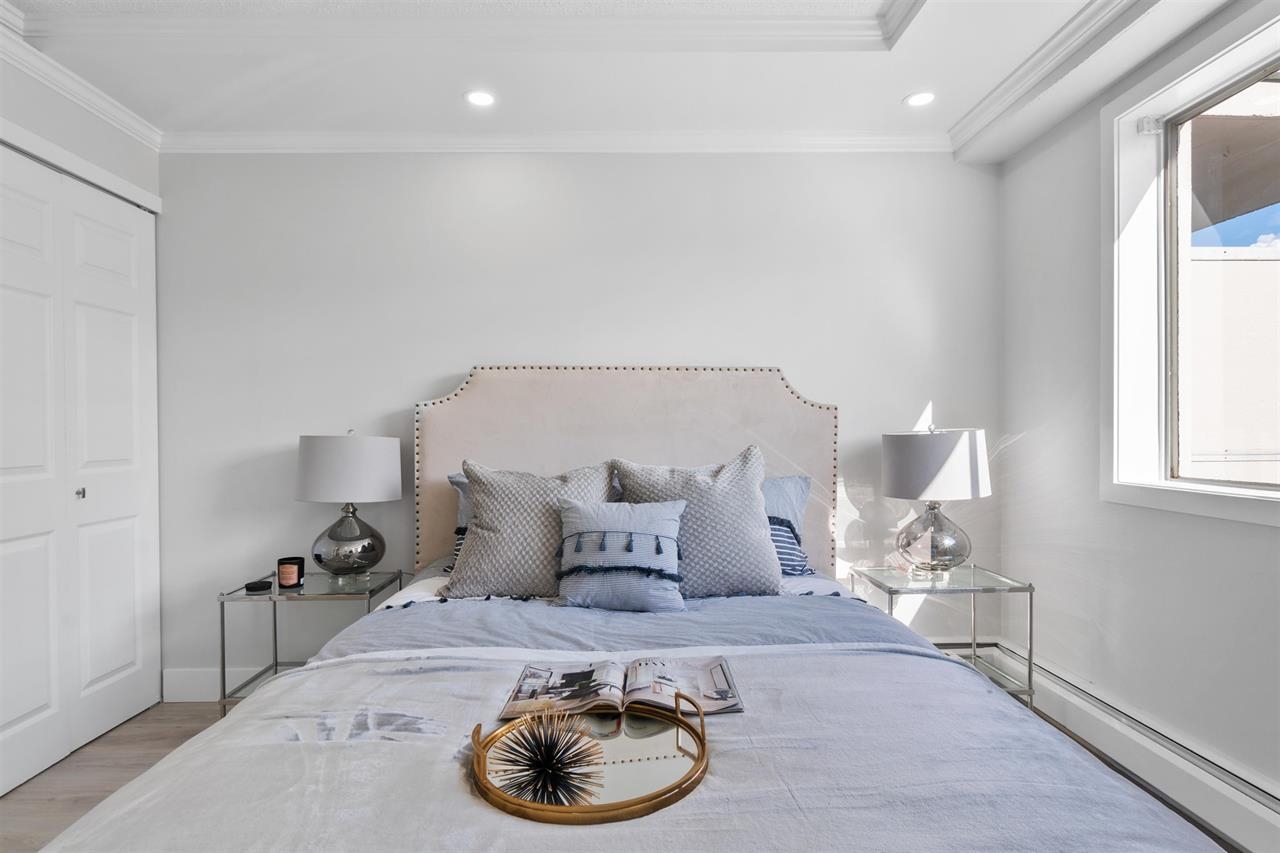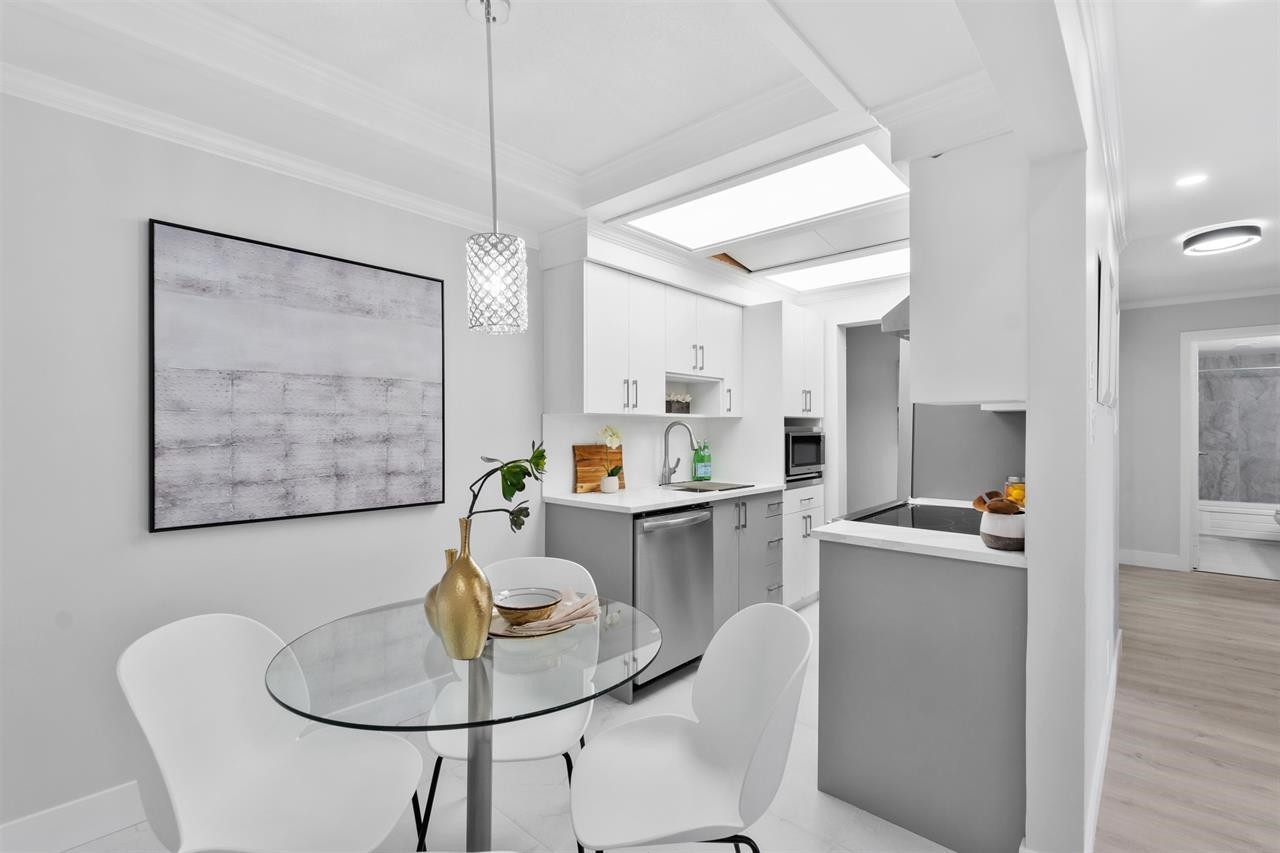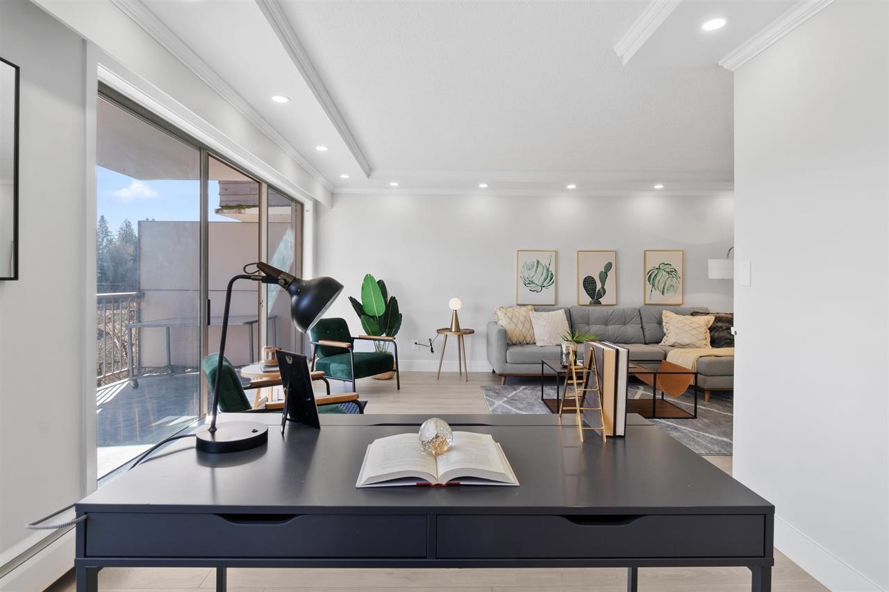 WESTCOT ELEMENTARY & SENTINEL SECONDARY SCHOOL CATCHEMENT. Concrete building & Fully renovated home features a large master bedroom with a massive den, Currently the den is using as a second bedroom. A south facing patio looking onto a beautiful view. Brand-new kitchen with stainless-steel appliances, a built-in microwave, quartz countertops. Spacious family room offers plenty of space to entertain guests. Tons of storage space in this home with 6 closets and a huge storage locker, as well as 2 parking stalls. The monthly fee including heat & hot water. This well maintained complex is nestled on 8 acres of beautifully sun drenched manicured floral garden. Enjoy the use of the clubhouse, guest suite, meeting room, 2 party rooms and swimming pool.