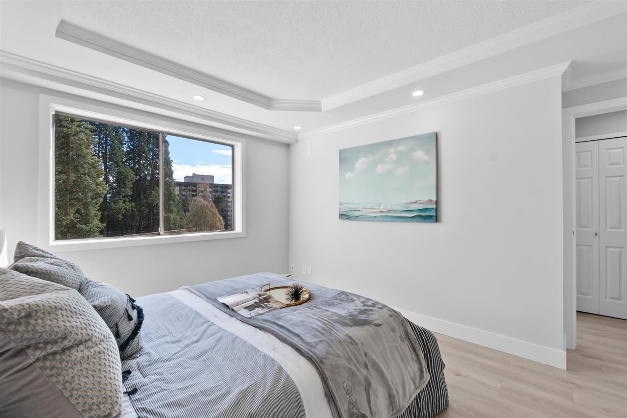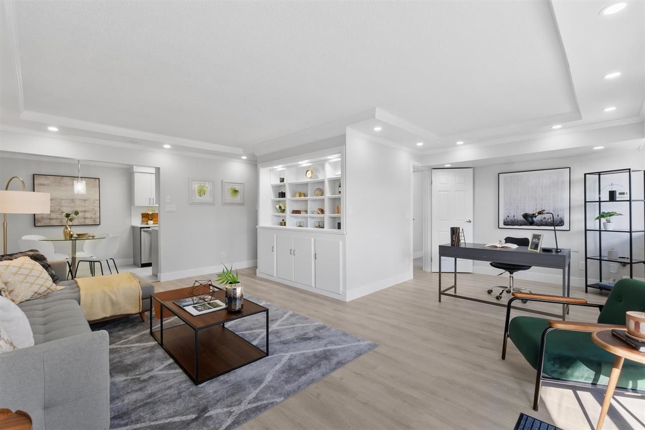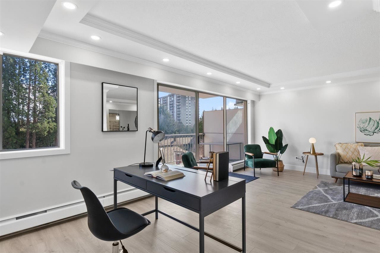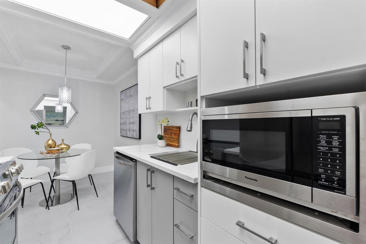 WESTCOT ELEMENTARY & SENTINEL SECONDARY SCHOOL CATCHEMENT. Concrete building & Fully renovated home features a large master bedroom with a massive den, Currently the den is using as a second bedroom. A south facing patio looking onto a beautiful view. Brand-new kitchen with stainless-steel appliances, a built-in microwave, quartz countertops. Spacious family room offers plenty of space to entertain guests. Tons of storage space in this home with 6 closets and a huge storage locker, as well as 2 parking stalls. The monthly fee including heat & hot water. This well maintained complex is nestled on 8 acres of beautifully sun drenched manicured floral garden. Enjoy the use of the clubhouse, guest suite, meeting room, 2 party rooms and swimming pool.