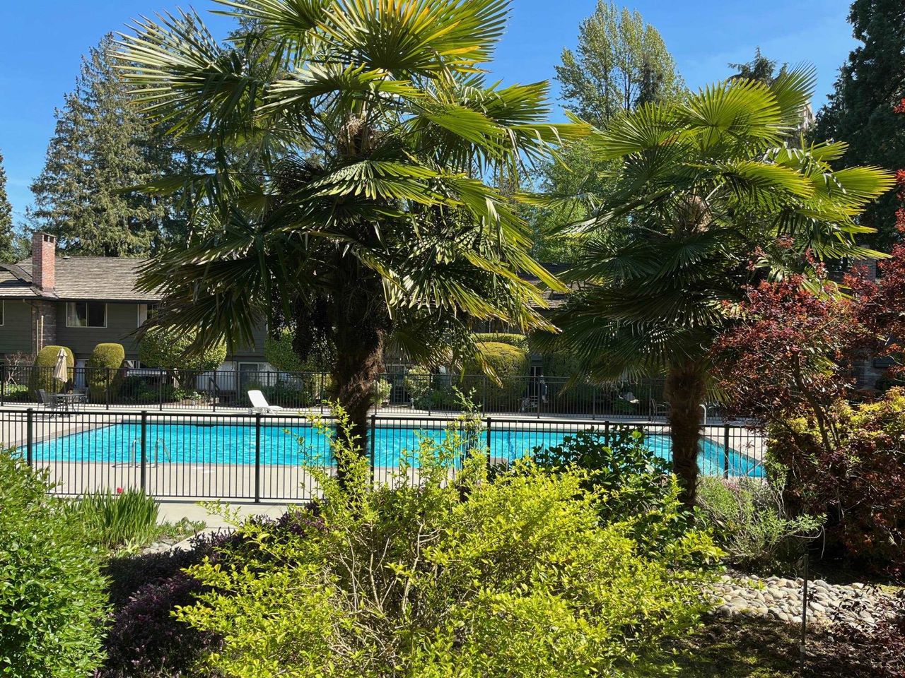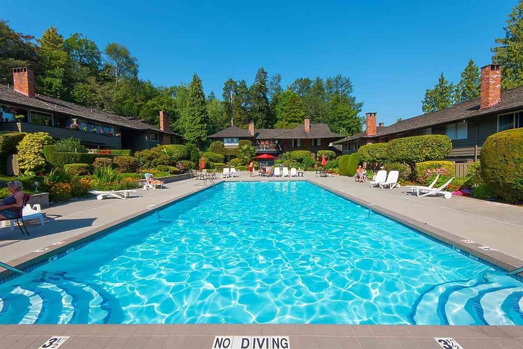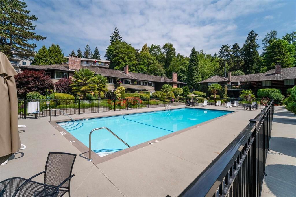 ONE BEDROOM, Deceptively Spacious & functional pied-a-terre in RESORT like setting, a perfect down sizer in wonderful West Van! Updated One Bedroom. Open Plan, newer stainless steel appliances, granite counters, gorgeous reclaimed hardwood floors, spa-like bathroom, wood burning fireplace, huge open 25' x 9'patio in a gorgeous park like setting. Heat & hot water included in very affordable maintenance fee. EV charging & a full size storage locker. Resort-style salt water pool on 8 acre garden property next to Park with tennis court, basketball court & playground. Easy walk to Capilano Pacific Trail, Ambleside Park or Park Royal shopping & restaurants. Fabulous, friendly community & lodge with awesome amenities, guest suite, meeting & entertainment rooms. Open Sept 2, 2-4pm Sept 3, 2-4 pm