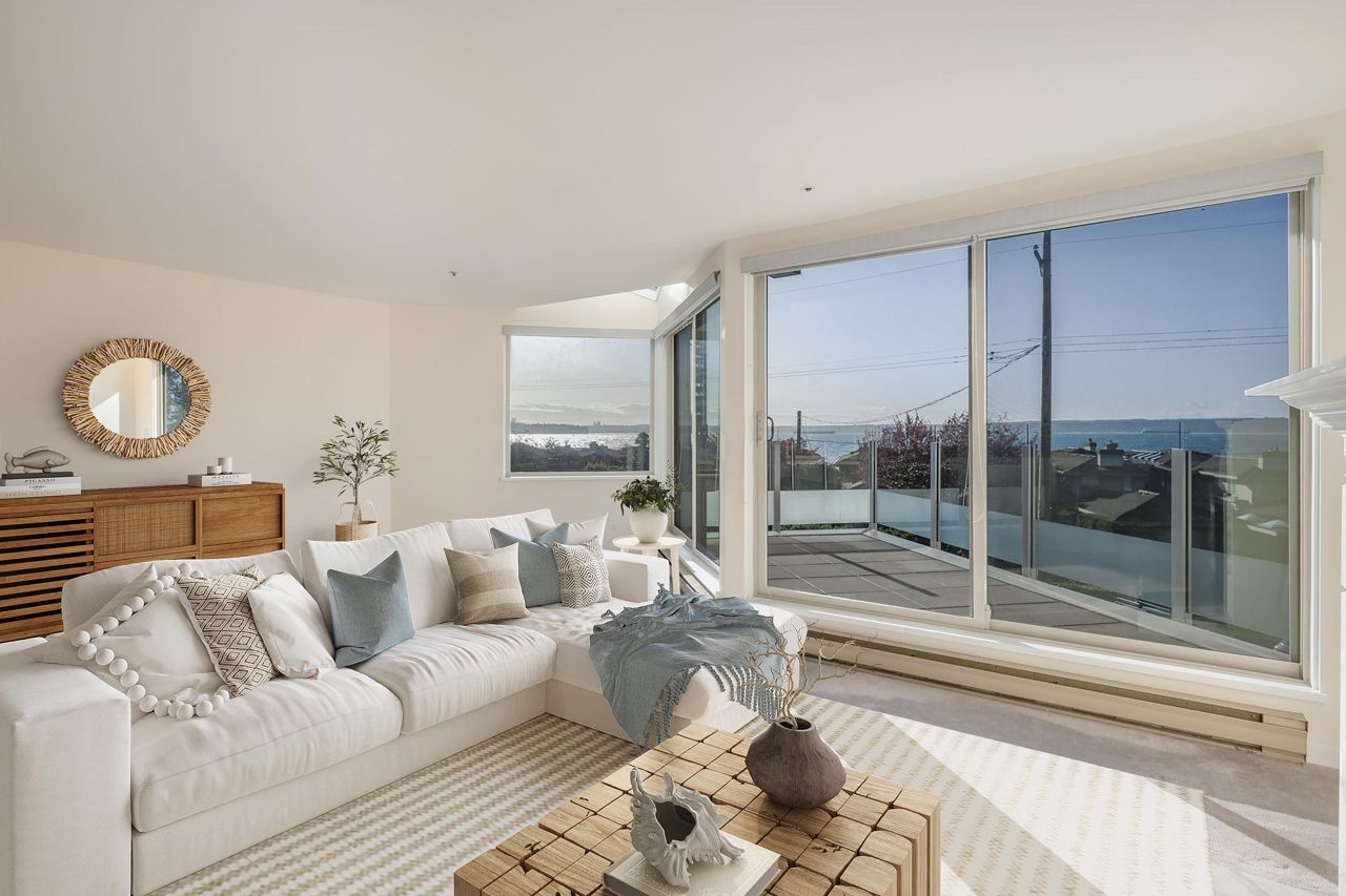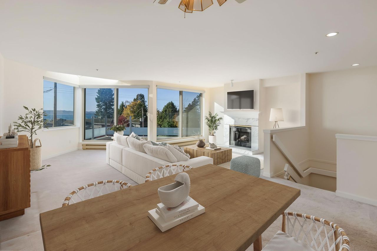 Welcome to the Bellevue Sunset! A boutique low rise building in the heart of Dundarave Village. This south-facing home features spectacular close-in Ocean views and is located just steps to the Beach, Seawall, and shops and restaurants in Dundarave Village. Exceptionally rare 2-level 2-bed 2-bath condo with 2 side-by-side parking stalls. The unit features 2 patios, gas fireplace, skylight, plenty of insuite storage and large storage locker. Very well-maintained building with a proactive strata, many updates, and $190,000+ in the Contingency Fund. Rentals & bbqs allowed. No pets. First time on the market in 21 years! Bring your designers touch and transform this once in a lifetime opportunity. Property Video: https://rb.gy/9625fx