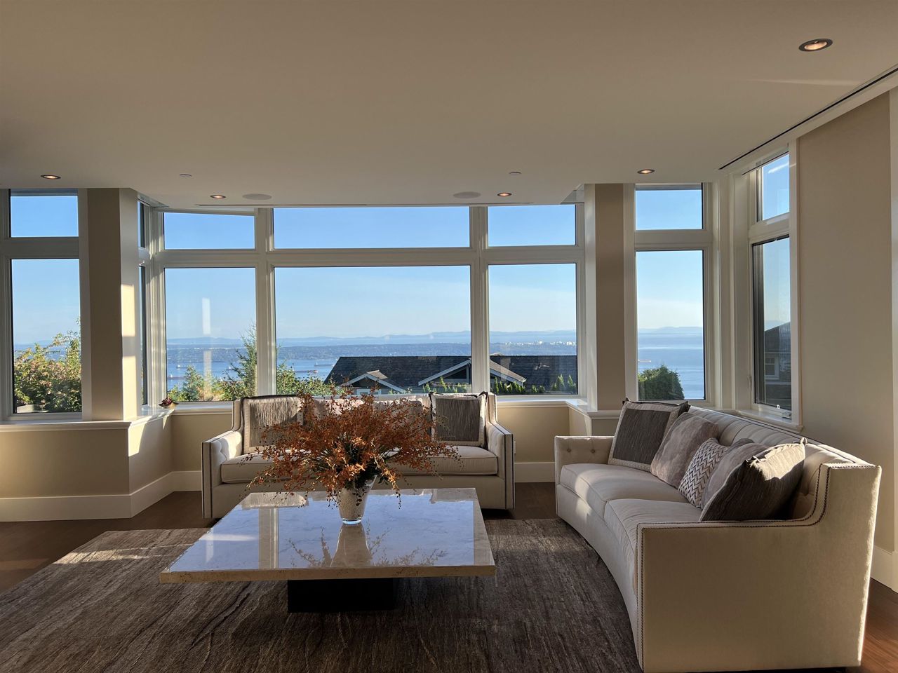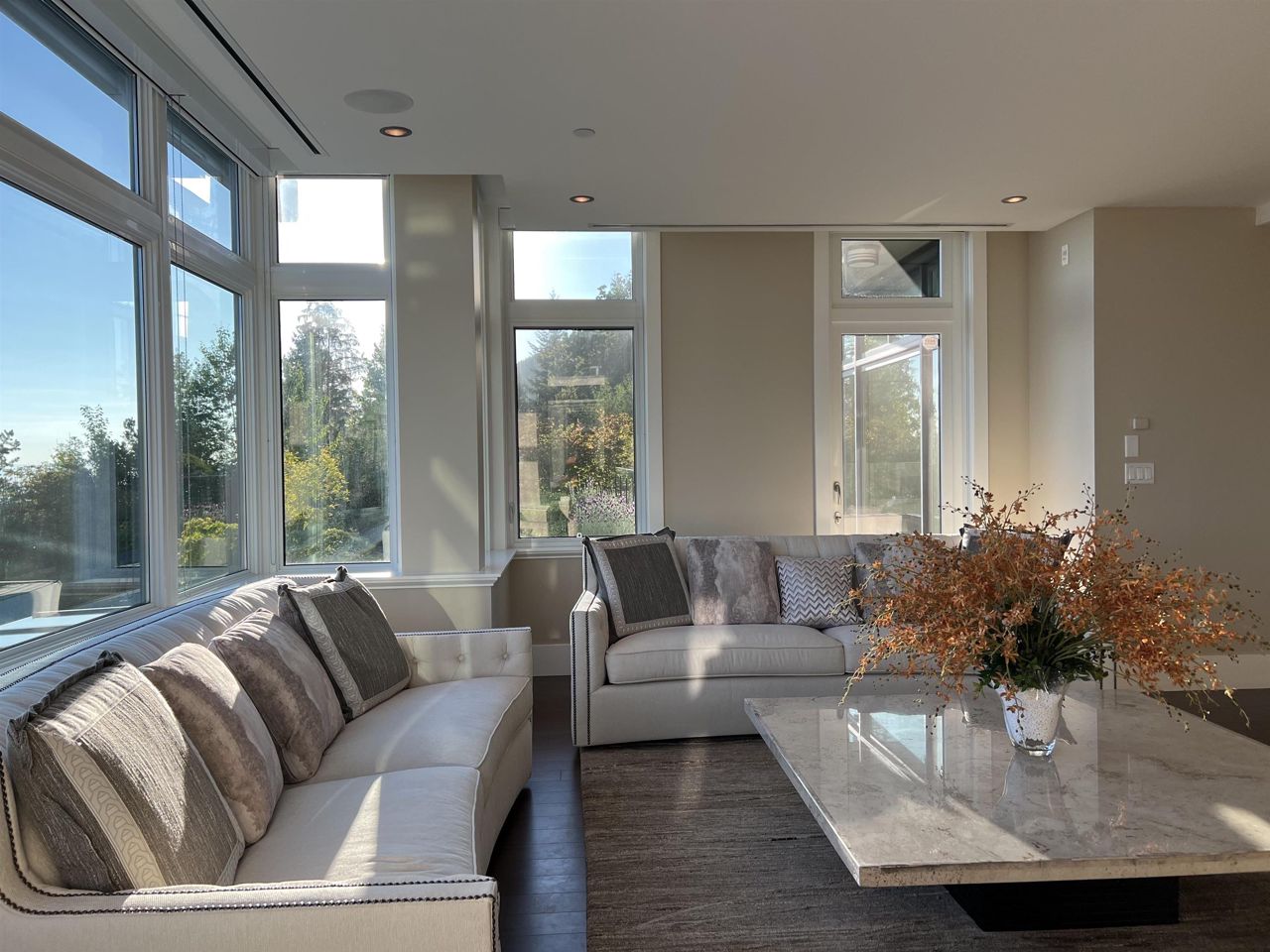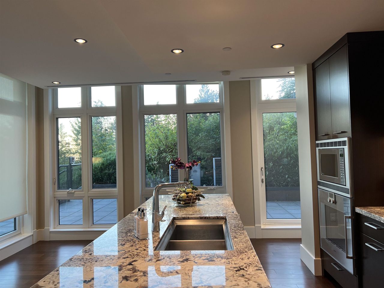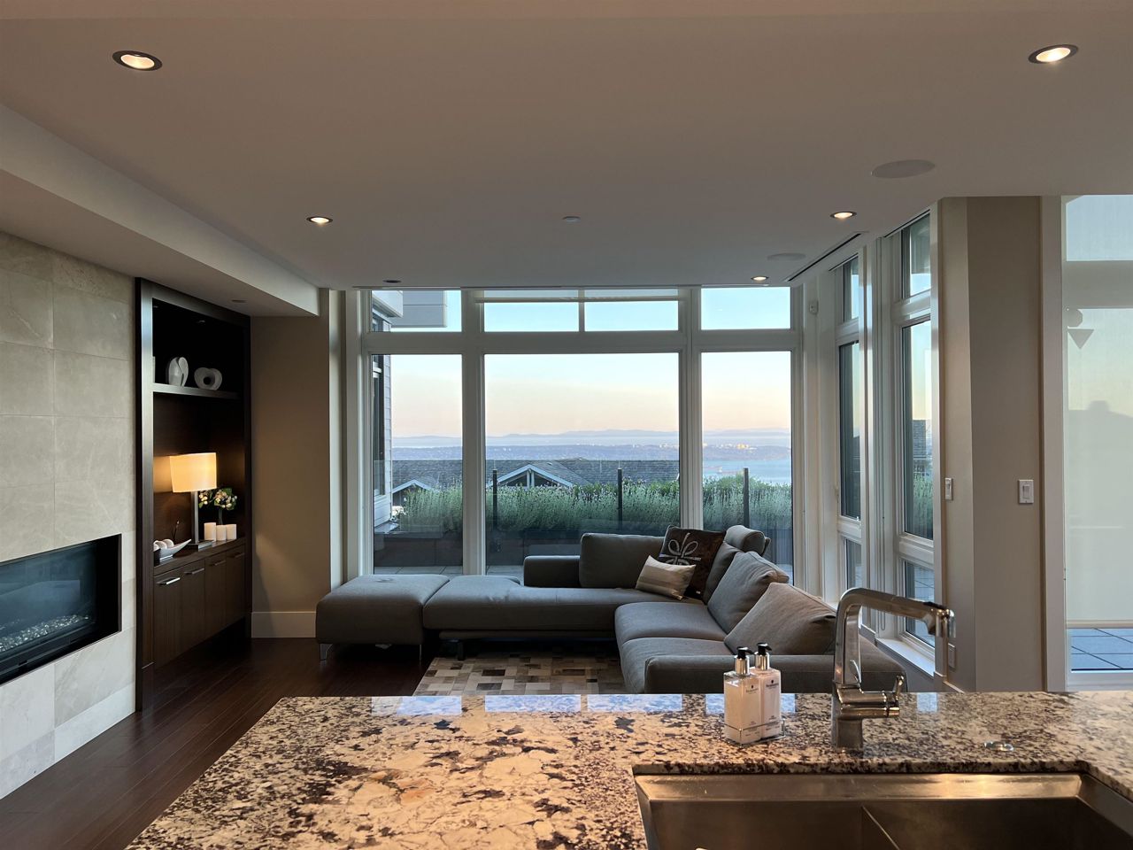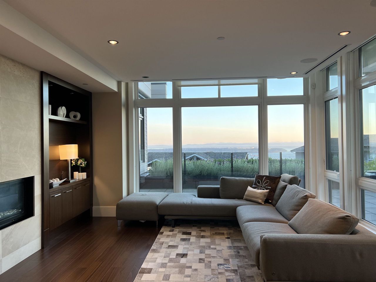 With A/C and Elevator. Very well kept by sellers! Breathtaking panorama view of ocean, bridge, & islands. A state of art masterpiece by British Pacific homes. This beautiful well-planned home offers luxury living, total 2bdrm+Den (can be 3rd bdrm but no closet)+3.5 baths: 2 big ensuite bdrms on main level, Ground level with Rec-room with half bathroom and big closet. fully equipped home, super thick & large granite countertops in open kitchen & wok kitchen. African Sapele engineering hardwood floor, wool carpet, maple cabinets, A/C, radiant heat, HRV, Elevator, security system. Natural stone external wall, gorgeous deck. Close to Mulgrave & Collingwood School. Idea for downsize/senior or who likes travelling!! or having child in private schools near by!!