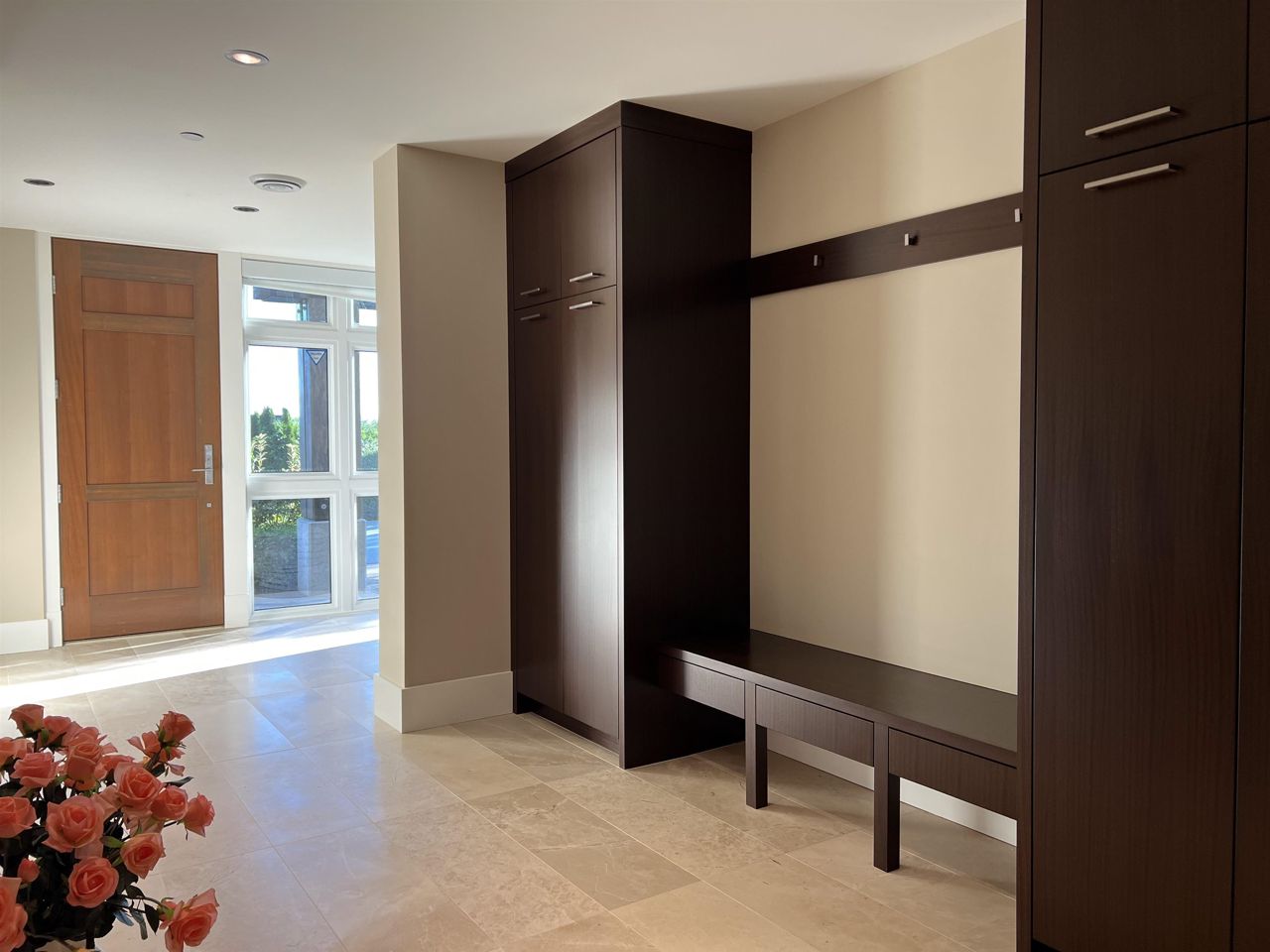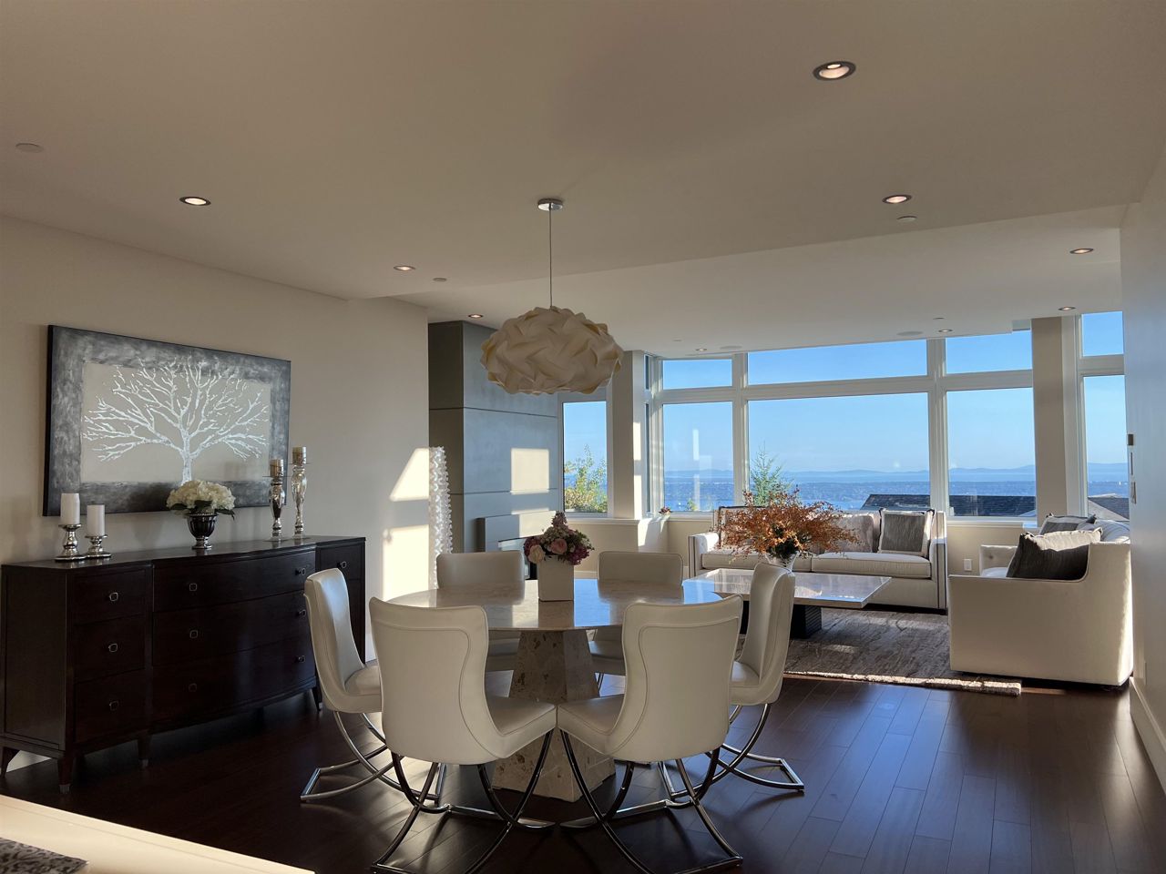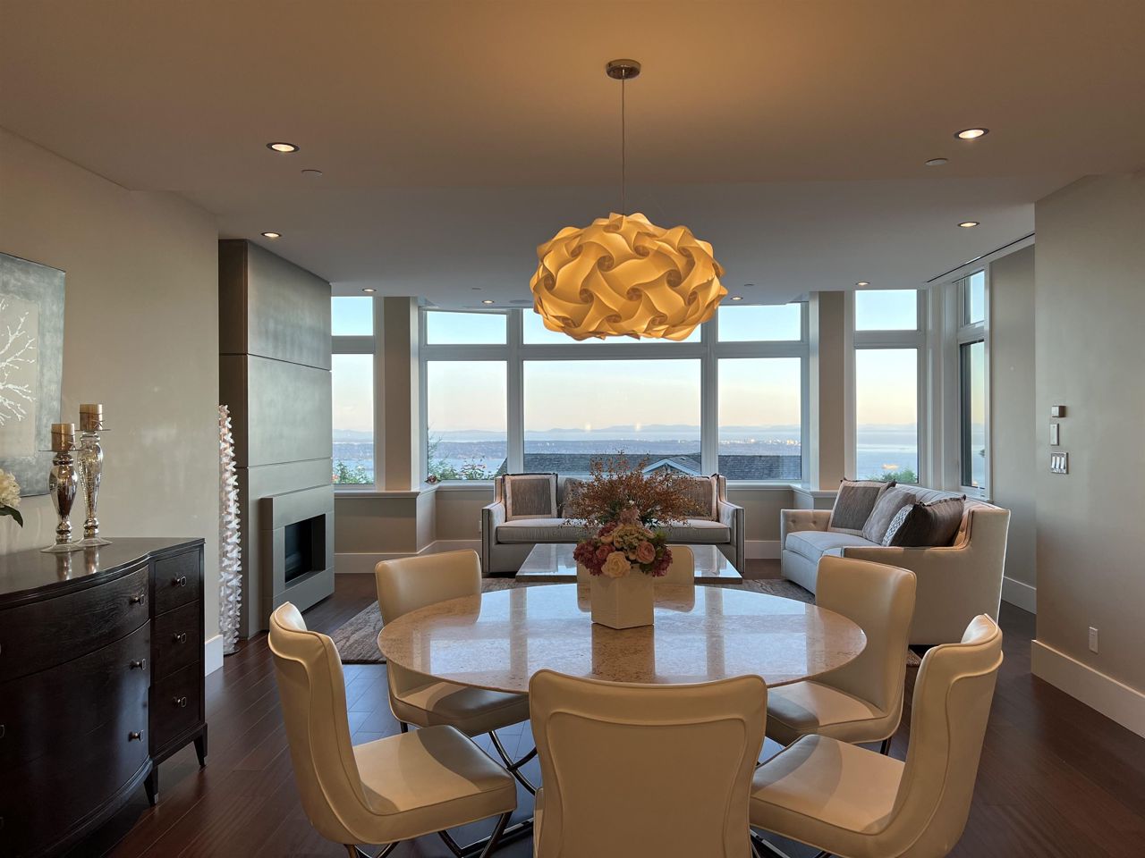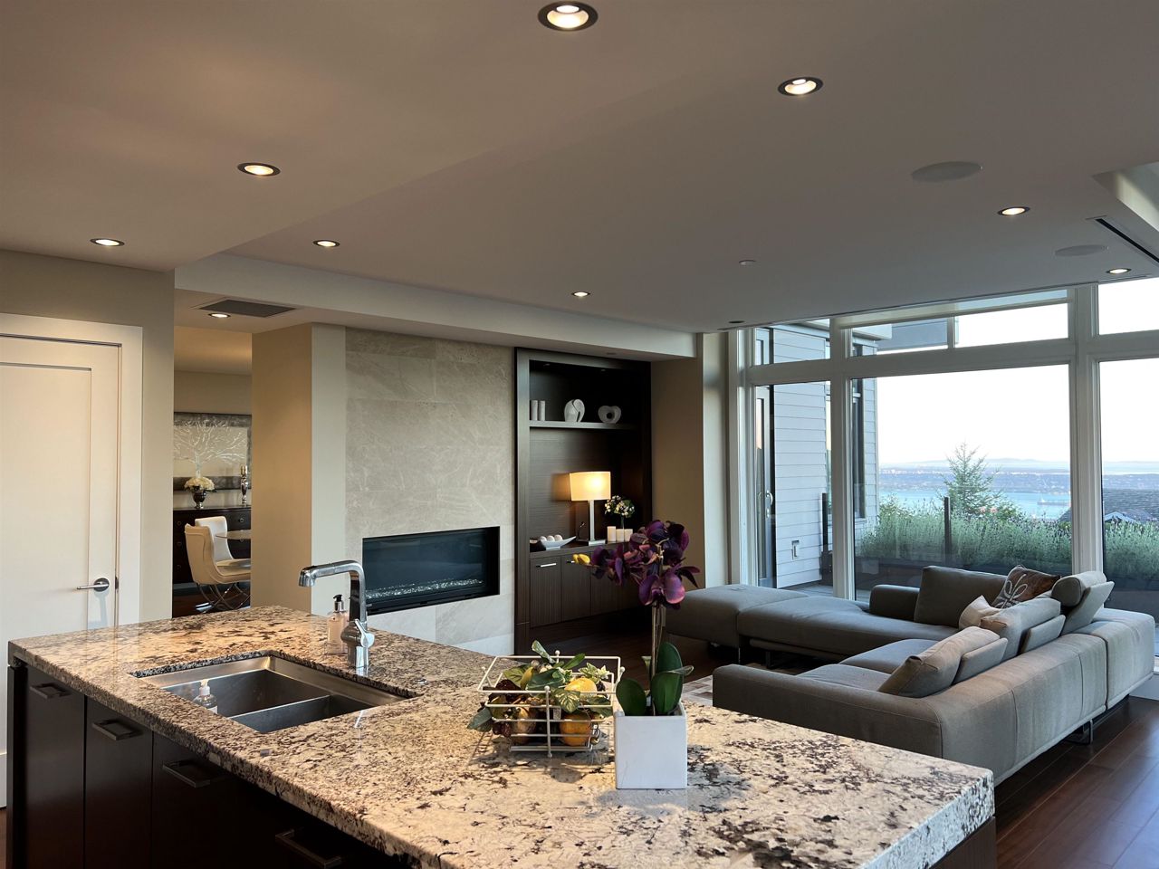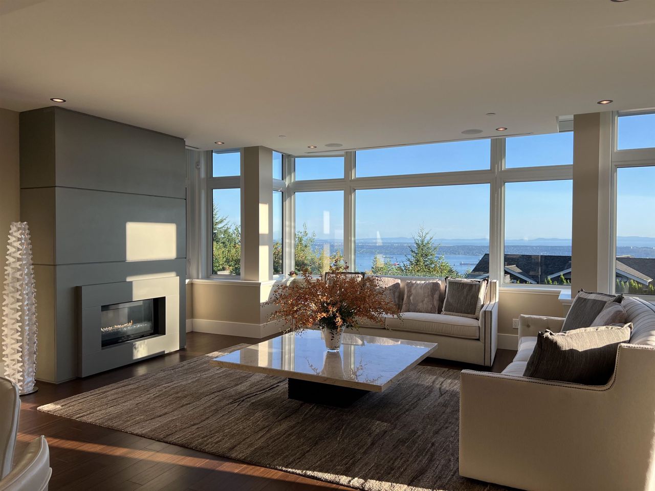 With A/C and Elevator. Very well kept by sellers! Breathtaking panorama view of ocean, bridge, & islands. A state of art masterpiece by British Pacific homes. This beautiful well-planned home offers luxury living, total 2bdrm+Den (can be 3rd bdrm but no closet)+3.5 baths: 2 big ensuite bdrms on main level, Ground level with Rec-room with half bathroom and big closet. fully equipped home, super thick & large granite countertops in open kitchen & wok kitchen. African Sapele engineering hardwood floor, wool carpet, maple cabinets, A/C, radiant heat, HRV, Elevator, security system. Natural stone external wall, gorgeous deck. Close to Mulgrave & Collingwood School. Idea for downsize/senior or who likes travelling!! or having child in private schools near by!!