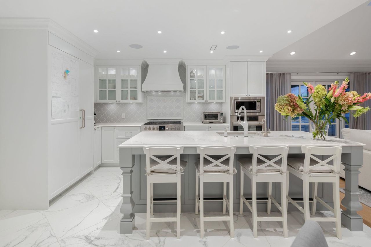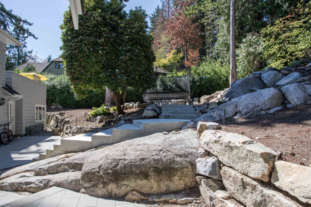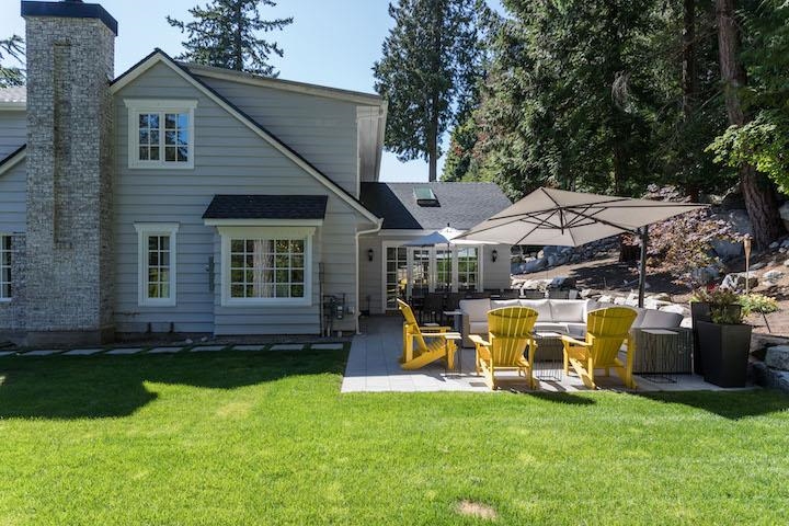 This completely reimagined cape cod style home is proudly perched on an oversized sunny lot in the heart of Caulfeild. Completely rebuilt from 2020-22 to include a grander footprint, brighter exposure, luxury finishes & extensive retaining wall work to create a flat & private space. The main floor unveils an impressive entry leading to a great room w/ gourmet kitchen & family room adorned w/ vaulted ceilings & connecting to a serene patio & yard. The layout is further enhanced by a dining & formal living room, functional mud room, rec room & guest bedroom. Upstairs features a bright office & 3 ensuited bdrms, w/ master boasting 2 WICs, ensuite & massive private deck. A level driveway, double garage, gym, pool-ready design & proximity to schools & shopping completes this masterpiece.