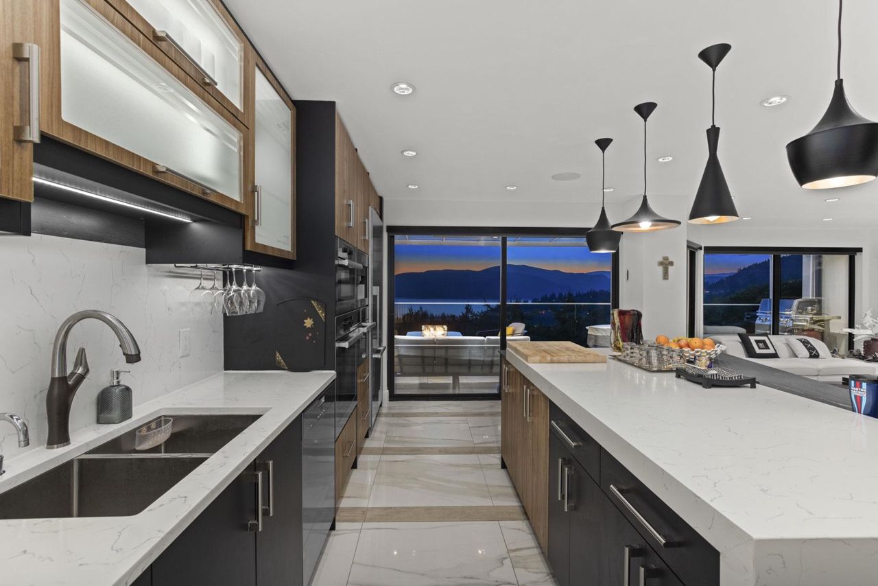Discover world-class living with premium western ocean views that grace every corner of this remarkable home! Substantially renovated in 2021, offering one of the most expansive outlooks in the area and presenting a versatile 3-bedroom and 3-bath layout. This home boasts custom cabinetry featuring LED lighting, AC, a floating staircase, rec area, and ample storage. The chef’s dream kitchen is equipped with Miele appliances and stone countertops, which elevates the cooking experience to new heights. Additional features include an EV-ready 2-car garage and walking distance to Caulfeild Shopping Centre & Rockridge School. Embrace the coastal lifestyle with a home that offers an incredible blend of sophistication and innovation.