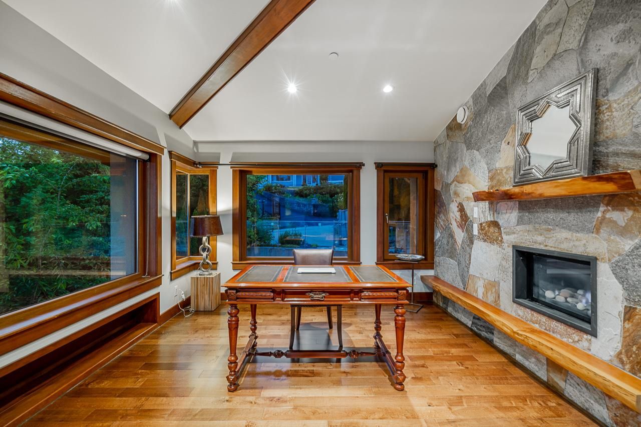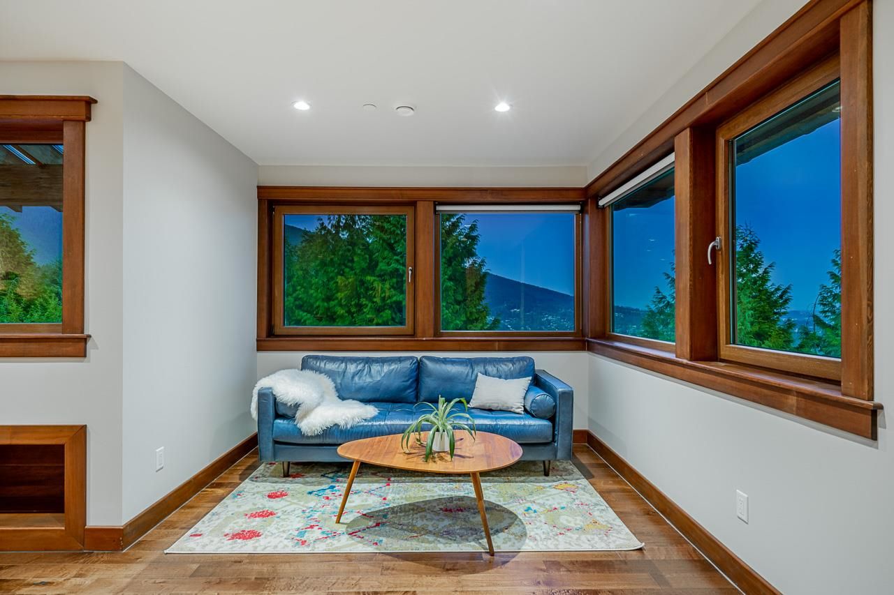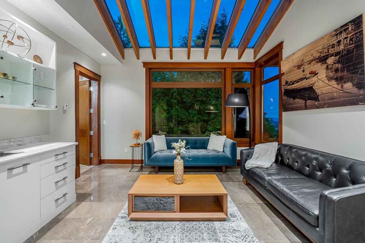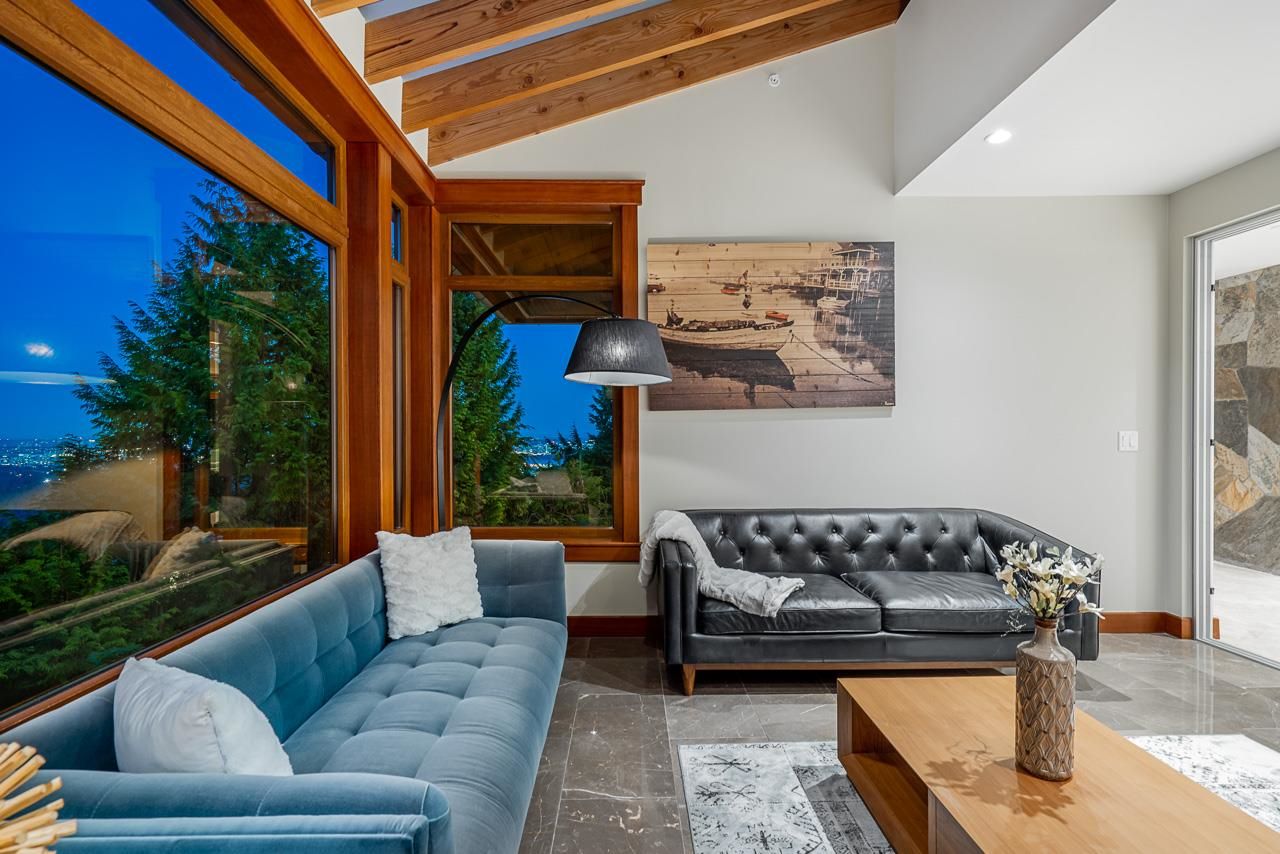 Enjoy breathtaking views and tranquility from this stunning custom-built luxury home that epitomizes the soul of Westcoast Contemporary. Once you step into the grand foyer entrance you find yourself immersed in the finest finishings from extensive custom millwork, elegant hardwood flooring, stone accents and ample windows & skylights. Featuring 4 spacious beds (all en-suited), 5 baths, a gourmet chef's kitchen w/ top grade appliances and a large private patio area, this home simply has it all! Situated on an estate sized lot and close to Collingwood School, Capilano Golf & Country Club, the location is simply fantastic. Truly one the of the most unique and inspiring homes on the market and needs to be seen to be fully appreciated!