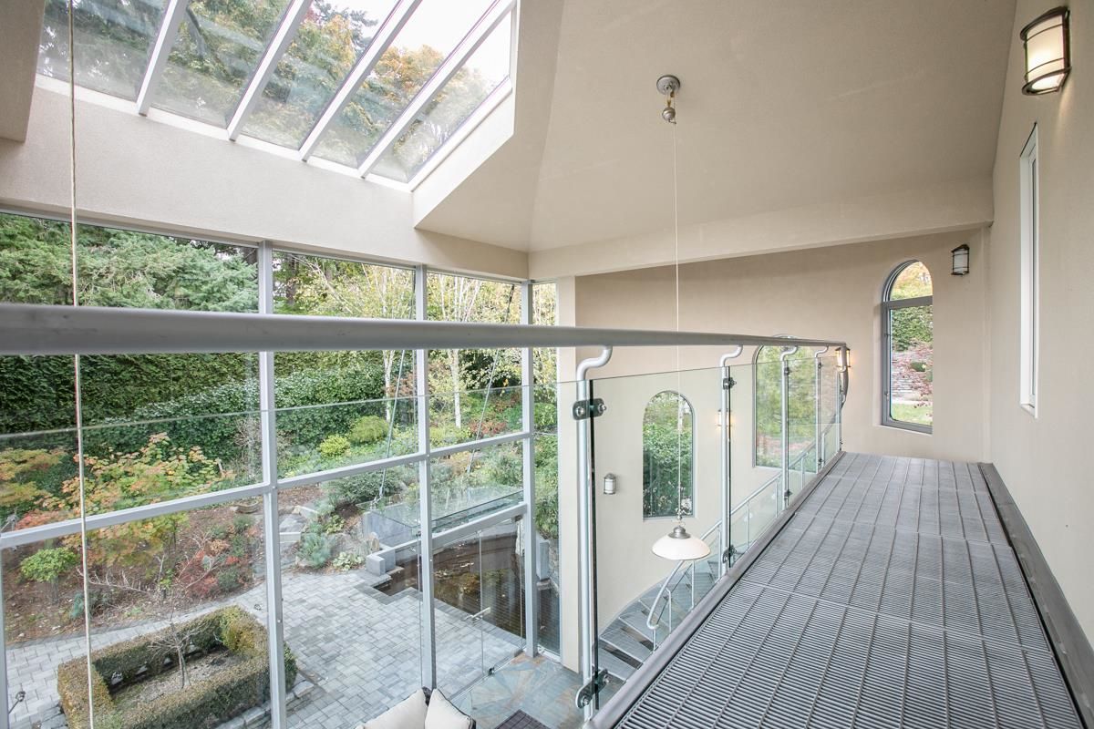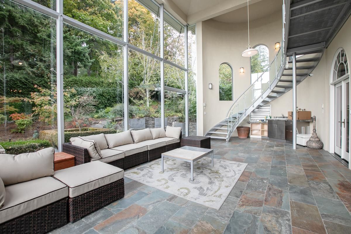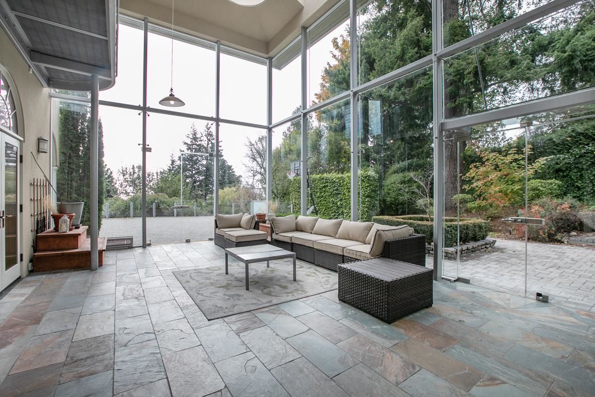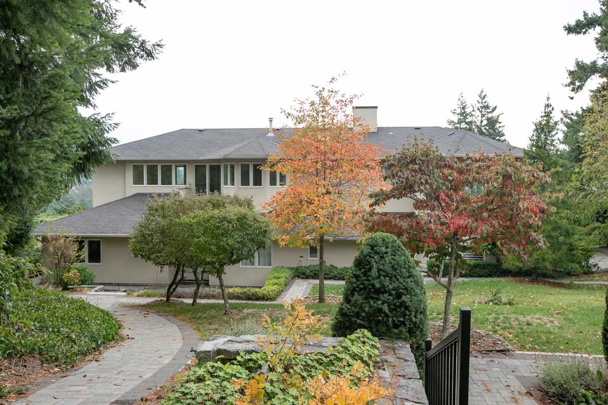 Stroll past the tranquil waterfall pond,through the 2-storey glass entry atrium w/sweeping steel staircase to the stunning custom 2005 Mediterranean Villa w/SOUTH facing Ocean views.The dream home you've been waiting for!Architecturally designed concrete, steel &wood construction. 3 storey elevator,6 bedrooms,5-bathrooms,basement Rec room & 2nd kitchenette.Practical for growing & extended families,perfect for entertaining.The grande foyer extends to the formal living & dining rooms&through the arched pillar walkway to the flat South facing Great Lawn. Master Suite rotunda sitting-room w/180 breathtaking Ocean&Mnt views.19,602sq.ft. lot, private English gardens w/waterfalls, ponds & flat country lane driveway w/2.5 car concrete garage.Steps to Larson Beach,Gleneagles Rec, School&Golf course