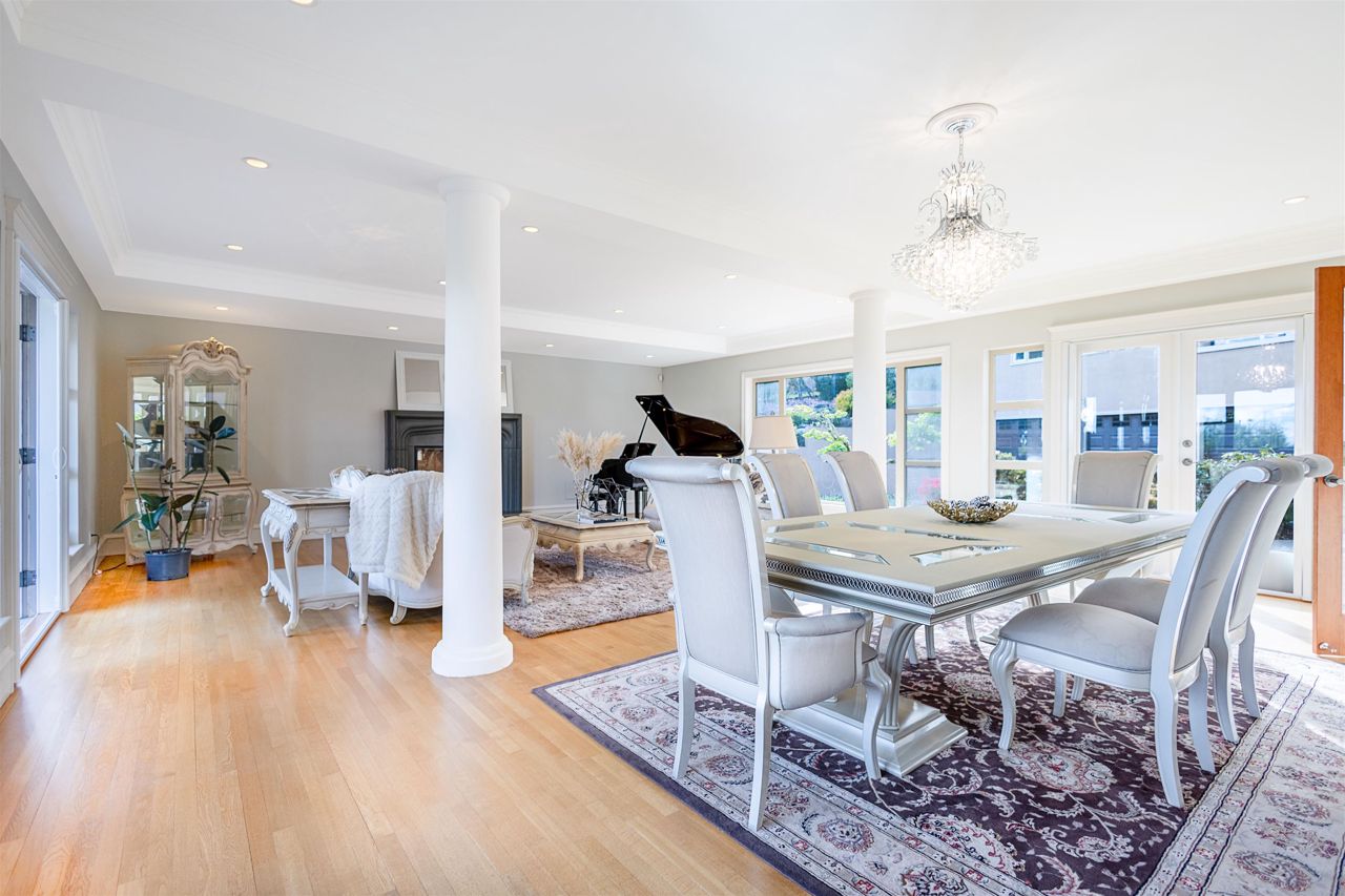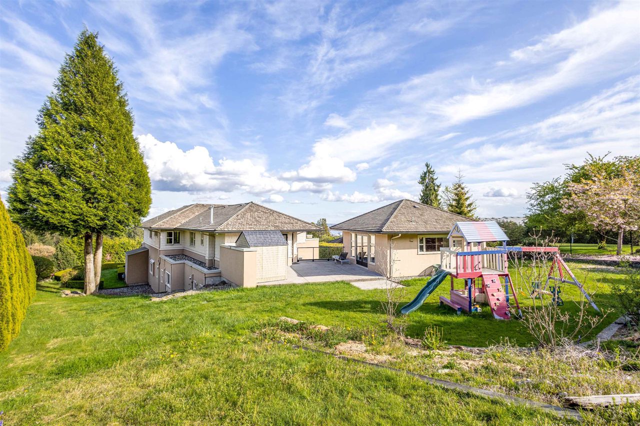 A classic family oriented craftsman home with views of Vancouver Harbour and Mt Baker, located in the prestigious British Properties' golden mile close schools. Offered below assessment value, this property is perfect for large families to move-in and grow with the house, then develop it into a luxury mansion. Enter the house via double vaulted ceiling foyer, to the right is an open plan kitchen, entertaining area and wok kitchen. The formal living/dining room to the left of the entrance has white oak floors and an oversized fireplace to entertain in style. Downstairs is a natural wine cellar that flows into a crawl space that spans the entire house. Upstairs offers a RARE 5 king-sized ensuited bedroom layout with views. Bonus coach house/in-law suite with view on the upper garden leve