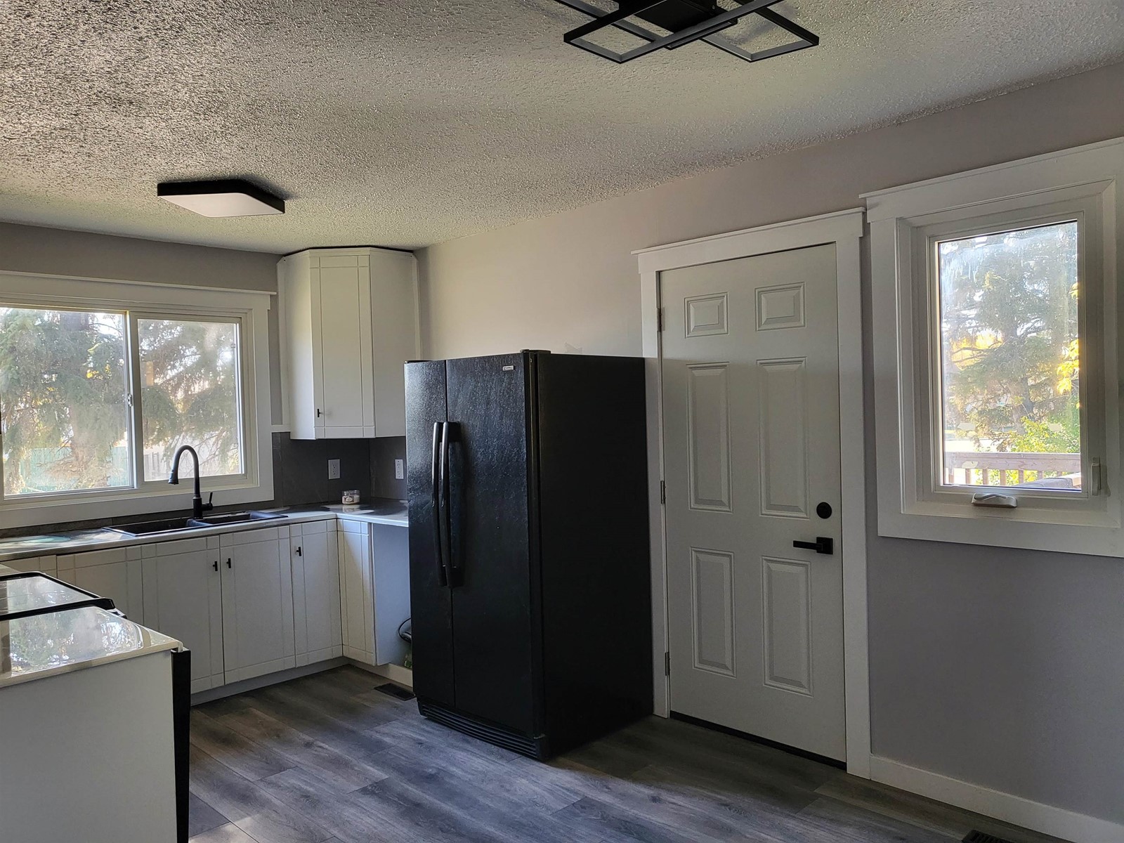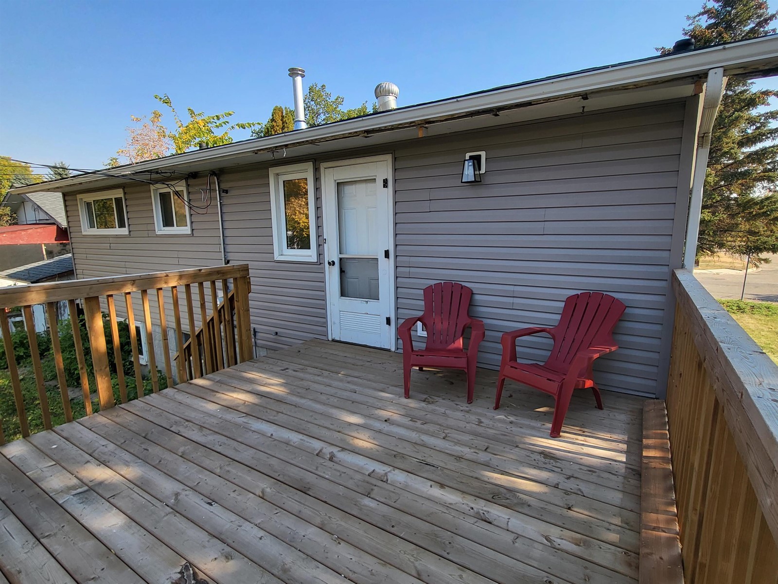 This home has been totally redone. New Custom wood cupboards, New flooring throughout, New bathrooms, New back deck, New Shingles, The main floor has a Living room, two good size bedrooms, with a full bathroom and eat in kitchen, the kitchen opens to the nice new south facing deck. where you will find a good size single detached garage. In the basement you will find another large living room, a 3 piece bathroom and one more bedroom with large basement windows the basement has a lot of natural light. The corner lot makes a lot of street parking as well as a concrete driveway in front of the garage. (id:22211)