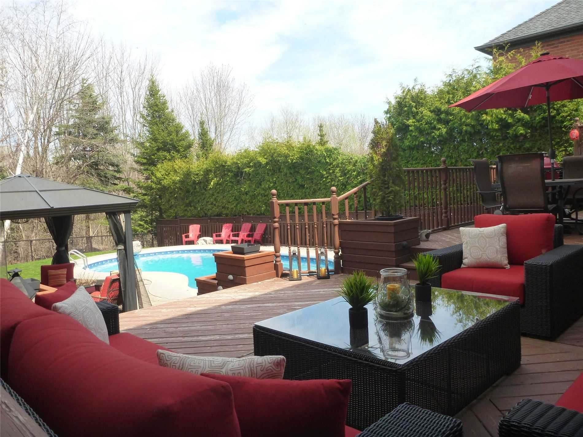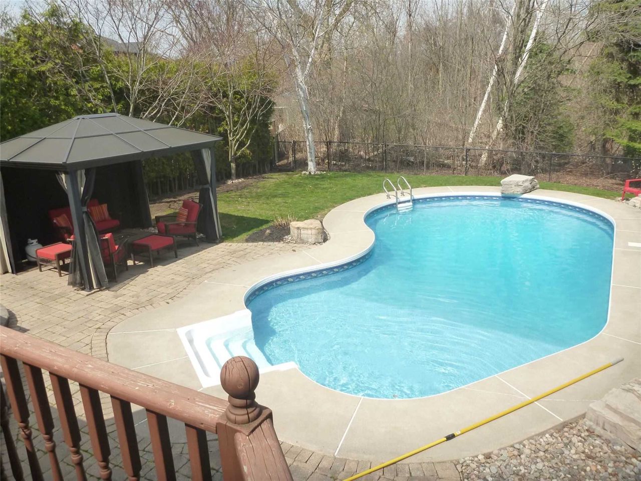 Magnificent Sun-Filled Home Is An Absolute Show Stopper! Bright, Spacious & Instantly Appealing! Fabulous Open Concept Showcases A Stunning Great-Room W/Soaring Ceilings & Cathedral "Wall Of Windows" That Provides Exposure For Maximum Natural Brightness & Overlooks Tranquil Yard. This Striking Home Boasts Many Personal Retreats! Stairs Lead To Both Mid-And-Upper Levels, Accented With Beautifully Stained Oak Railings. Large Media Loft Retains An Open Airy Feel With View Of Great-Room & Yard. Designer Kitchen W/Island Breakfast Bar, Ceramics & Back Splash. A Stunning Showpiece Of Many Fine Features! Rich Hardwood Floors, Fireplace, Coffered Dinning Rm Ceiling, Pots & Generous Living Space! W/O To Oversized Deck & Breathtaking Massive Backyard Oasis! Private & Inviting! Huge 150Ft Ravine Yard Backs Onto Forest & Creek - Offers Rare Neighbor Privacy! Secluded Grounds Showcase Spa-Like Living With Inground Pool Complete W/Deck And Lounge Area - Entertainers Delight! A Rare Offering - Wow!Fridge, Stove, Washer, Dryer, Dishwasher, Gas, Burner And Equipment. Central Air Conditioning, Window Coverings, Electric Light Fixtures, Electric Garage Door Opener And Remote.