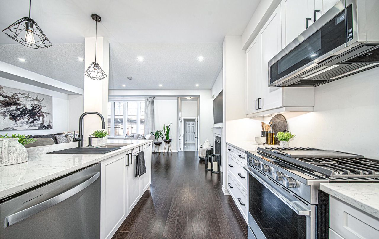 Stunning 2 year old tribute 2 Storey home in a great family subdivision of West Whitby seconds to 412 , 407 and 401 and all amenities. One of the best tribute layouts in area a must see for yourself. Approx. 2200 sqft executive layout with soaring 9 foot ceiling, formal living room and dining room with feature wall, fabulous open concept kitchen overlooking family room with fireplace, 2 pc powder room, laundry area and garage access on main. Primary bedroom on the second level with 4 pc ensuite and walk-in closet. Outside features child-safe fenced yard, double car garage, 3rd car parking space plus a full unfinished basement. Fully upgraded, elegantly decorated with modern finishes. Stunning upgraded kitchen with extended cupboards, quartz counters, valance lighting, upgraded appliances, upgraded flooring, hardware, light fixtures, too many improvements to list. A must see you will not be disappointed.Upgraded Hardwood floors throughout
