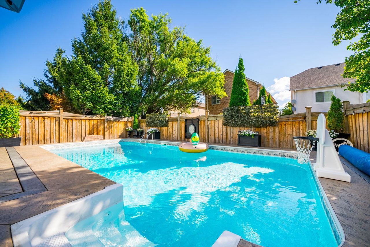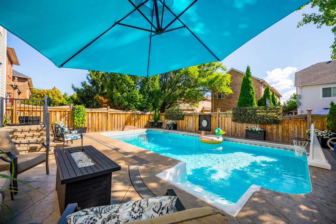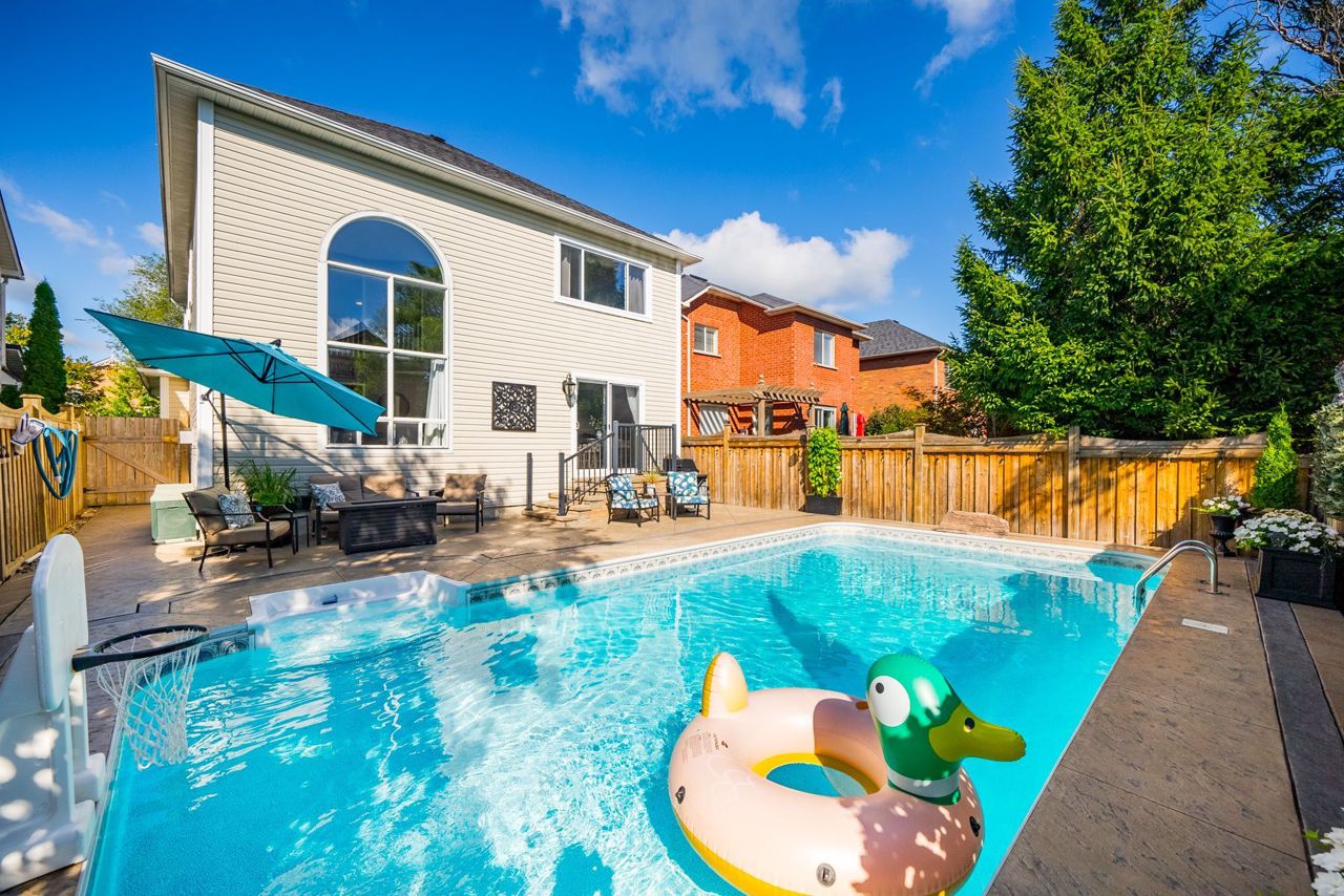What a gorgeous home!Approx. 2,900 square feet. Open concept kitchen and family room, upgraded hardwood flooring on 1st & 2nd floors, columns separating family room. See for yourself. Check pics and virtual tour! Beautiful 18x36 in-ground pool, stamped concrete surrounding the pool. Spacious master bedroom with upgraded 5pc ensuite and 3 other large bedrooms. Short walk to Brooklin High School. This home has been meticulously cared for throughout the years of ownership. Check other property information for a list of showing times and all upgrades. Included all appliances, window coverings, all electric light fixtures, and pool equipment.
