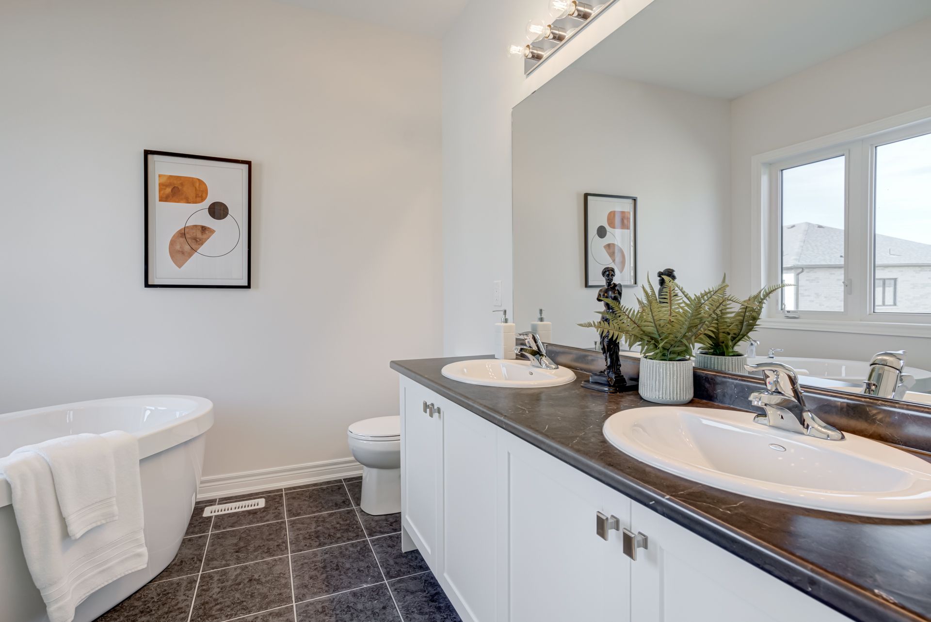 Brand new and never lived in, check out this detached, 2-storey home awaiting your personal touch! Enter the open concept main floor with living and dining room combo, featuring a cozy fireplace for your enjoyment and a powder room for your convenience. Bright and spacious eat-in kitchen with a breakfast bar overlooking the living room, and a walk out to the backyard. Make your way upstairs to find 4 bedrooms, two more bathrooms and a laundry room with its own sink! Primary bedroom features a walk in closet and a gorgeous 5 piece ensuite with a dreamy soaker tub, glass shower and double sinks! Upgraded hardwood floors throughout the home! Transform the unfinished basement to a recreation room, home gym or in law suite - the possibilities are endless! This home is fitted with outdoor pot lights, has a 1 car garage and 1 car private driveway.