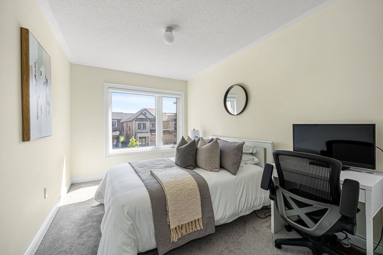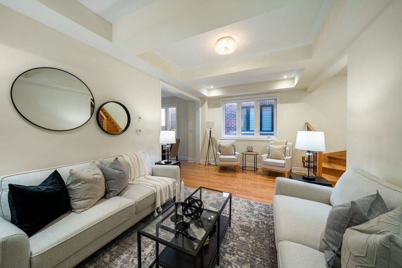 Welcome To The Prestigious Queens Commons Community! This Vogue Home Masterpiece Blends Classic Charm & Contemporary Luxury. Designed For Entertaining, The Open-Concept Living & Dining Areas Flow Effortlessly, With Coffered Ceilings Extending Into The Family Room To Entertain Friends. The Gourmet Kitchen Features A Built-In Microwave, Breakfast Bar & Spacious Breakfast Area. Hardwood Floors Grace The Main Level. Upstairs, The 4 Bedrooms Include A Primary Suite With A Luxurious 4-Piece Ensuite & Oasis Tub. Large Windows Fill The Home With Natural Light. The Finished Basement, Suitable For An In-Law Suite, Includes A 3-Piece Bath, Bedroom, Seating Area, Wet Bar & Ample Storage. Perfect For Growing A Family, This Home Is Ideally Located Near Hwy 401, 412, A New Public School (Opening 2026) & Shopping Plazas.