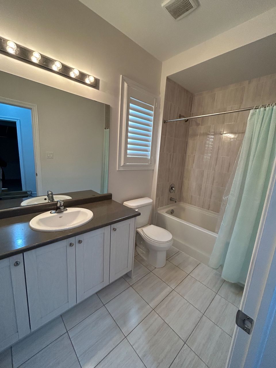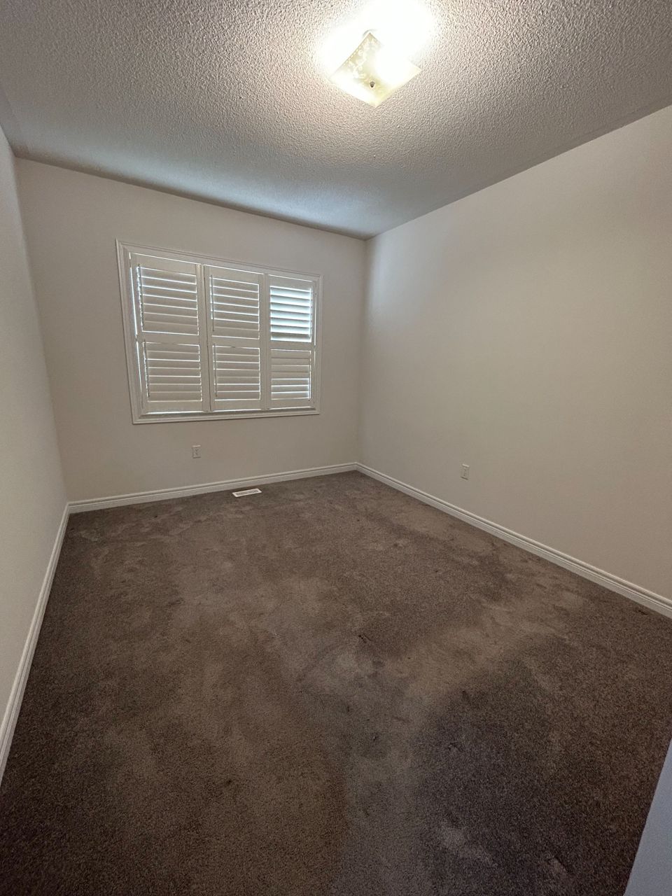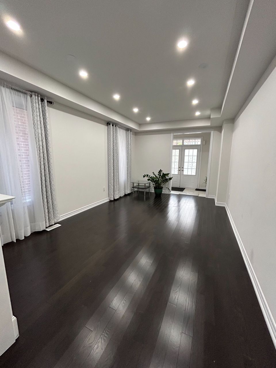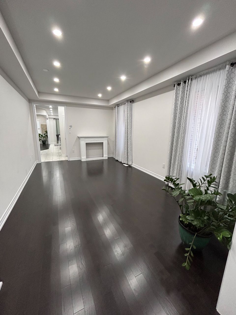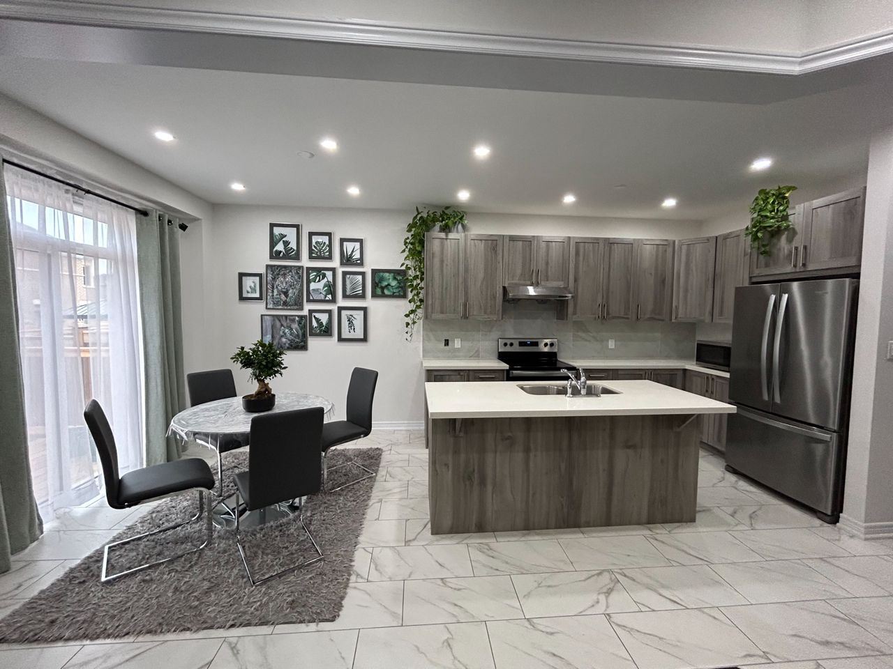 WELL KEPT 4 BEDROOM HOME (NO BASEMENT) IN A WELCOMING FAMILY-ORIENTED NEIGHBOURHOOD. IT'S LESS THAN 5 YRS OLD. LOT'S OF POT LIGHTS IN THE MAIN LEVEL. HARDWOOD THROUGHOUT FIRST FLOOR AND 2ND FLOOR HALLWAY AND STAIRS. PORCELAIN TILES IN KITCHEN AND BREAKFAST AREA. 4 PIECE ENSUITE IN THE MASTER BEDROOM. NO SIDEWALK 9FT CEILING THROUGHOUT. DOUBLE DOOR FRONT ENTRANCE! GRANITE COUNTERTOP. ELECTRICAL FIREPLACE. LAUNDRY RM ON 2ND FL FOR CONVENIENCE. LARGE W/I CLOSET IN THE MASTER BEDRM. BRAND NEW BEAUTIFUL/SPACIOUS DECK. LARGE WINDOWS THROUGHOUT FOR TONS OF NATURAL LIGHT. CONVENIENTLY LOCATED, MINS TO STORES, RESTAURANTS, SCHOOLS, HWY 401 AND 412 AND MANY MORE... NO SMOKING AND NO PETS, PLEASE!FRIDGE, STOVE, RANGE HOOD, DISHWASHER, WASHER & DRYER, MICROWAVE. 2 PARKINGS ON THE DRIVEWAY & 1 PARKING IN THE GARAGE (LANDLORD HAS FEW ITEMS STORED IN THE GARAGE TO BE KEPT THERE)