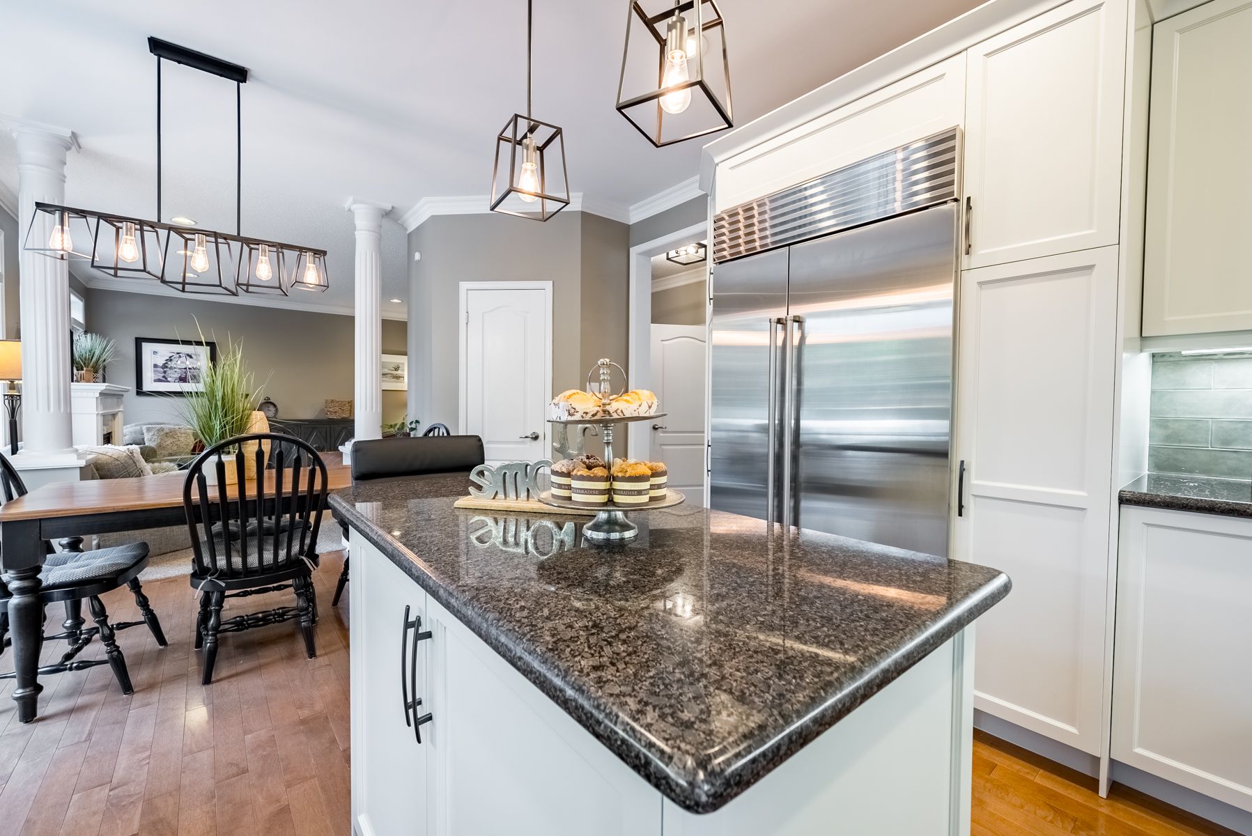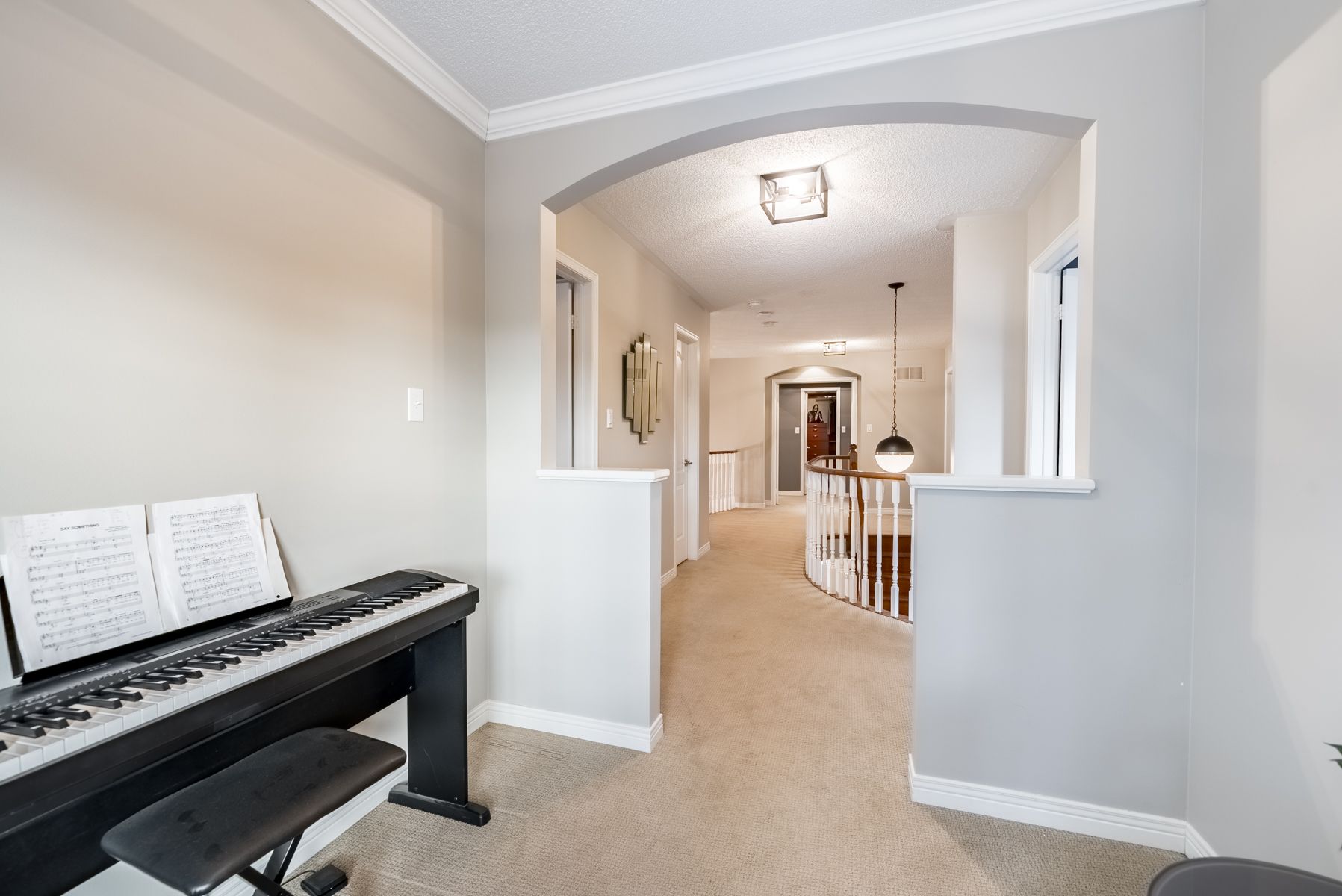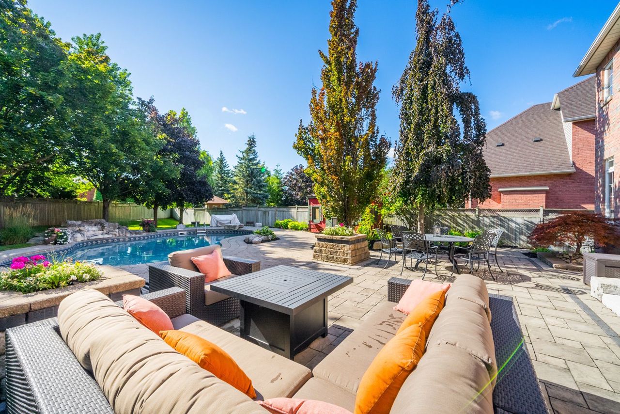 One-of-a-kind 4 bdrm, 5 bath executive Queen's Common family home! Incredible 202ft premium lot w/bkyrd oasis complete w/IG saltwater pool, interlock patio, lrg shed & lush manicured gardens. Monarch Homes 'Hazelwood' model offers an impressive open concept main flr plan featuring extensive hrdwd flrs incl staircase, crown moulding, pot lights & more! Designed w/entertaining in mind in the formal liv rm & dining rm w/soaring cathedral ceiling & shared 2-sided gas f/p. Gourmet kit offers granite counters, w/i pantry, bksplsh, island w/brkfst bar, s/s appls & brkfst area w/walk-out to the patio & pool! Spacious family rm w/cozy gas f/p & bkyrd views. Room to grow w/fully fin bsmt ('19) w/gym & lrg rec rm w/kitchenette, custom built-ins, elec f/p, 2pc bath & ample storage space! Upstairs offers 4 generous bdrms, all with ensuites & great closet space! Upper nook w/walk-out to a relaxing balcony o/l the front gardens - perfect place to enjoy your morning coffee! This home has it all!!!Roof '14, furnace '11, central air '23. Main flr sunken laundry rm - 2.55x1.93 w/quartz counter, sink, closet & garage access. 2nd flr nook - 2.43x2.33 w/crown moulding. Luxury finishes & offering over 3,194 sqft + the fully fin bsmt!