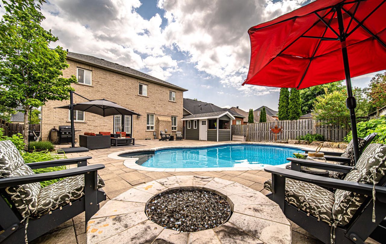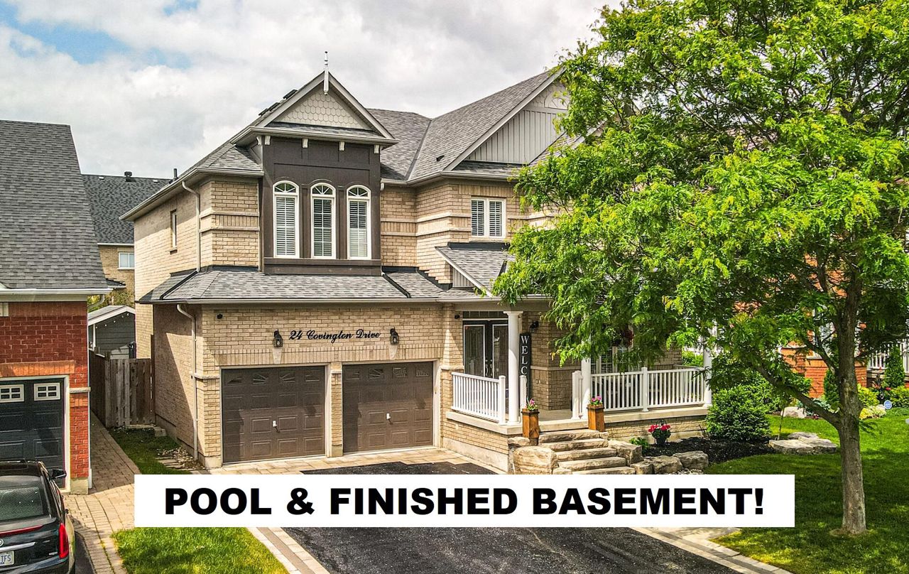5 Bedroom all brick family home offers approx. 4,500 sq ft of living space. With separate side entrance. With a fully finished basement, this home shows an exercise area, rec room, entertainment space plus additional bedrooms, 3 PC bathroom and so much more. Situated on a large 53ft lot w/ravine views from the front & the entertainer's summer oasis in the back, complete with pool house, gas firepit & 16x32 inground salt water pool. A spacious main floor plan features soaring 9 foot ceilings & hardwood throughout, home office, separate living & dining room plus oversized kitchen open to family room w/gas fireplace. The primary bedroom features a fully renovated 4PC Ensuite & walk-in closet with cabinetry. The additional 4 bedrooms all boast Jack & Jill bathrooms. There is no shortage of space in this house, bring the whole family to enjoy it all. Parking for 6 cars on one of the most desirable streets in Brooklin. This is the home you have been waiting for! 40 year shingles 2017**OFFERS ANYTIME** Walk to highly rated schools, splash pad & parks, walking trails & ravine at your doorstep, golf courses, restaurants, shopping, library, community centre & much more! Minutes from 407/412 for an easy commute to the GTA.