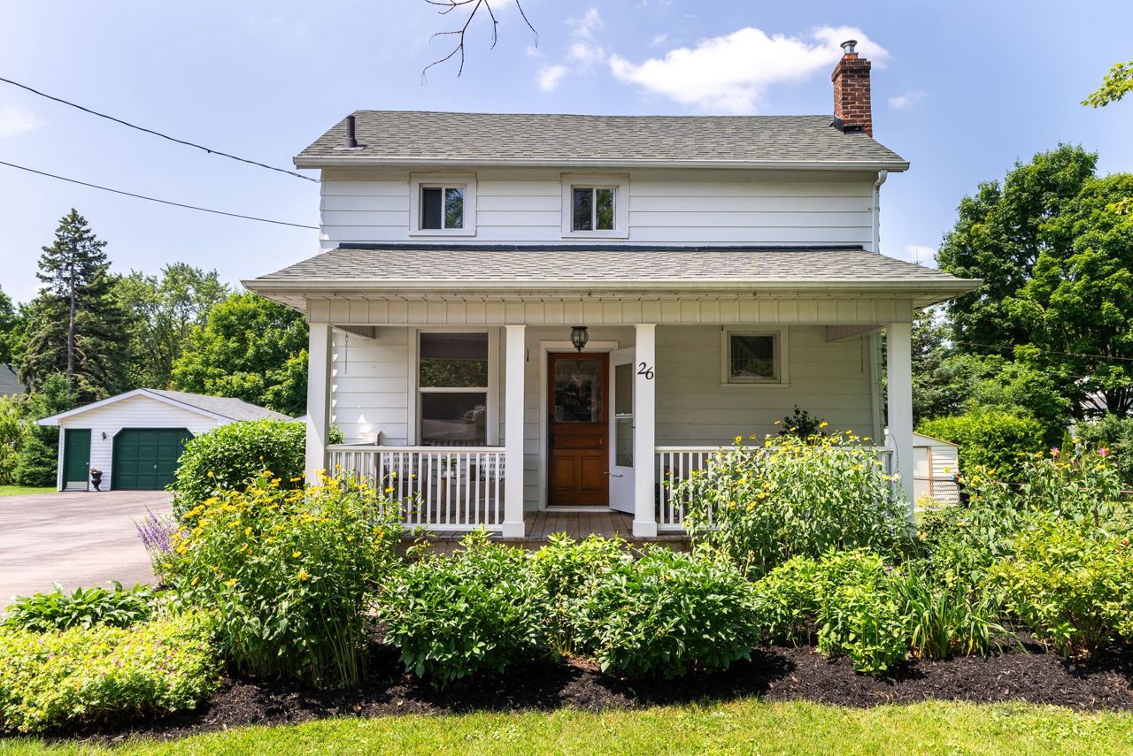 Welcome to 26 Queen Street, a charming century home nestled on one of Brooklin's most coveted streets in the heart of town! This cottage-like home exudes warmth and character. Featuring a large, shaded front porch, you can spend your days relaxing and enjoying the tranquil surroundings. The property is surrounded in perennial gardens, adding a touch of natural beauty. The main floor offers an open concept living and dining space, perfectly suited for family meals and entertaining. The grand, high ceilings on the main floor create an airy living space with old world charm. In addition, the property features an oversized 521 sq ft garage space. Whether you're a hobbyist or a contractor, this additional space offers endless possibilities. It's a perfect workshop or storage area, allowing you to pursue your passions or accommodate your professional needs. With its picturesque setting and timeless appeal, this home is ready to welcome you to a life of comfort and charm.Gas Furnace (2021), Roof (2015), Windows (2014), Garage (1990), 100 AMP Breakers