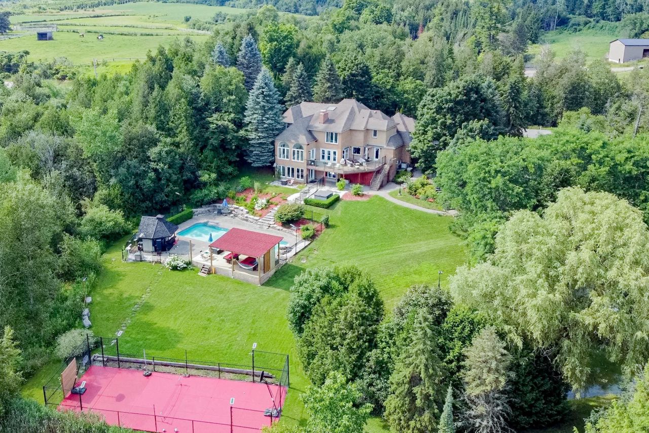 This Beautiful Luxurious Estate Home With Resort Style Living Is A Timeless Masterpiece Situated On A 10-Acre Private Oasis, Nestled In The Ashburn Area. Amenities & Activities Abound. Boasting A Picturesque & Panoramic View Of Tranquil Waters... Featuring Spring-Fed Stocked Pond With A Dock, In-Ground Saltwater Pool With Cabana, Sports Court, Stream, Professionally Landscaped Grounds, Manicured Walking Trails, ATV Man-Made Trails and Bridges, Resort Style Cabana, Cigar Rm, Theatre, Sauna, Rec Rm & Gym & Much More. The Layout Of This Home Is Perfect For Both Family Living & Entertaining Friends, Indoors & Out. Country living nestled in the Oak Ridges Moraine yet only mins to transits, hwy 407 for commuters, downtown Brooklin shops!Includes: Theatre, Sauna, Cigar Rm, Gym & Rec Rm, Mudroom, Inground 50' Salt Water Pool, Pool House, Sports Crt, Resort Style Cabana, Theatre Rm, 2 Outdoor Sheds, Large Office/5th B/rm, Hot Tub.