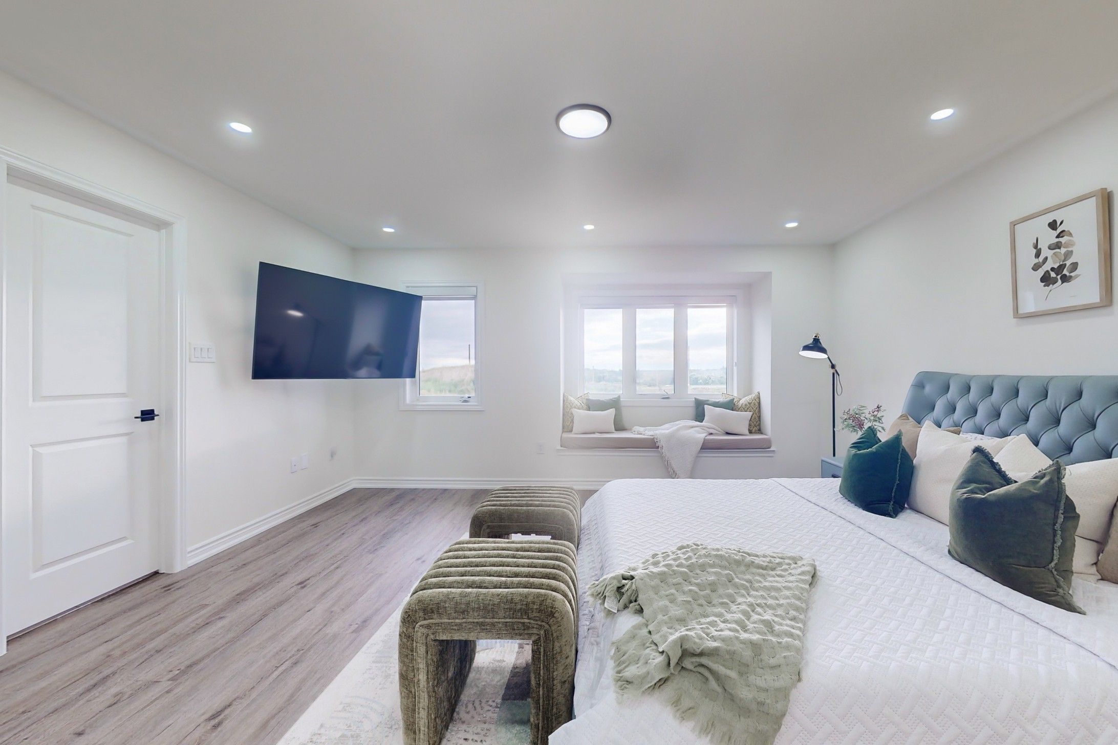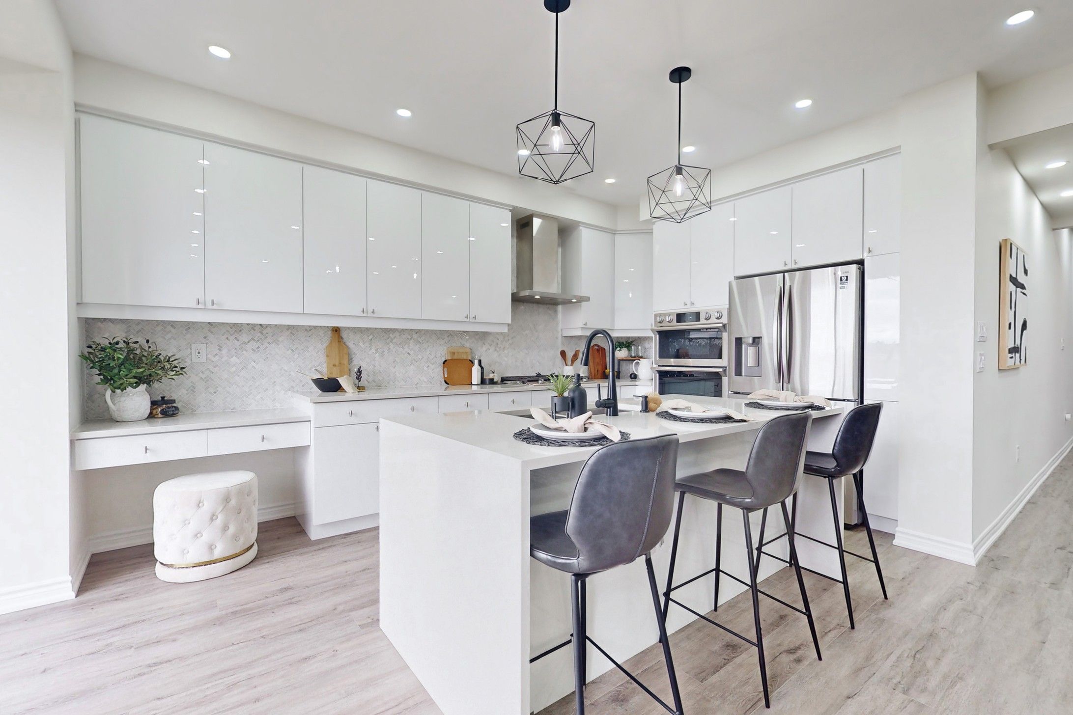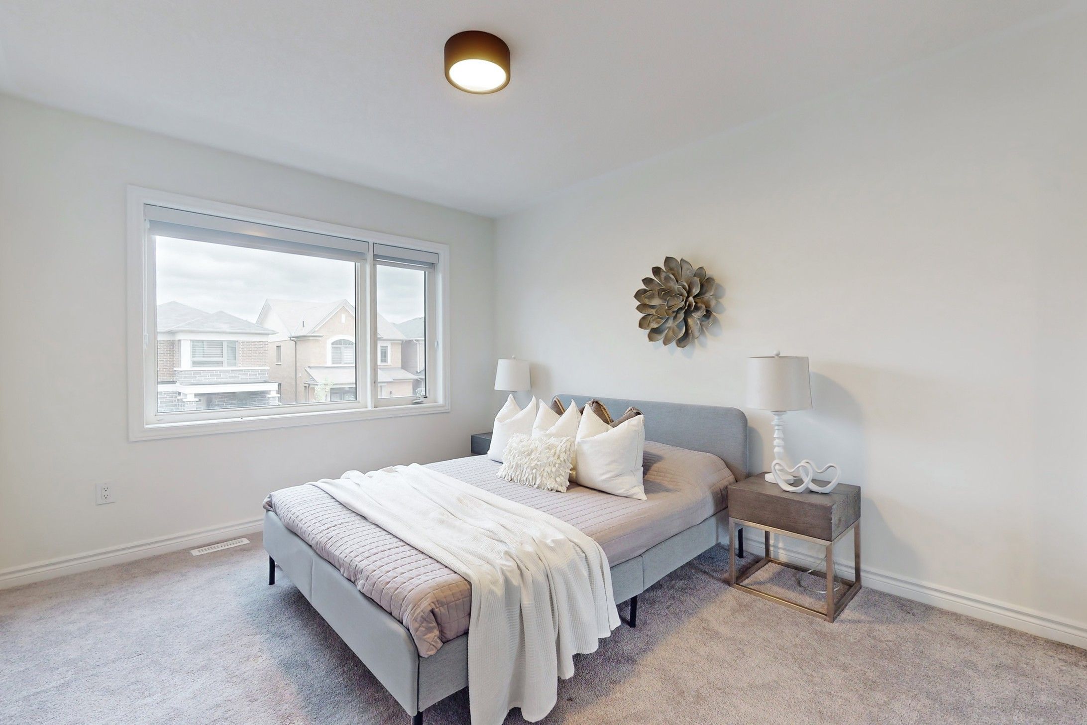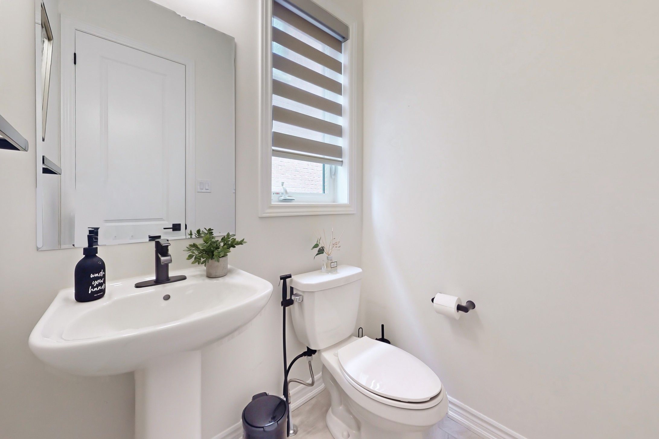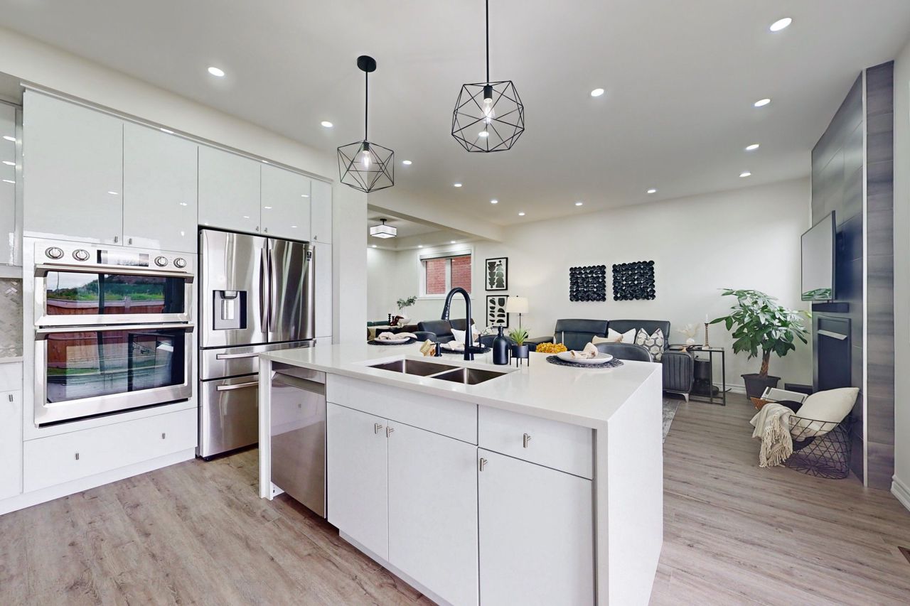 Welcome to Queens Common! Modern Elevation End Unit Townhome, Just Over 2 Years New. Approximately 1980 Sq.ft, Spacious Floor Plan And Over $85,000 Spent On Timeless Upgrades. Main Floor Foyer Greets You with Soaring Ceiling Heights of Almost 11 FT and Built-in Seating. Main Level has 9 FT Ceilings, Wide Plank Vinyl Flooring Throughout, Dining Room with Coffered Ceilings and Great Room with Tiled Wall Gas Fireplace. Large, Bright, Eat-In Chef's Kitchen, An Extended Waterfall Island, Quartz Counter Tops, Herringbone Backsplash, Countertop Gas Stove, Built in Microwave and Oven. Upgraded Oak Staircase Takes You To The 2nd Floor Hallway with Wide Plank Vinyl Floors, 3 Bedrooms, Laundry Room, And an Oasis Primary Room Featuring Wide Plank Vinyl Floor, Window Bench Seating to Read, Large Walk-In Closet, 5-Piece Ensuite, Freestanding Tub And a Frameless Glass Walk In Shower. Basement has 3 Piece Rough-In Plumbing. Less than 5 mins to the 401/412, Pharmacy, Grocery Stores and Tim's.