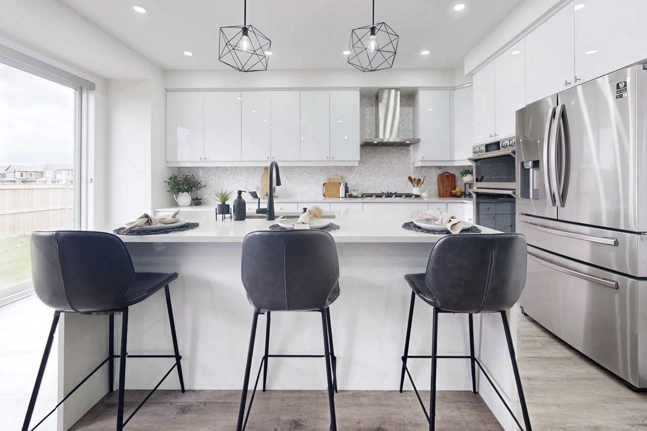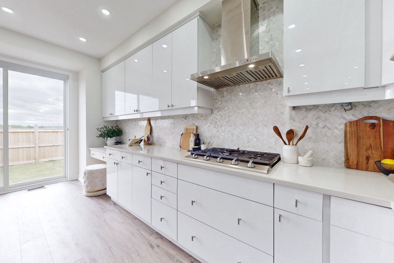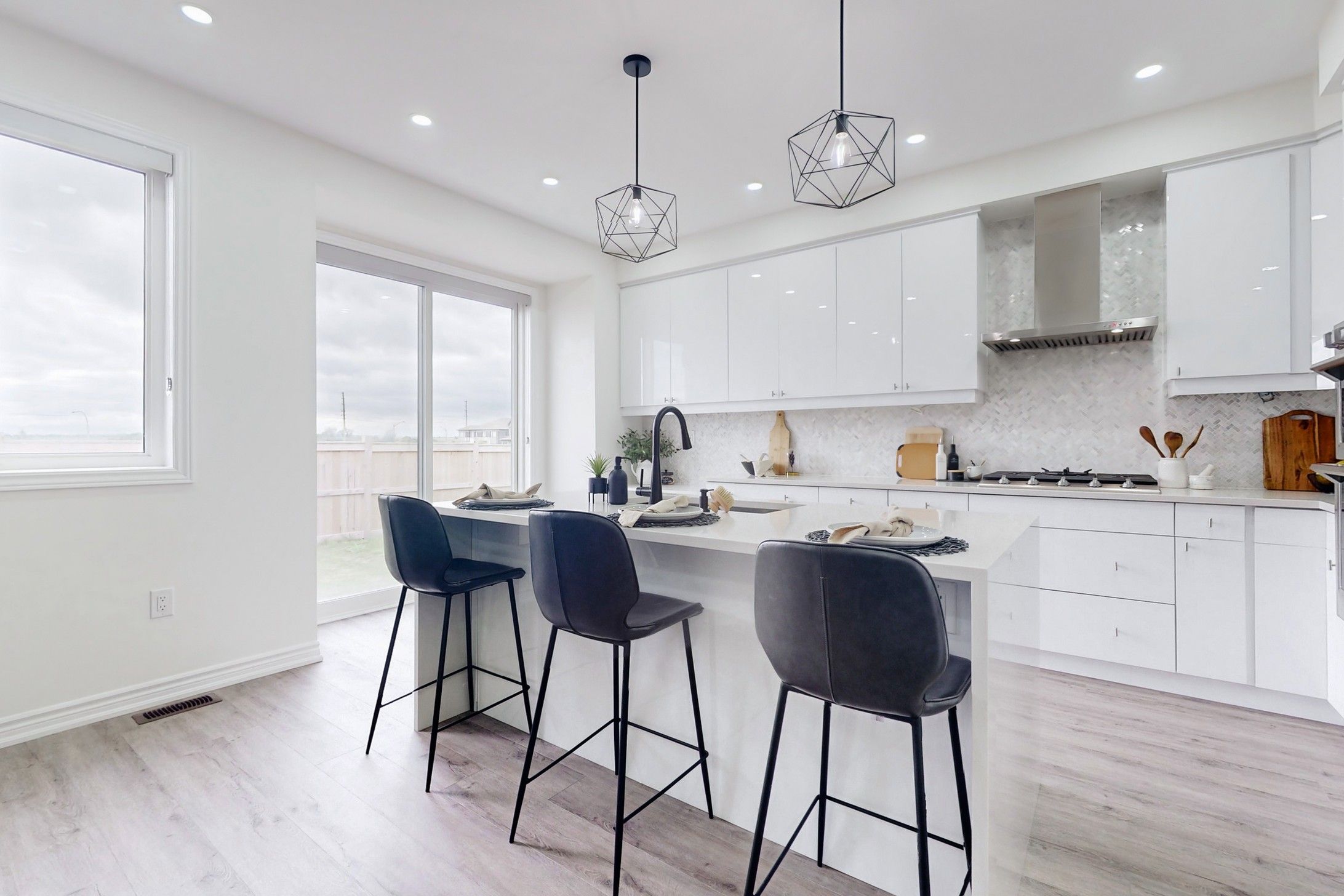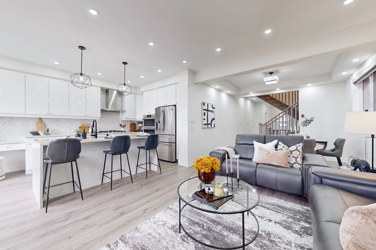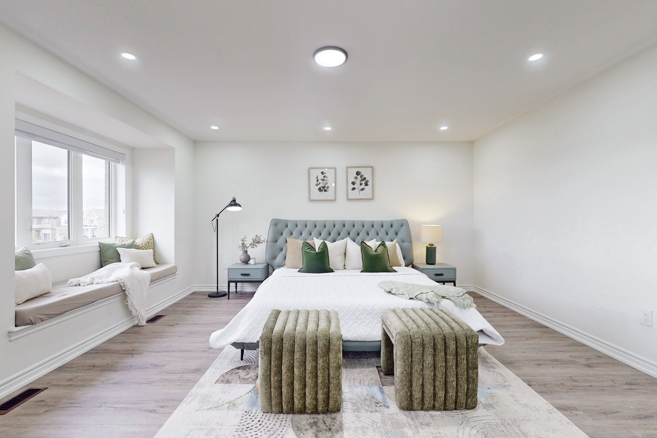 Welcome to Queens Common! Modern Elevation End Unit Townhome, Just Over 2 Years New. Approximately 1980 Sq.ft, Spacious Floor Plan And Over $85,000 Spent On Timeless Upgrades. Main Floor Foyer Greets You with Soaring Ceiling Heights of Almost 11 FT and Built-in Seating. Main Level has 9 FT Ceilings, Wide Plank Vinyl Flooring Throughout, Dining Room with Coffered Ceilings and Great Room with Tiled Wall Gas Fireplace. Large, Bright, Eat-In Chef's Kitchen, An Extended Waterfall Island, Quartz Counter Tops, Herringbone Backsplash, Countertop Gas Stove, Built in Microwave and Oven. Upgraded Oak Staircase Takes You To The 2nd Floor Hallway with Wide Plank Vinyl Floors, 3 Bedrooms, Laundry Room, And an Oasis Primary Room Featuring Wide Plank Vinyl Floor, Window Bench Seating to Read, Large Walk-In Closet, 5-Piece Ensuite, Freestanding Tub And a Frameless Glass Walk In Shower. Basement has 3 Piece Rough-In Plumbing. Less than 5 mins to the 401/412, Pharmacy, Grocery Stores and Tim's.