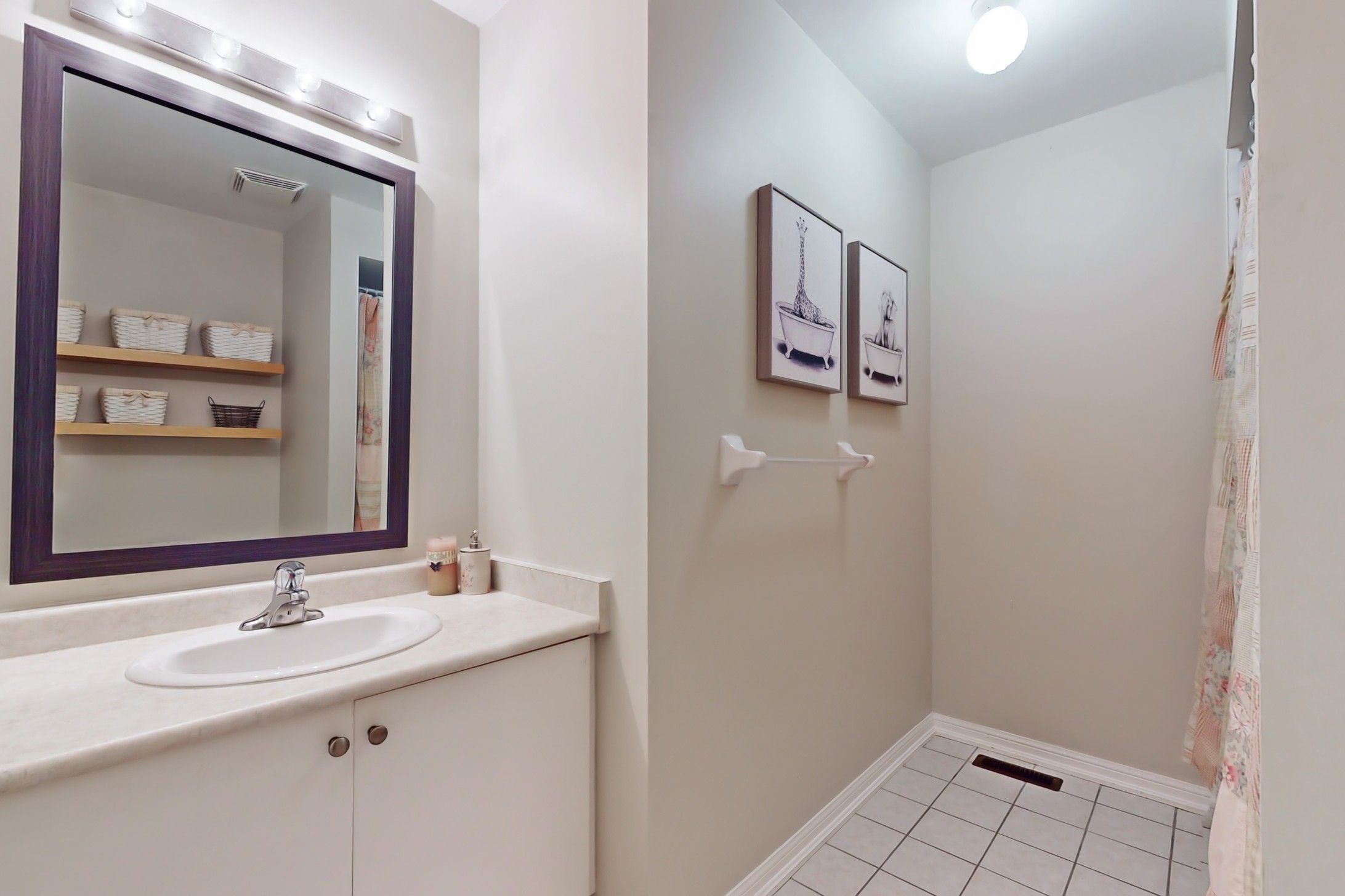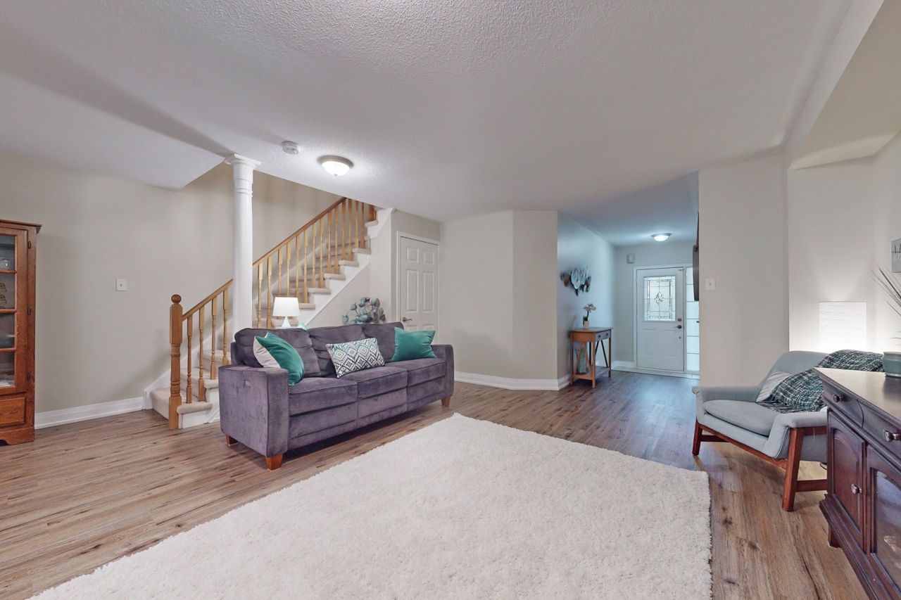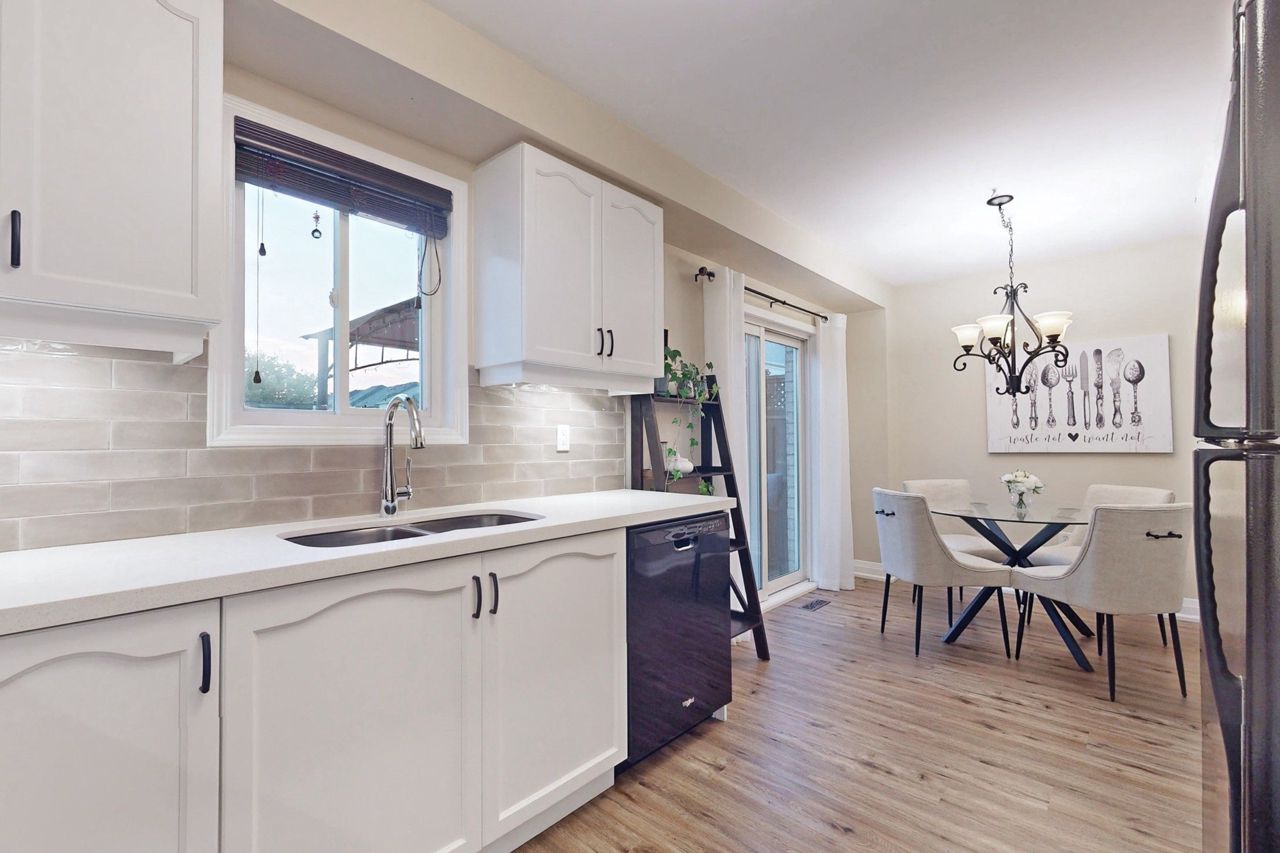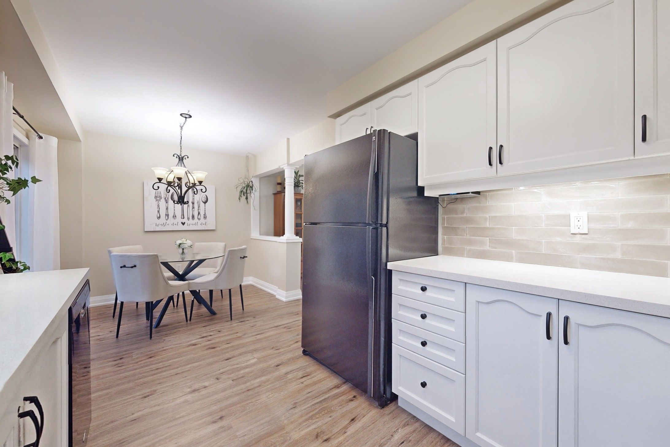 Gorgeous 3 Bedroom 1832 sq ft Freehold townhome in highly sought after North Whitby. This home offers an open concept layout with large principal rooms. Updated eat-in kitchen with quartz counters and walk-out to large deck and fenced yard with perennial gardens. Huge master bedroom boasts a 4pc ensuite with separate shower and soaker tub, and walk-in closet comes with a built-in shelving. 2 piece powder room on the main floor as well as garage access. Basement is finished with a large family room and laundry room, built-in shelving for ample storage space and a workshop. 2 car parking on the driveway (no sidewalk). This home is located on a very low traffic street within walking distance to elementary and secondary schools. Close to Big Box Stores, Highly desirable location, MOVE IN READY!Finished Basement, Newly Updated Kitchen, New Flooring & Trim in Living/Dining room & Rec room ,Furnace & A/C (2022) Shingles (2019) No Sidewalk, 2 car parking,
