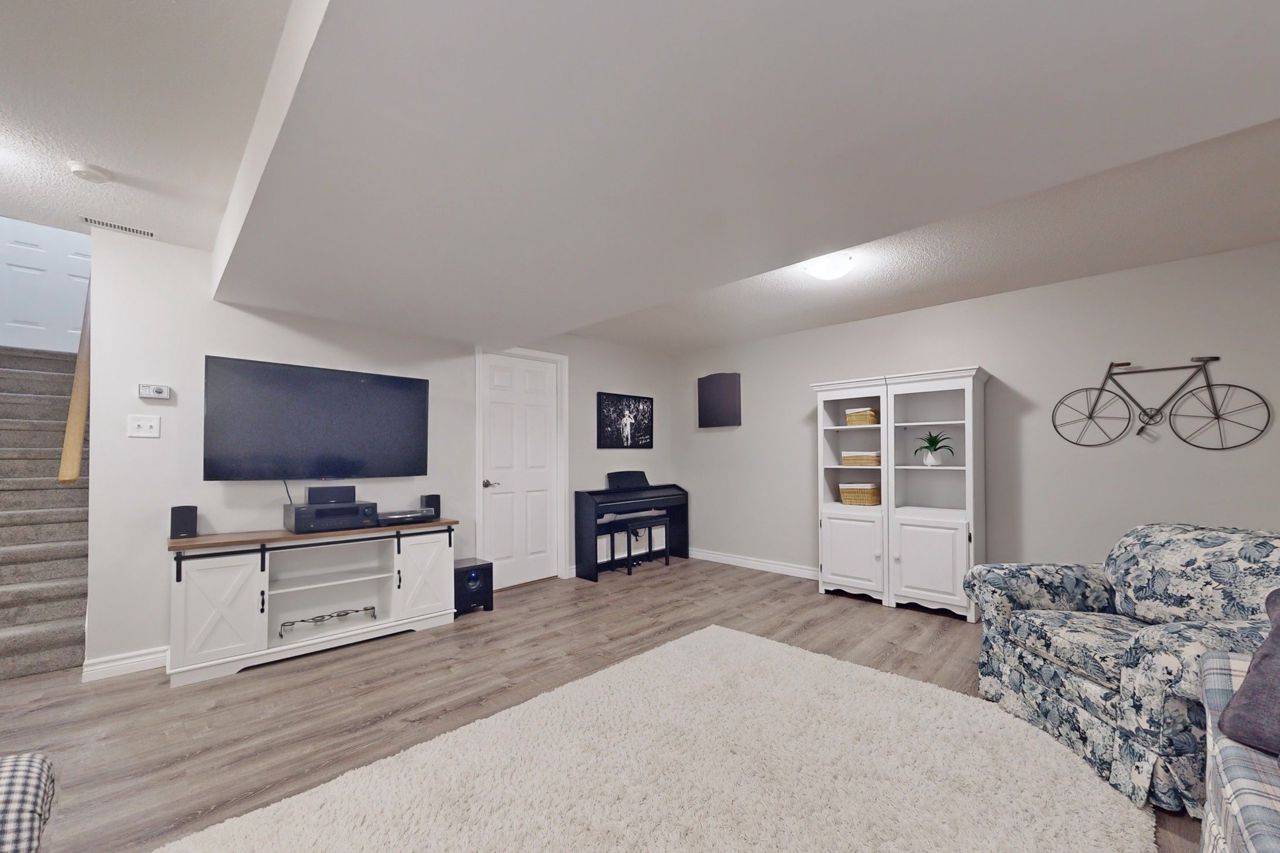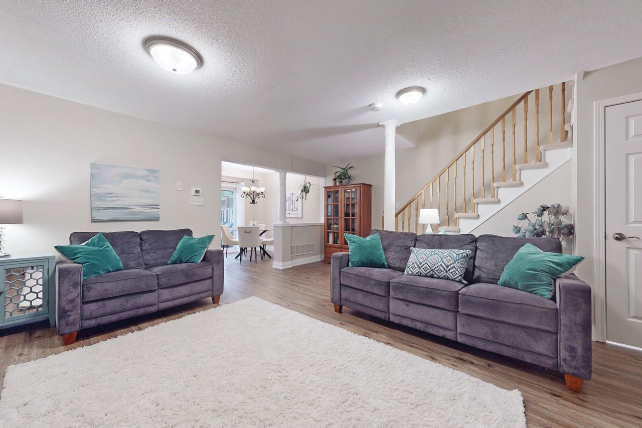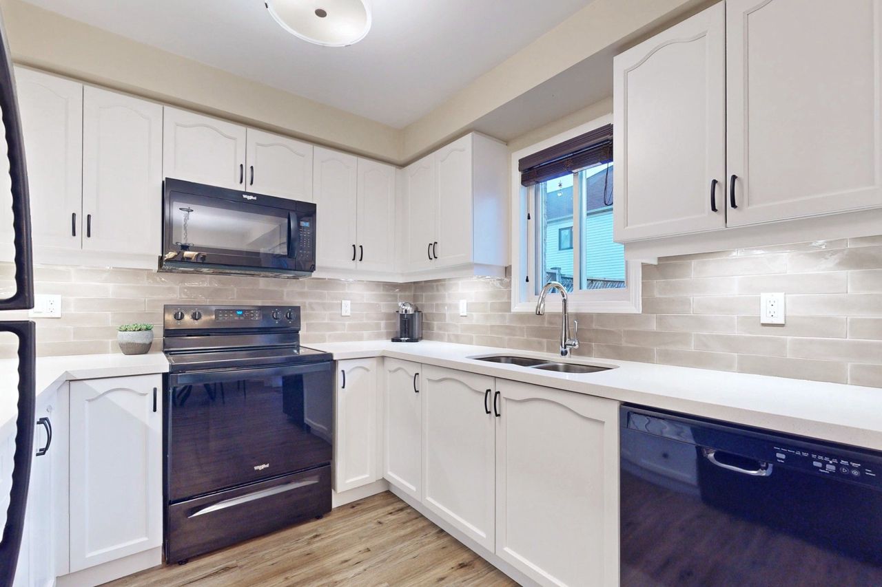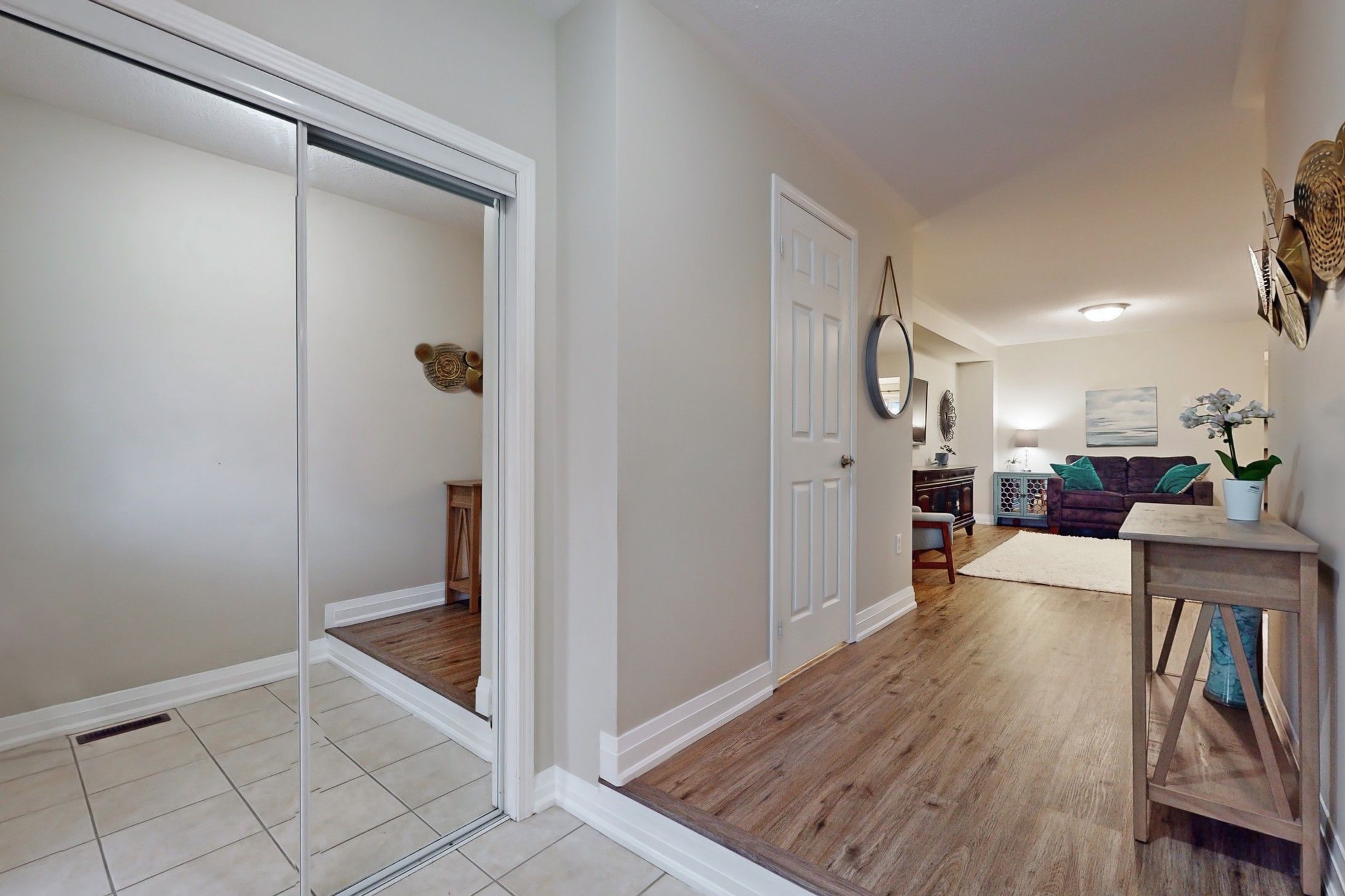 Gorgeous 3 Bedroom 1832 sq ft Freehold townhome in highly sought after North Whitby. This home offers an open concept layout with large principal rooms. Updated eat-in kitchen with quartz counters and walk-out to large deck and fenced yard with perennial gardens. Huge master bedroom boasts a 4pc ensuite with separate shower and soaker tub, and walk-in closet comes with a built-in shelving. 2 piece powder room on the main floor as well as garage access. Basement is finished with a large family room and laundry room, built-in shelving for ample storage space and a workshop. 2 car parking on the driveway (no sidewalk). This home is located on a very low traffic street within walking distance to elementary and secondary schools. Close to Big Box Stores, Highly desirable location, MOVE IN READY!Finished Basement, Newly Updated Kitchen, New Flooring & Trim in Living/Dining room & Rec room ,Furnace & A/C (2022) Shingles (2019) No Sidewalk, 2 car parking,