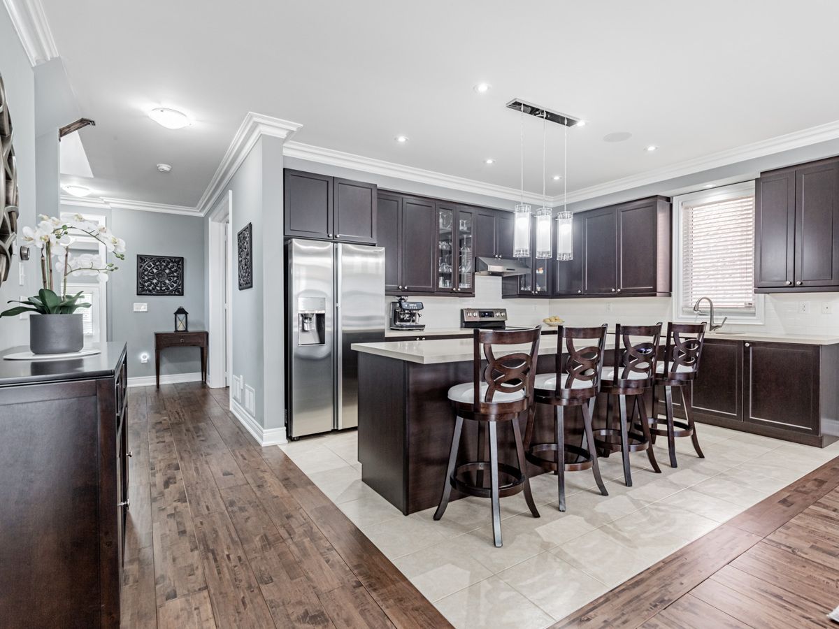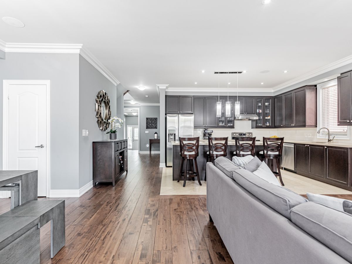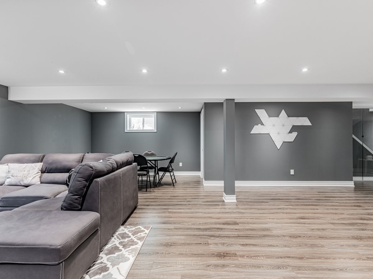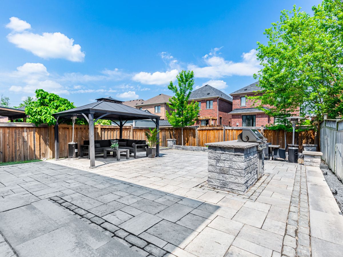 Efficiently Designed to Seamlessly Blend Functionality & Aesthetic Appeal. This Home is Fully Equipped for Entertaining & Leisure w/an Inviting Open Concept Atmosphere for Gatherings & Socializing. Main Flr Features 9ft Smooth Ceilings, Gorgeous Hardwood Flrs, Crown Moldings, Pot Lights & Sparkling Chandeliers. Kitchen has Stainless Steel Appls, Granite Countertops, Extended Cabinets, Large Island & Breakfast Bar + Extra Large Pantry. Retreat Upstairs to 4 Spacious Bedrooms that Provides Ample Personal Space for Comfort & Relaxation. Open Concept Finished Basement that Offers Space to Host Cozy Gatherings or the Whole Family. Extend Your Living & Entertainment Outdoor To An Expansive Low Maintenance Back Yard w/Built in BBQ & Gazebo. Enjoy Your Favourite Songs Through in Ceiling Speakers in Great Rm, Kitchen, Dining, Primary Rm & Ensuite. No Side Walk. Come And Feel At Home. Located Close to Shops, School, Rec Centre, Parks, Trail, Grocery Shops, Hwy 407/ 412 and more.Wireless Security System (Monitoring Service Assumable), Security Cameras & Hard Drive, Existing In Ceiling Speakers & Audio Control