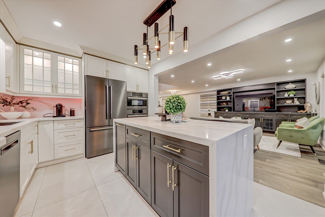 Spacious Open Concept Living And Dining With Impeccable Finishes. Spectacular Brand-New Custom-Made Kitchen With High End Black Stainless Steel Bosch Appliances, Custom Cabinets, Custom Island W/
