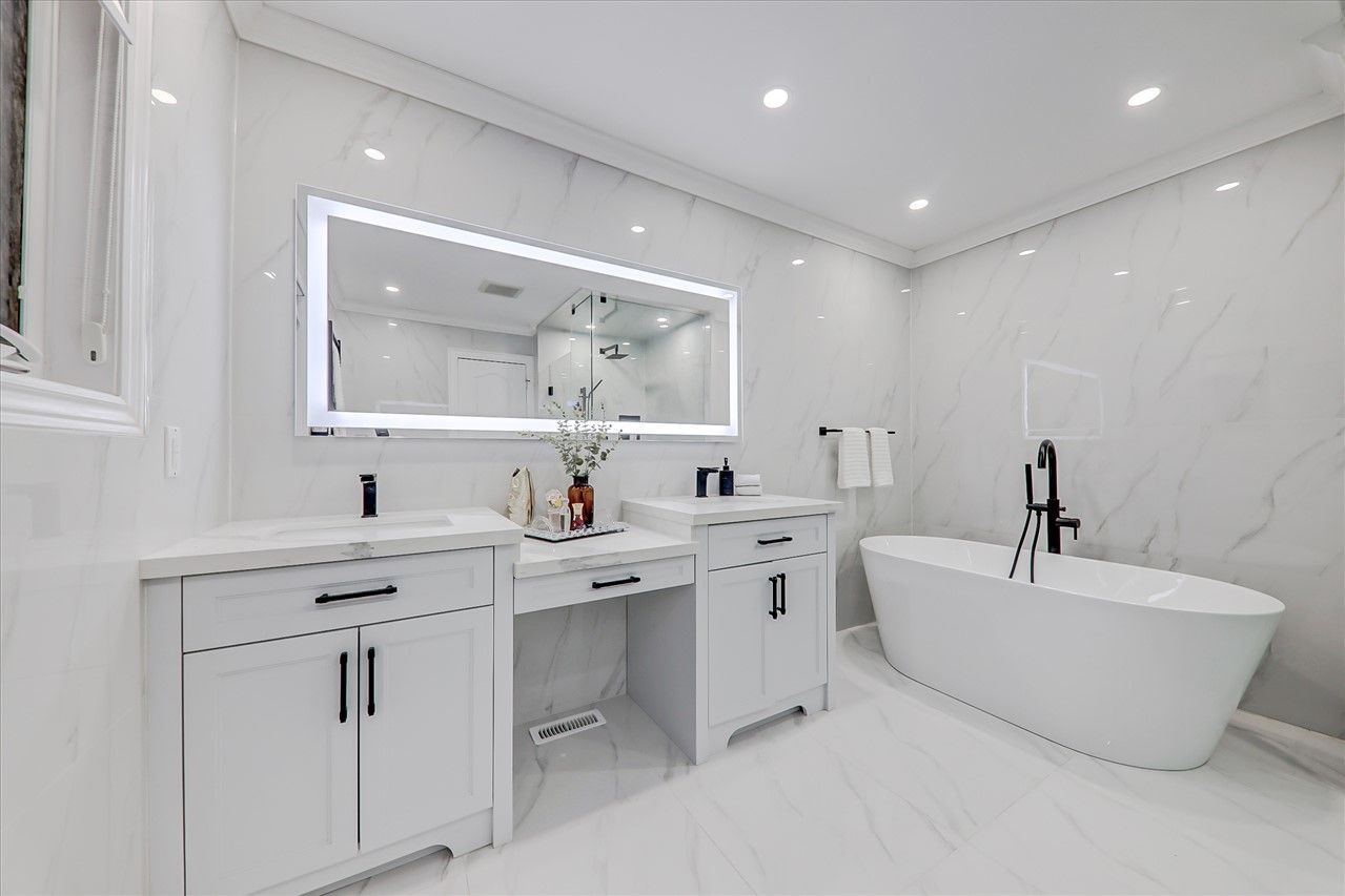 New High End Granite Countertop, Heated Floors W/Smart Thermostat, And Upgraded Tiled Floor. Gleaming Hardwood Floors & Smooth Ceiling W/Led Pot Lights Throughout Main And Upper Floors. Finished Basement