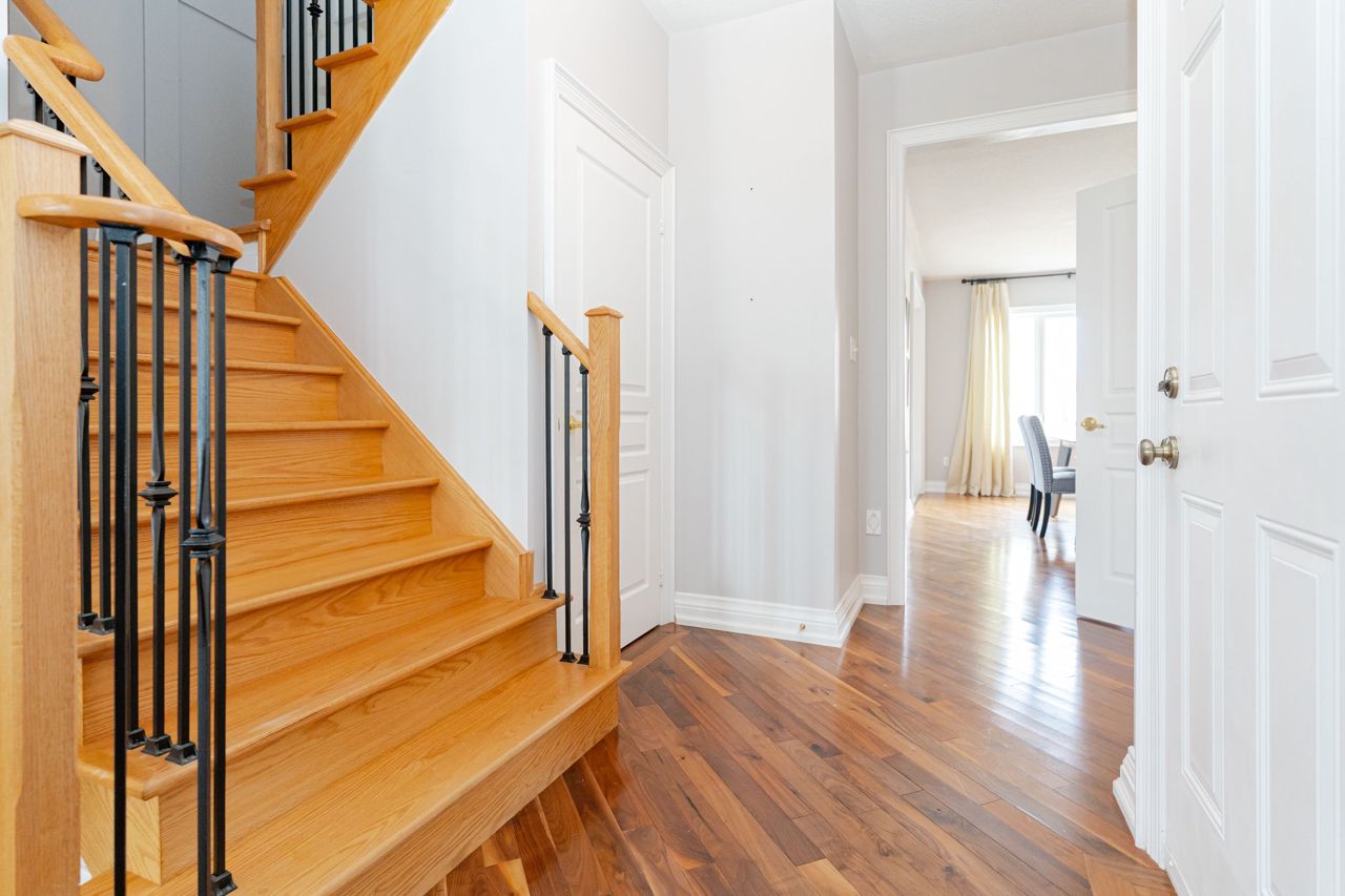This charming 3-bedroom, 3-bathroom family home in Stouffville is precisely what you've been searching for. Enhanced with appealing upgrades like main floor walnut hardwood flooring, an eat-in kitchen with updated appliances and a large custom wood deck with pergola in the backyard. The large primary bedroom with 4-piece spa style ensuite also boasts a spacious walk-in closet. With an unfinished basement, you have the opportunity to add your own personal touch into this home. From the instant you arrive, this home radiates love and warmth. And all this is just a short walking distance to a community centre, school, tennis courts and park! Floorplan available on request.ALL ELF'S, All existing window coverings, SS Fridge, SS Stove, SS Dishwasher, SS Microwave, Washer & Dryer. Treadmill and trainer in basement are available for purchase separately.